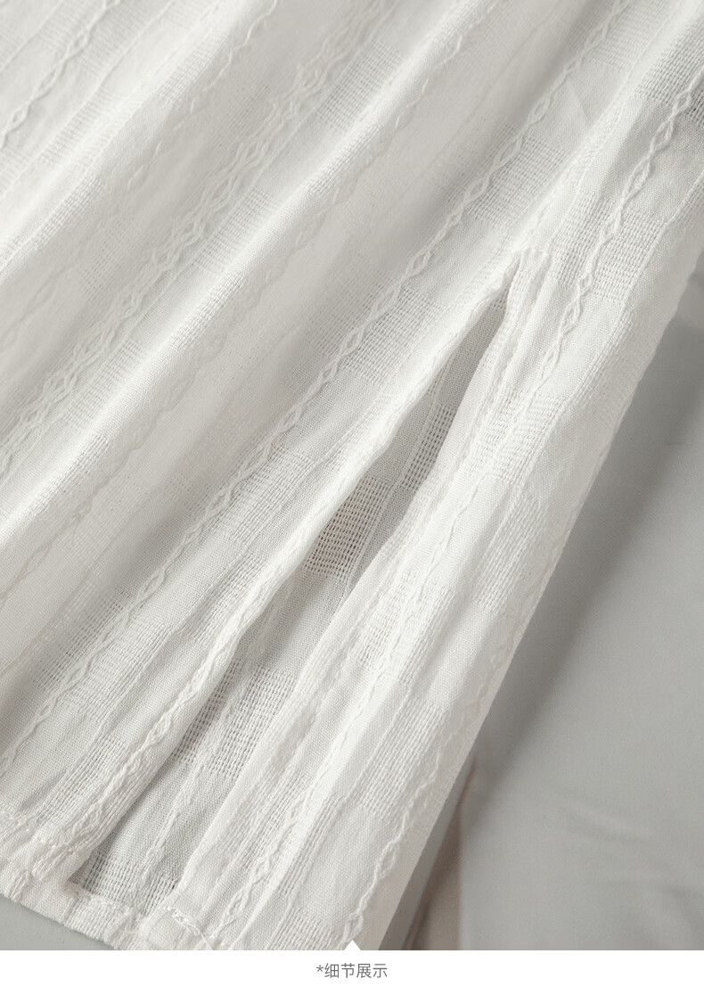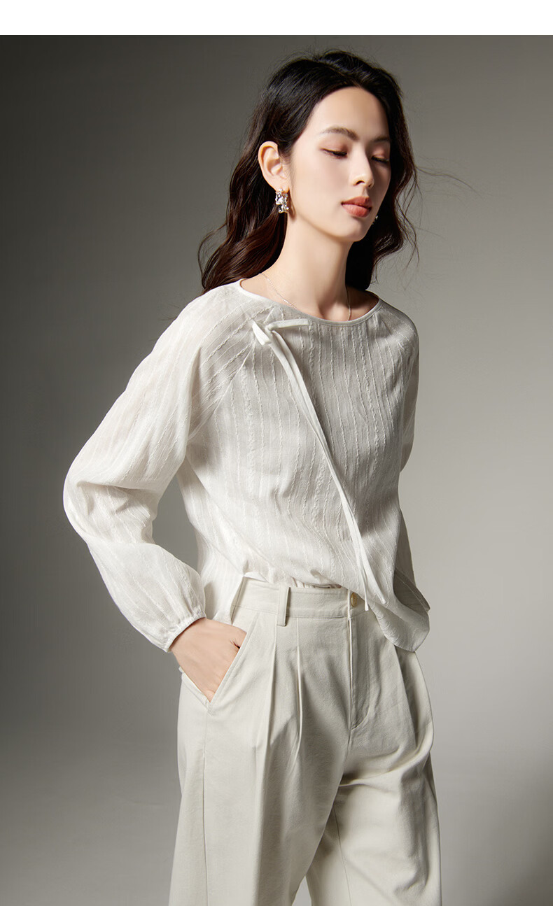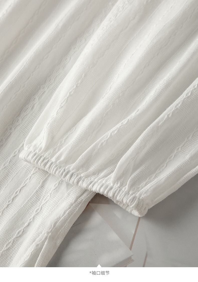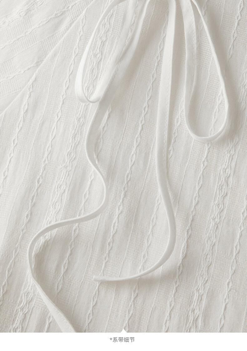 晚白【断码清仓】时尚系带圆领全棉上衣宽松亲肤舒适休闲衬衫女 白色 M