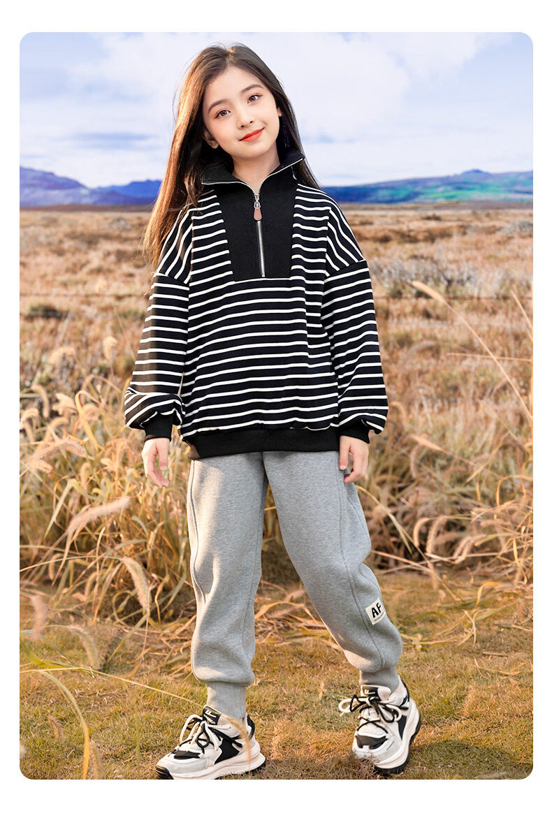 淘町女童加绒卫衣一体绒冬季新款中大童女奥粒绒洋气圆领套头上衣 红色 110
