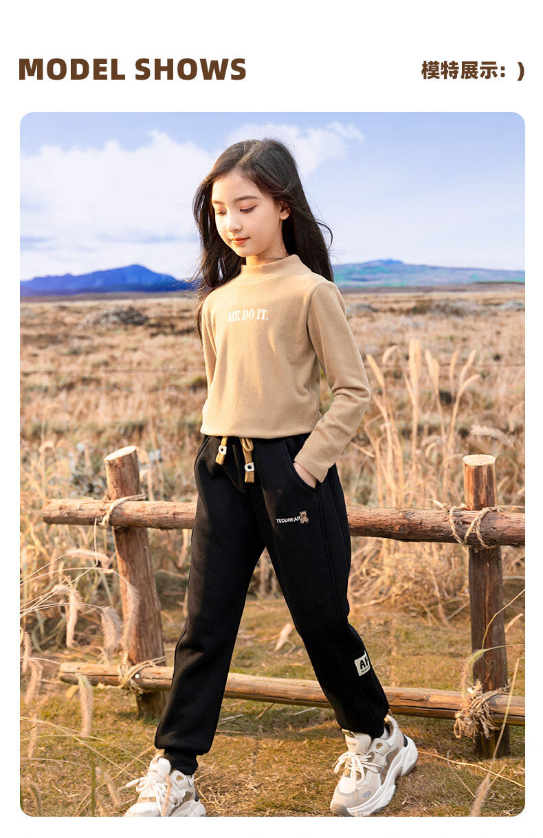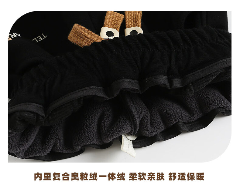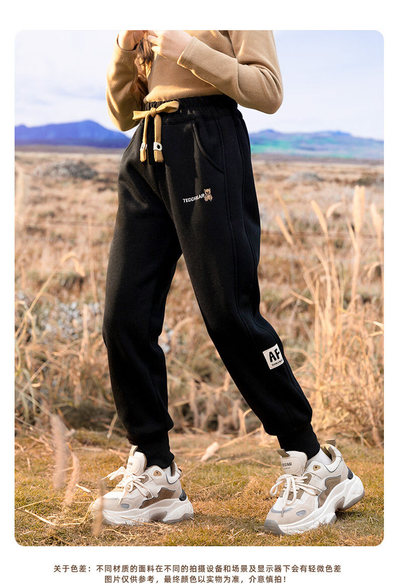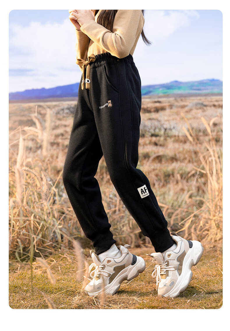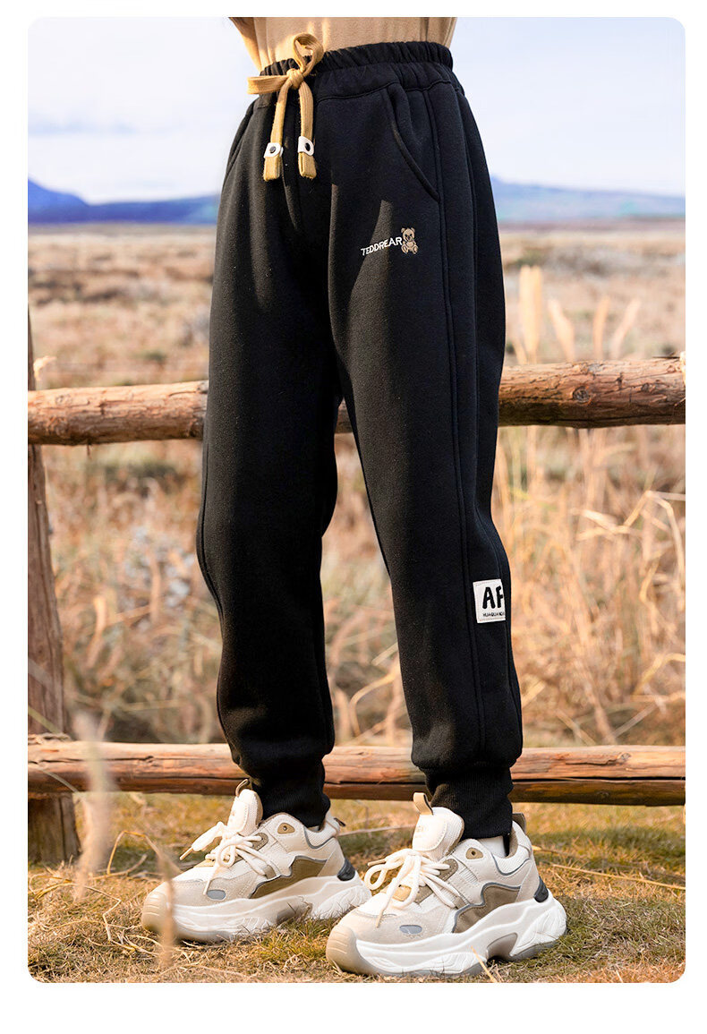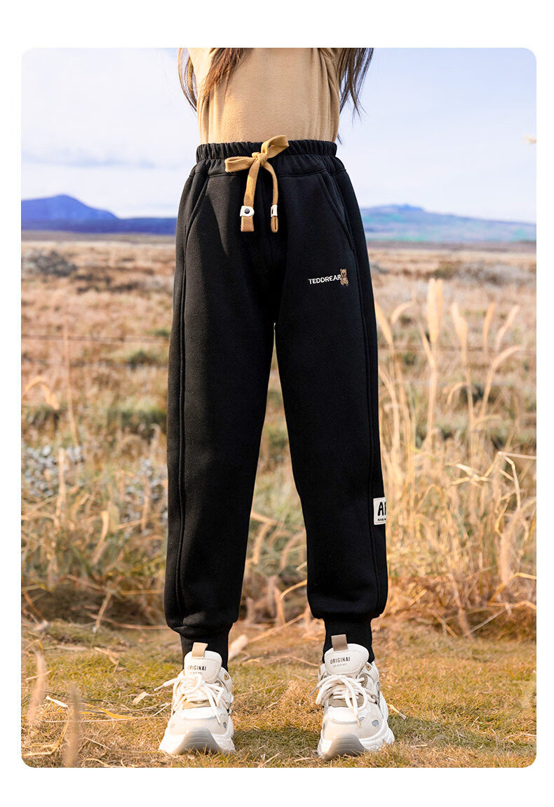 淘町女童加绒一体绒裤子新款儿童保暖休闲卫裤中大童秋冬加厚运动长裤 黑色 150