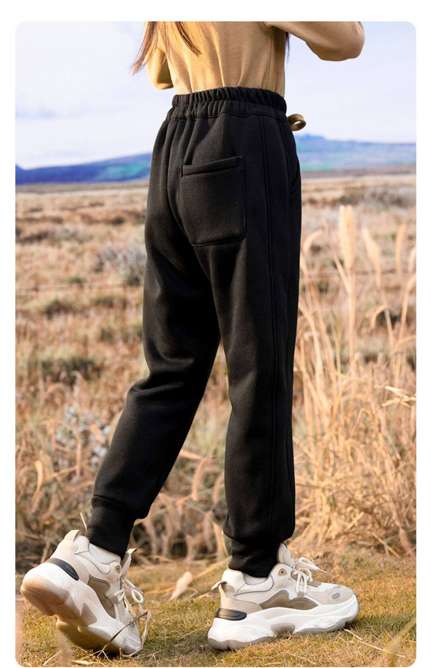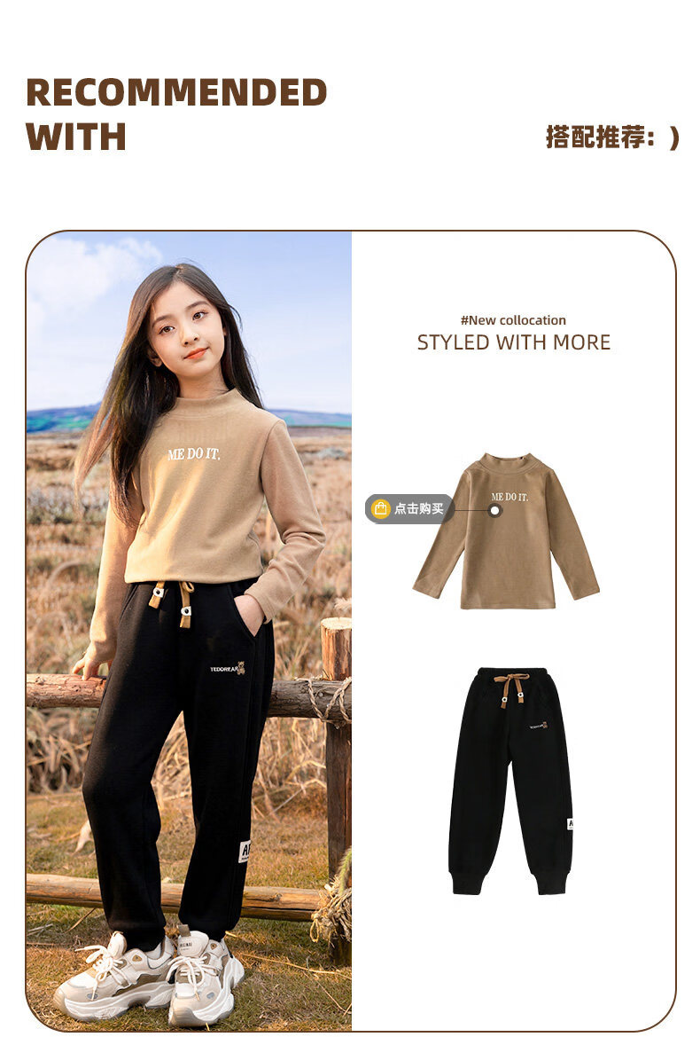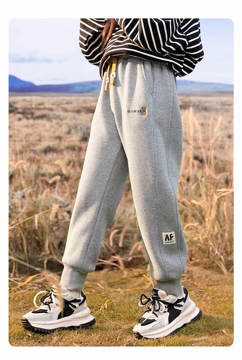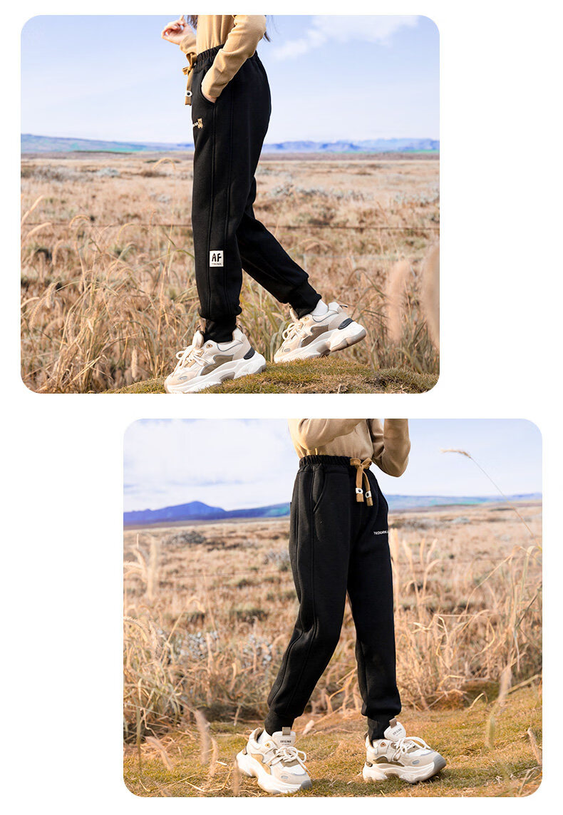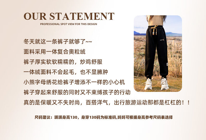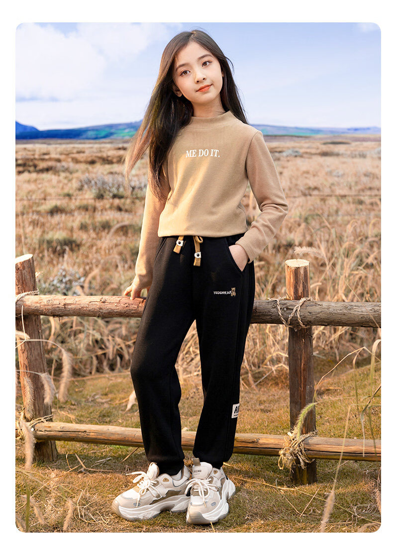 淘町女童加绒一体绒裤子新款儿童保暖休闲卫裤中大童秋冬加厚运动长裤 黑色 150