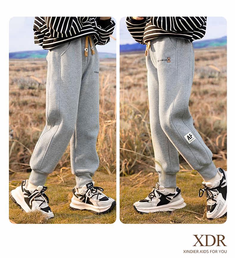 媛媛公主儿童运动裤冬款女童夹棉加厚保暖休闲裤中大童防风极寒户外长裤潮 蓝灰色 110