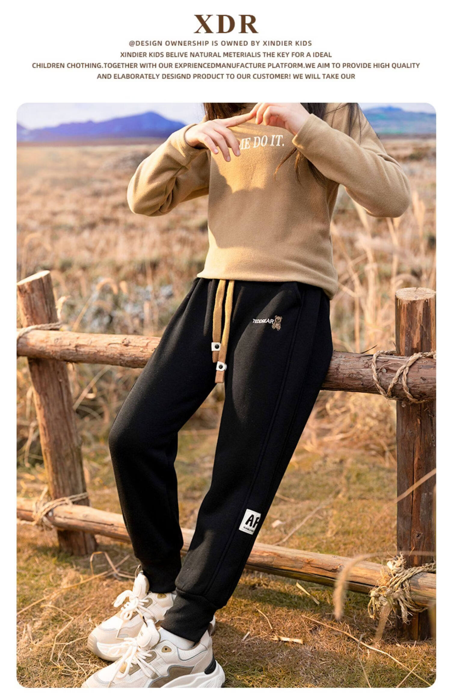 媛媛公主女童暖暖裤冬新款儿童加绒加厚工装裤宽松阔腿裤中大童运动伞兵裤 卡其色 130