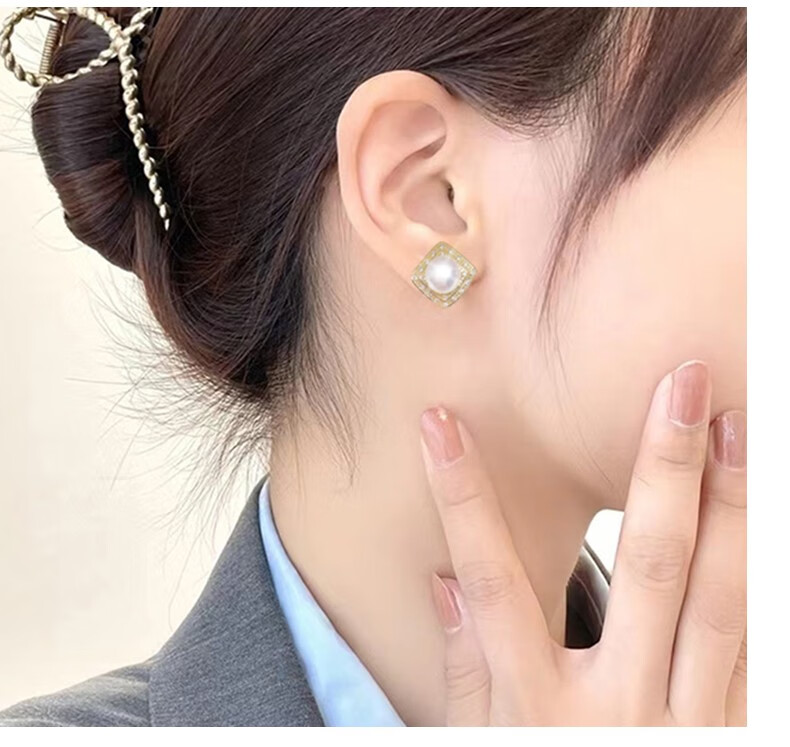 VENUS ADELINE淡水珍珠耳环女银针气质法式简约耳饰小众设计轻奢耳钉生日礼物 金色送女友老婆妈妈闺蜜实用礼物