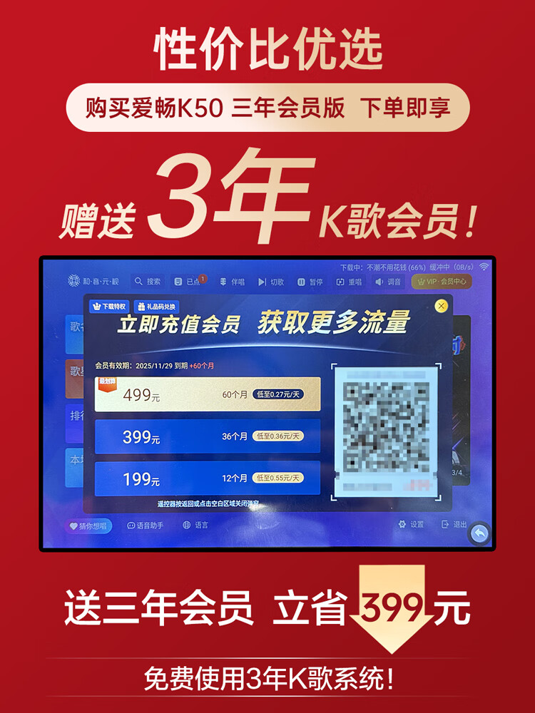 爱畅(AISON)K50K歌音箱三年会员版 家庭ktv麦克风一体机户外点歌机乐器音箱露营神器踏青送礼礼物