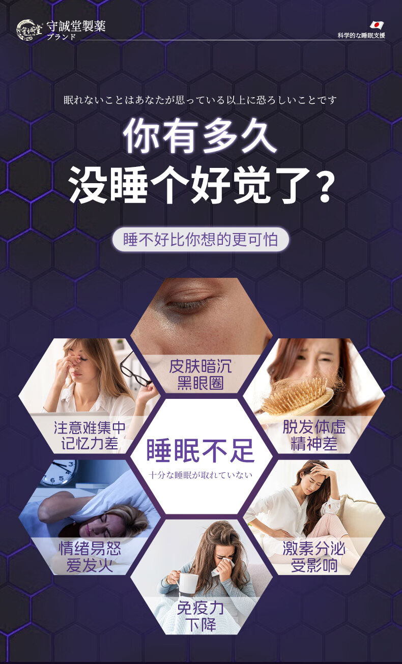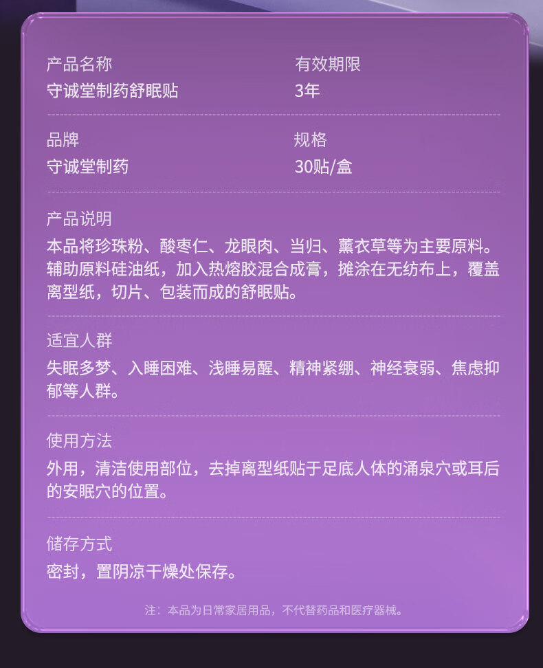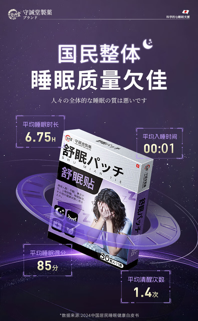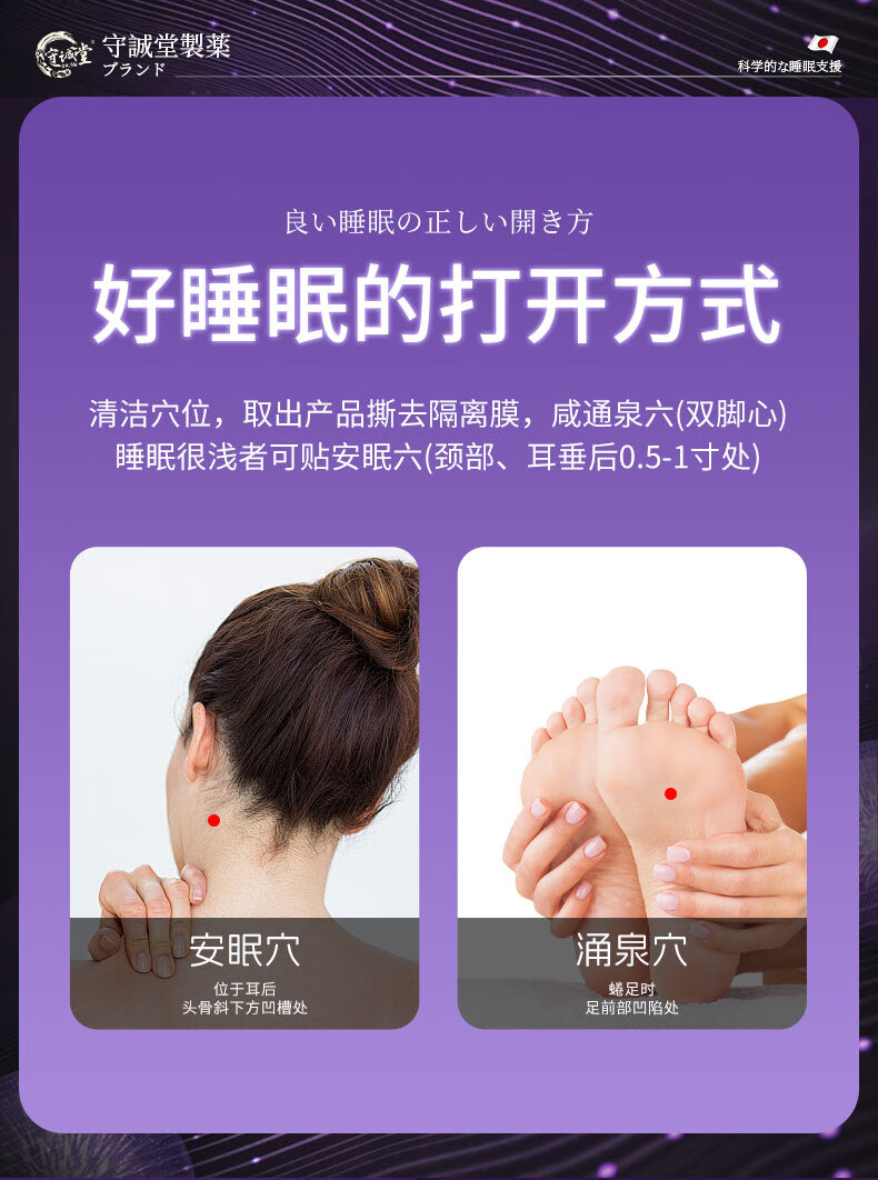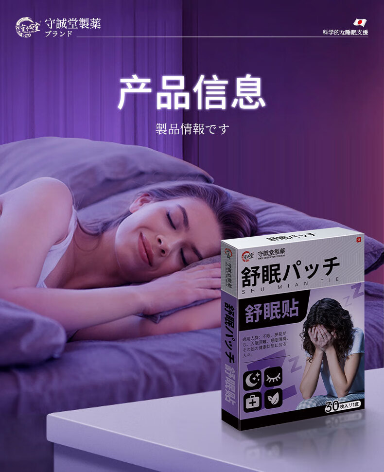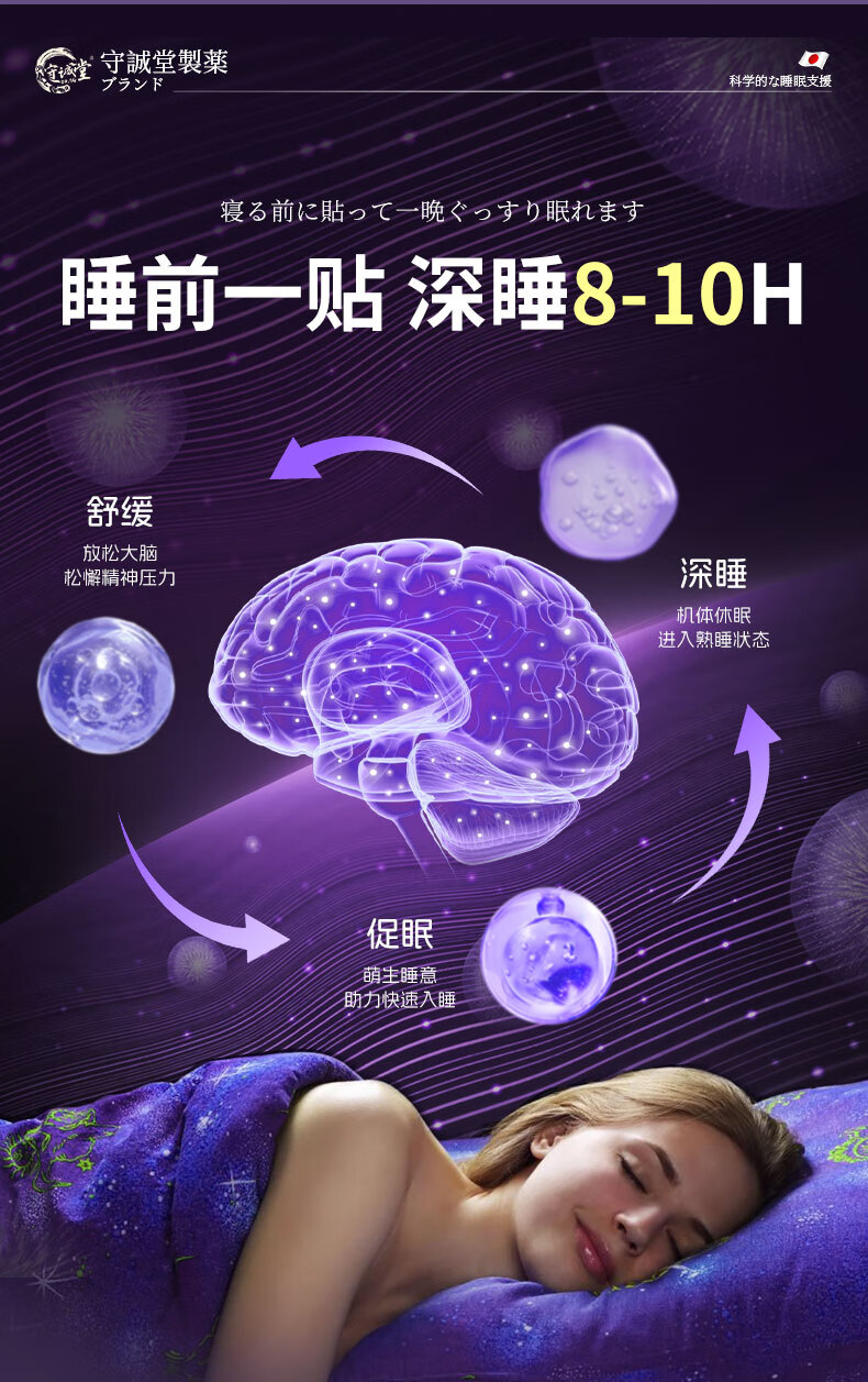 守诚堂制药日本睡眠贴严重度失眠助眠快速深度入睡膏药贴儿童舒眠贴30贴/盒