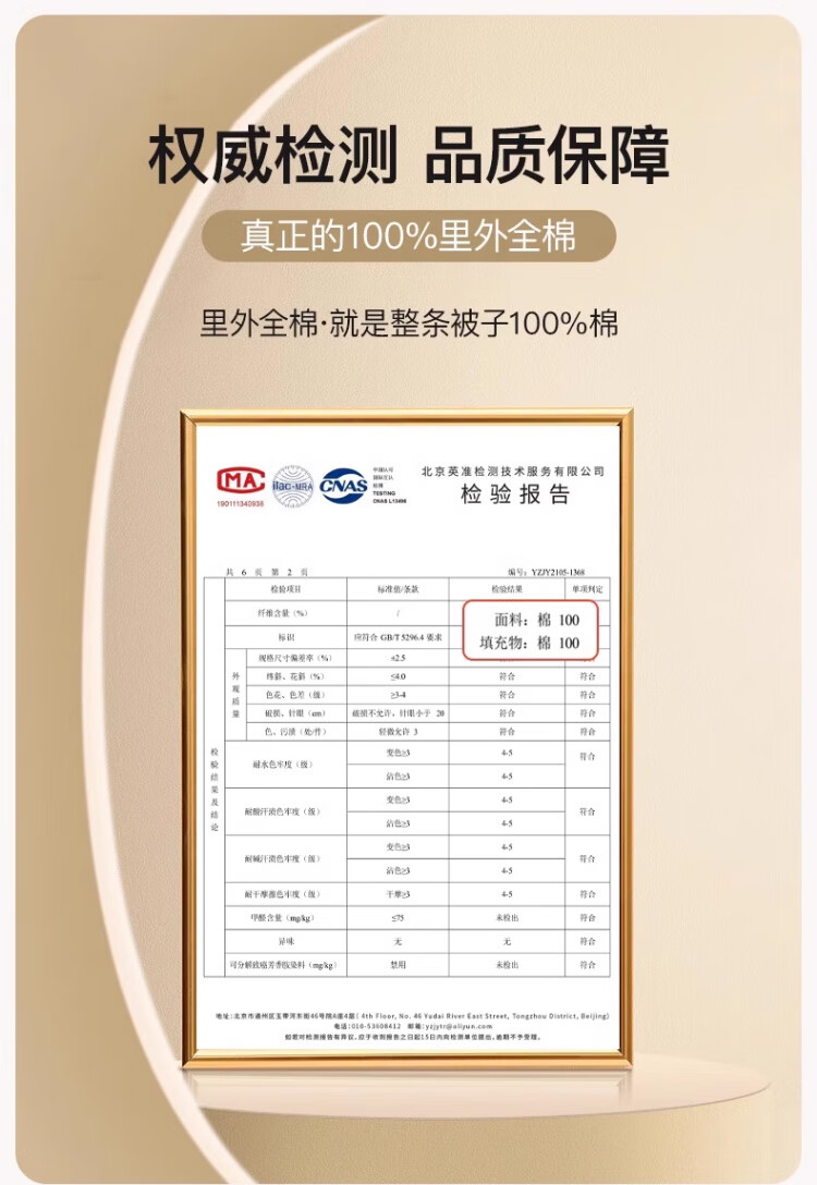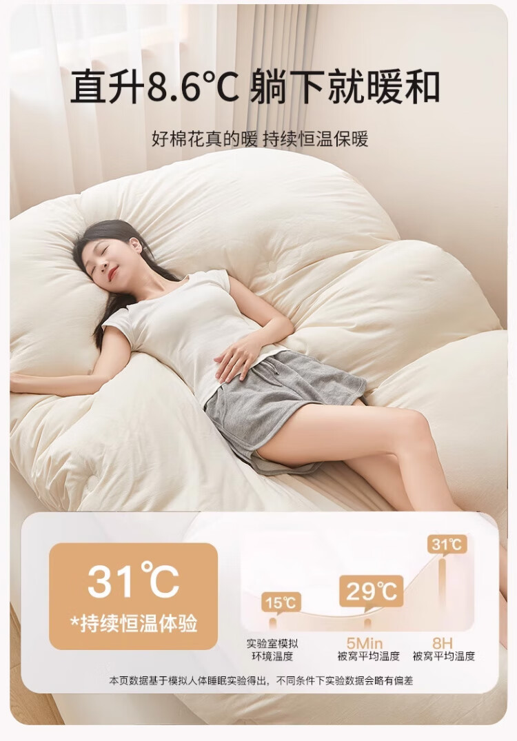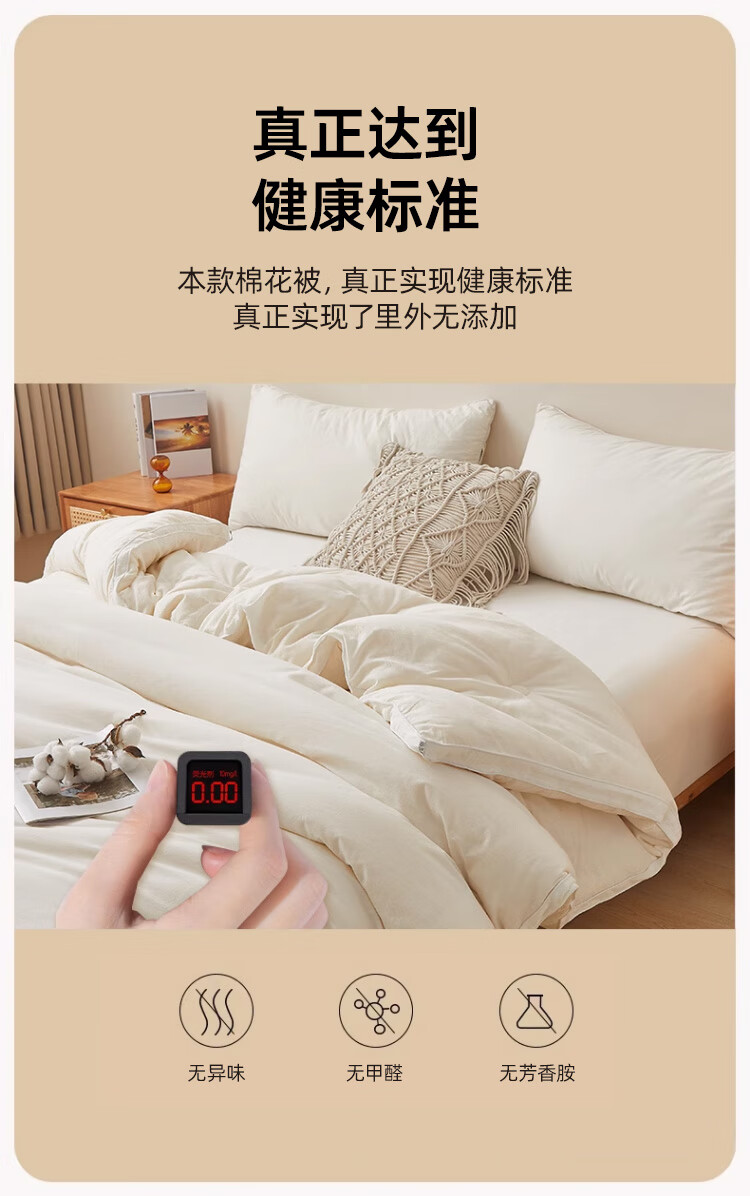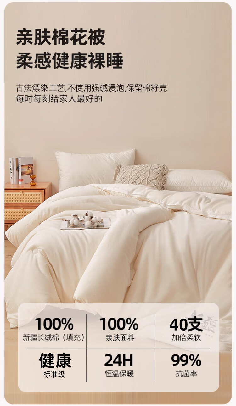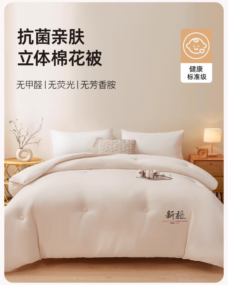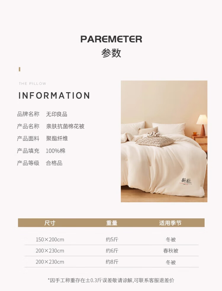 无印良品100%新疆棉花被子 秋冬被芯双人棉被 加厚8斤 200*230cm