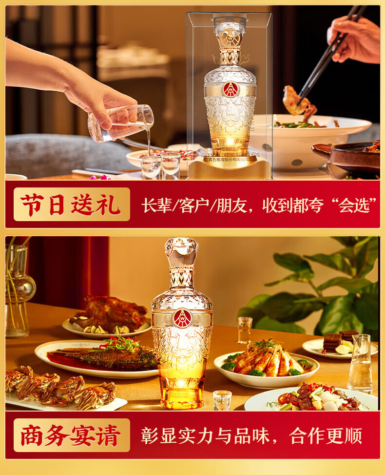 五粮液股份出品 52度浓香型白酒 礼盒装送礼酒 2025年 500mL 2瓶 新礼金水晶