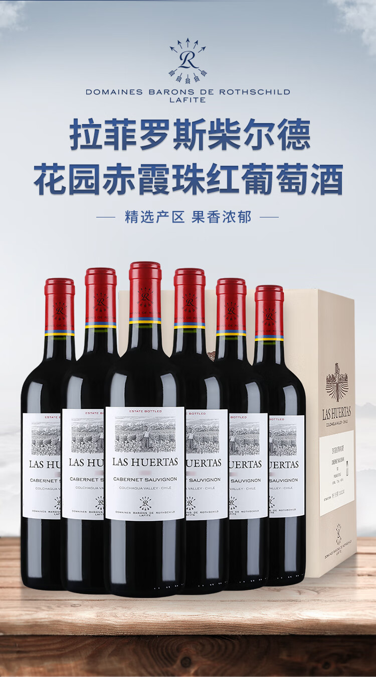 拉菲巴斯克花园赤霞珠干红葡萄酒750ml*6瓶年货送礼整箱 原瓶进口红酒