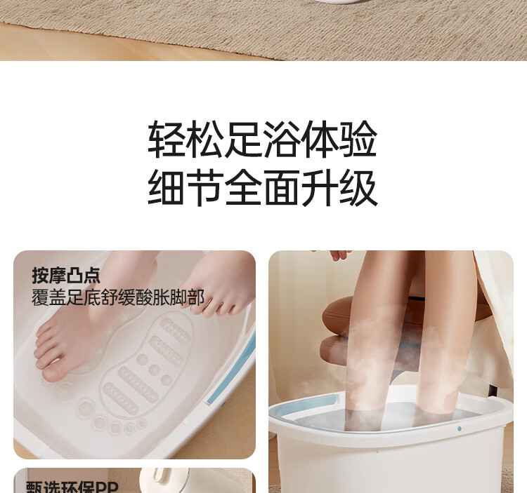 本迪泡脚桶加高23CM带手提足浴桶养生家用洗脚便携按摩盆免安装不漏电