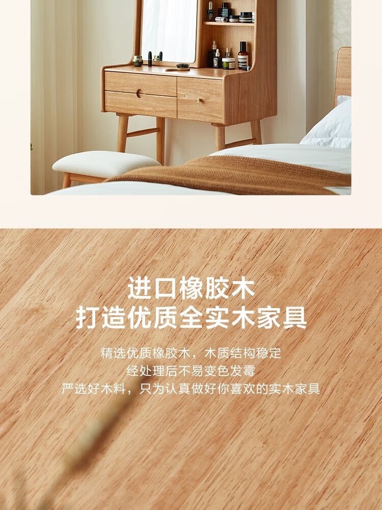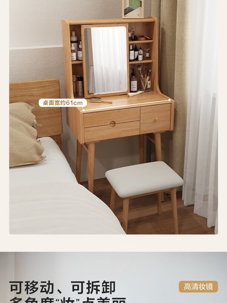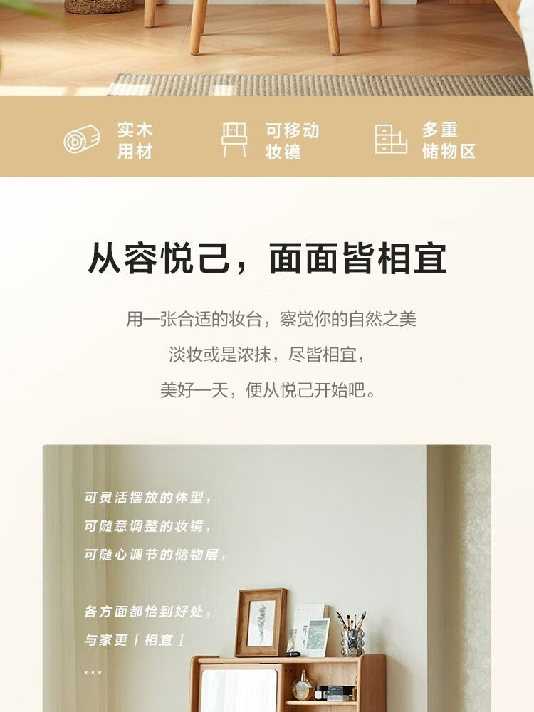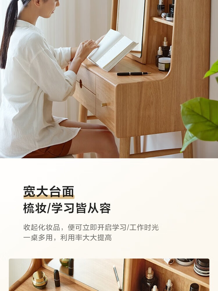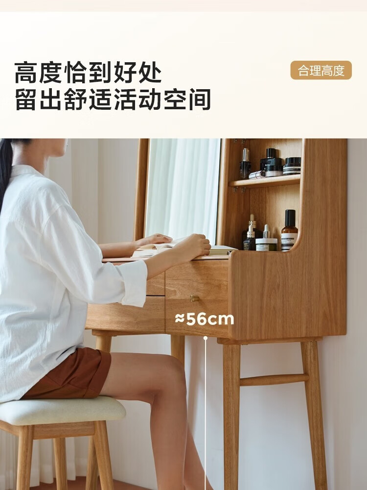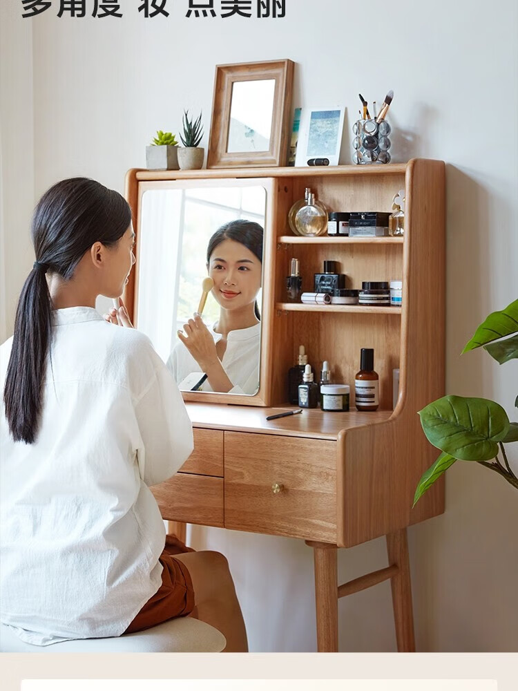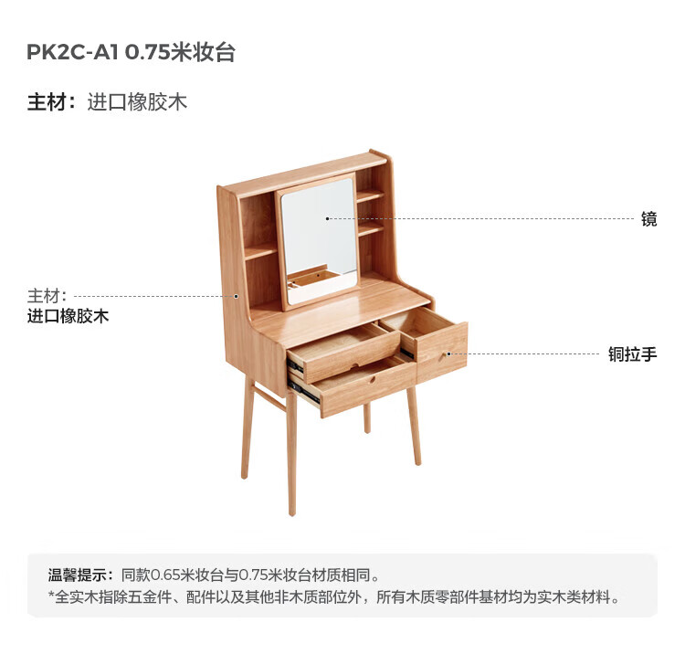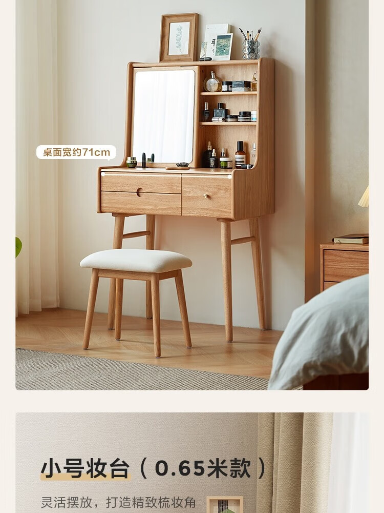 林氏家居北欧风实木化妆镜梳妆台卧室简约原木风化妆桌子林氏木业PK2C 【原木色】0.65米妆台