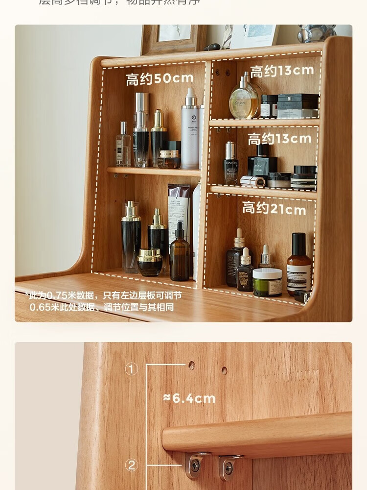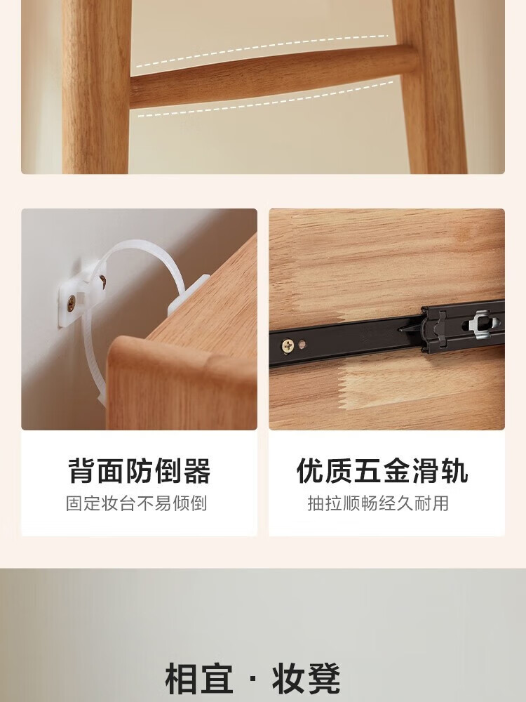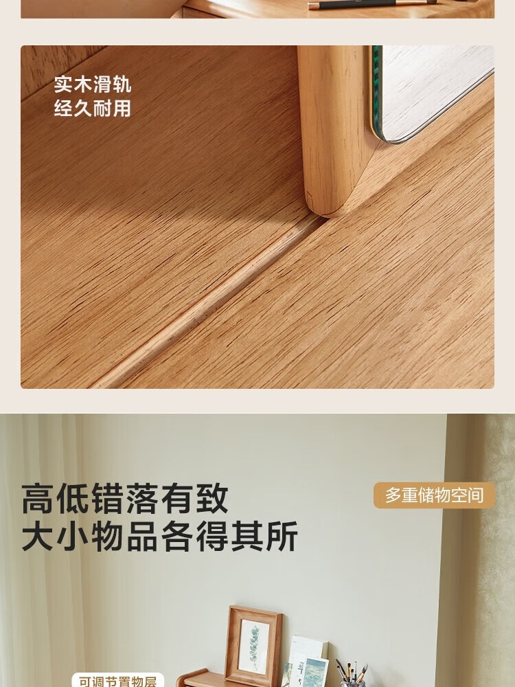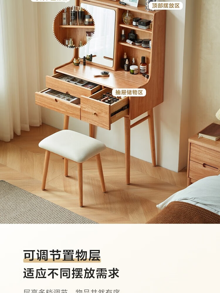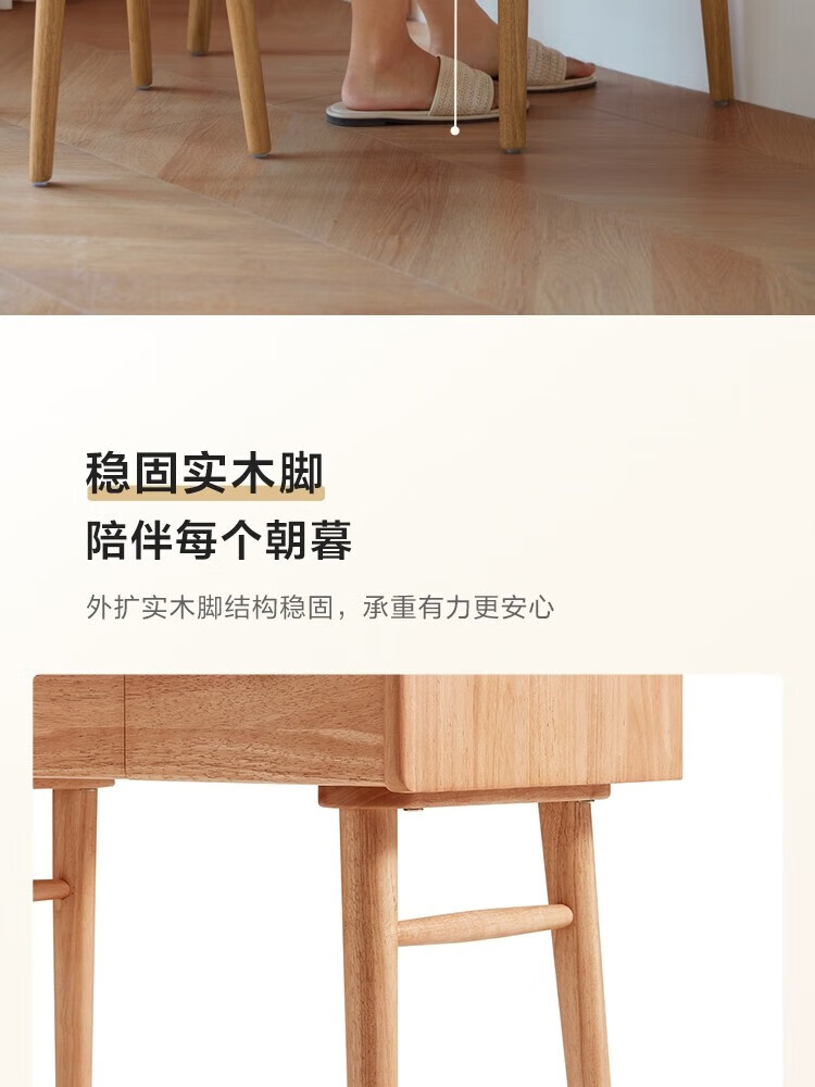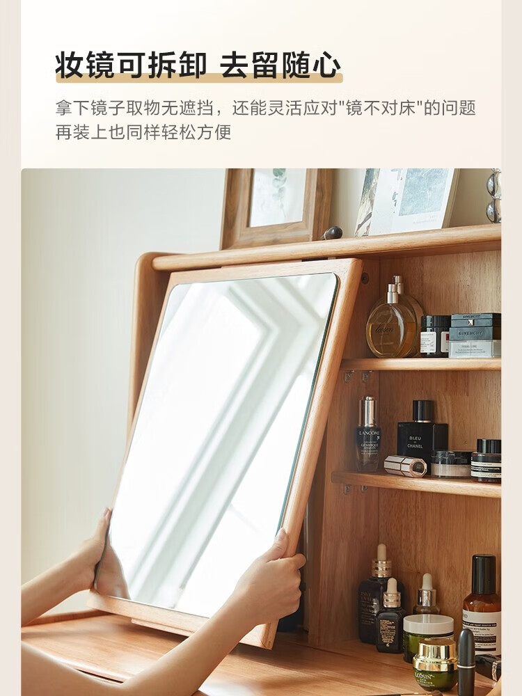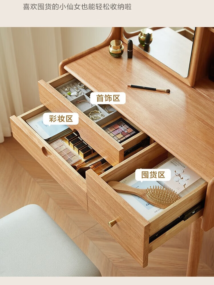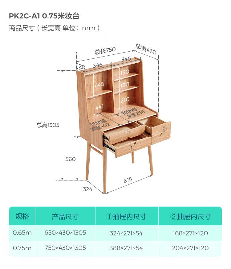 林氏家居北欧风实木化妆镜梳妆台卧室简约原木风化妆桌子林氏木业PK2C 【原木色】0.65米妆台