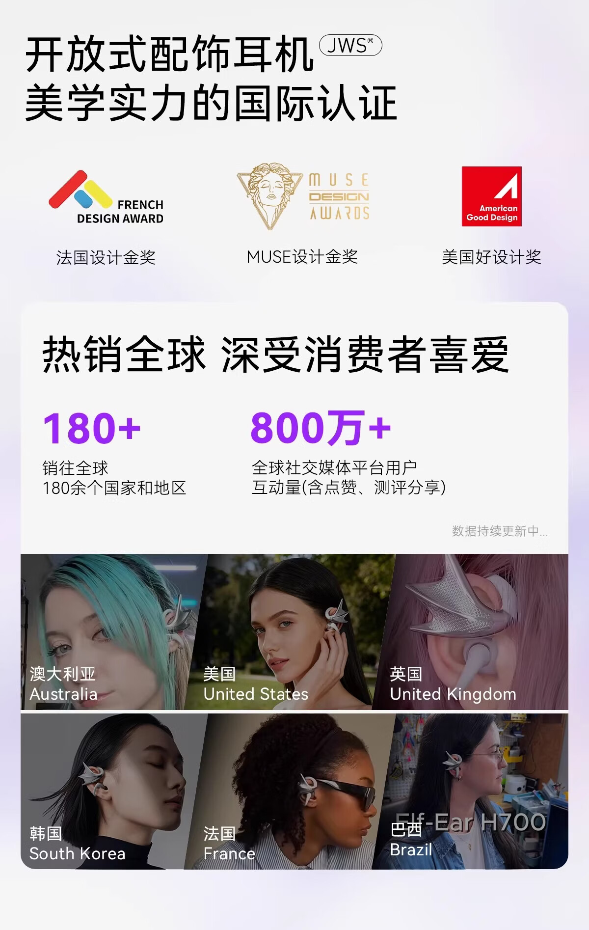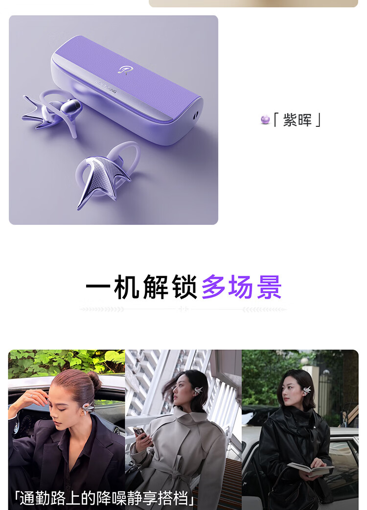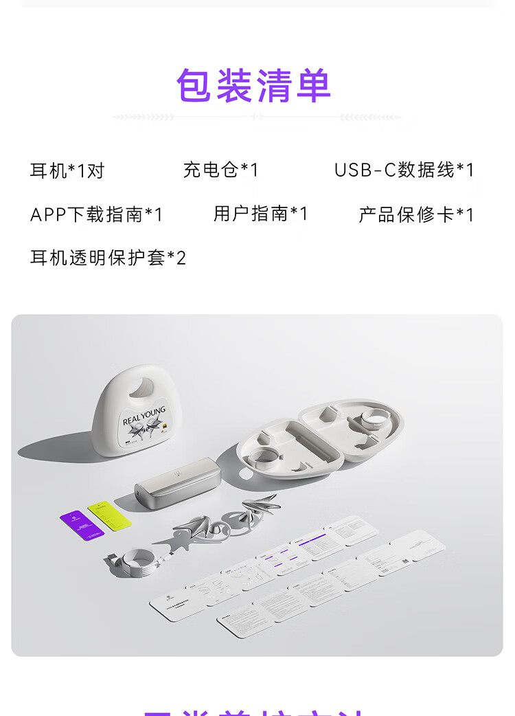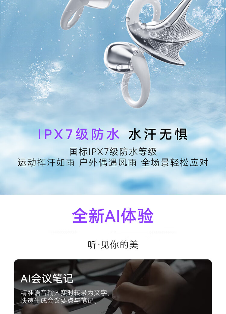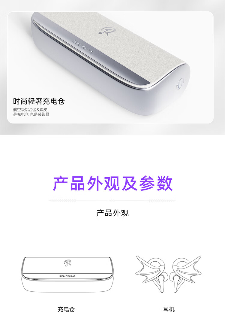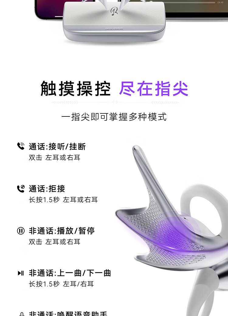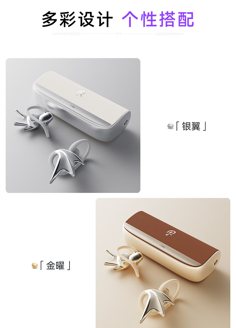 REAL YOUNGJWS 开放运动舒适不入耳挂耳式AI通话降噪 ipx7防水 超长续航高颜值配饰无线蓝牙耳机