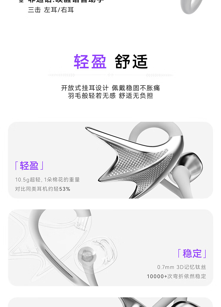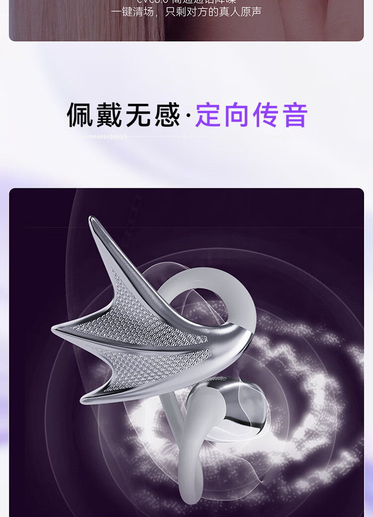 萨勒芬妮【OpenearClip华强北顶配款】蓝牙耳机耳夹开放式无线跑步运动通话降噪挂耳骨传导适用于华为 【云感白】全景音效丨久戴舒适 超长续航丨超清通话丨AI降噪