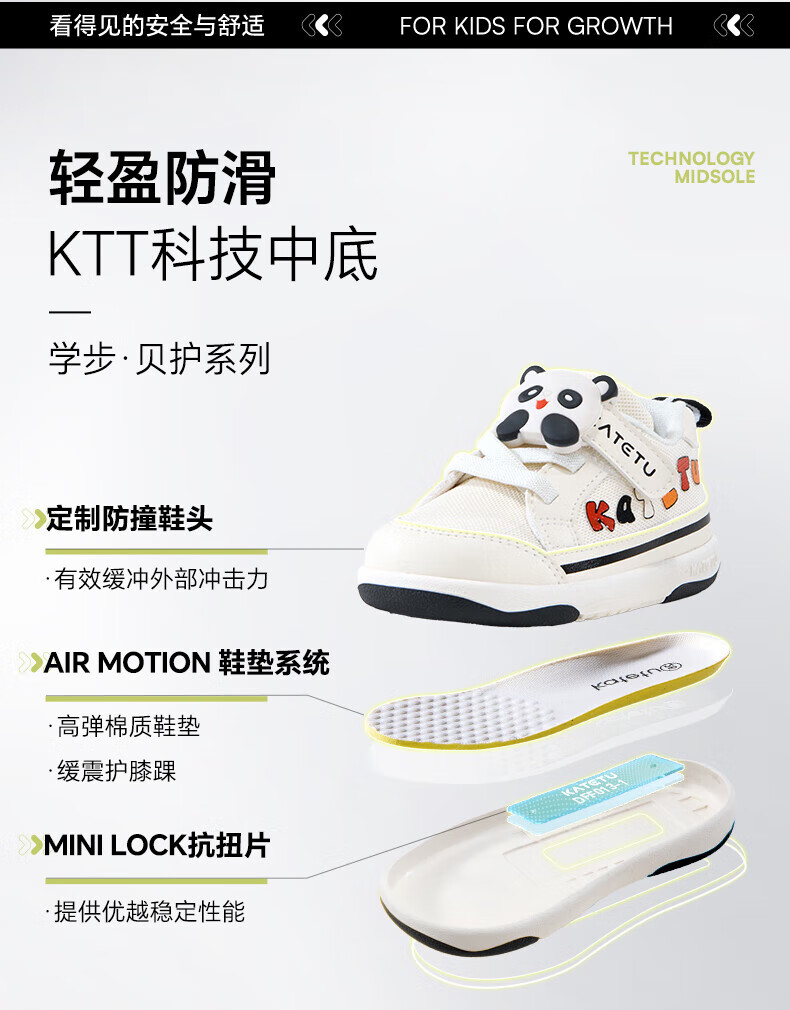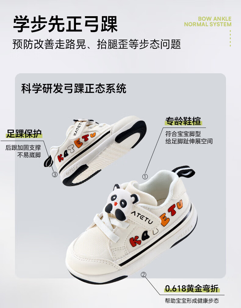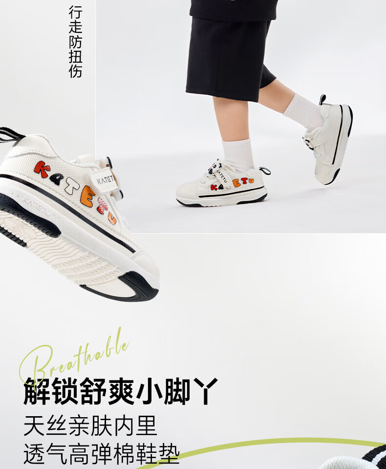 卡特兔宝宝学步鞋春季软底防滑机能鞋透气婴幼男童女童户外休闲鞋小白鞋 白黑 24 内长14.5cm 脚长13.6-14.2