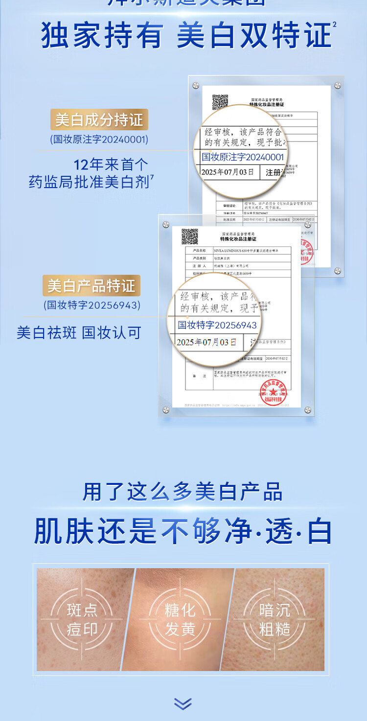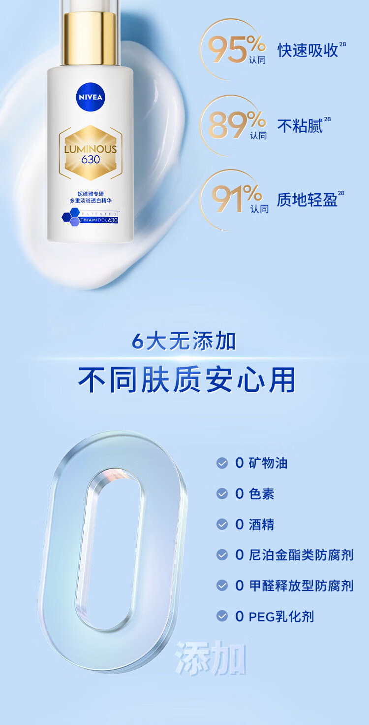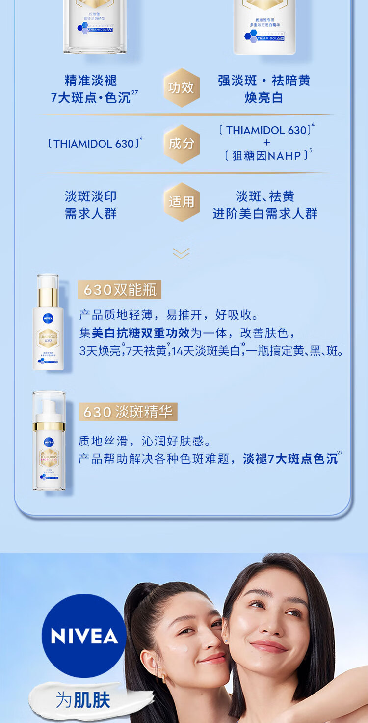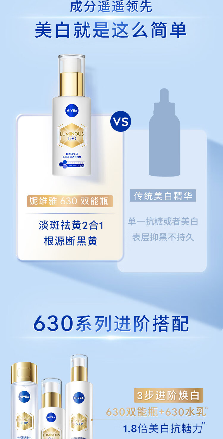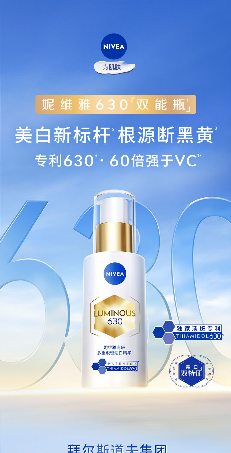妮维雅【王源同款】630双能瓶特证美白精华50ml抑黑淡斑提肤色