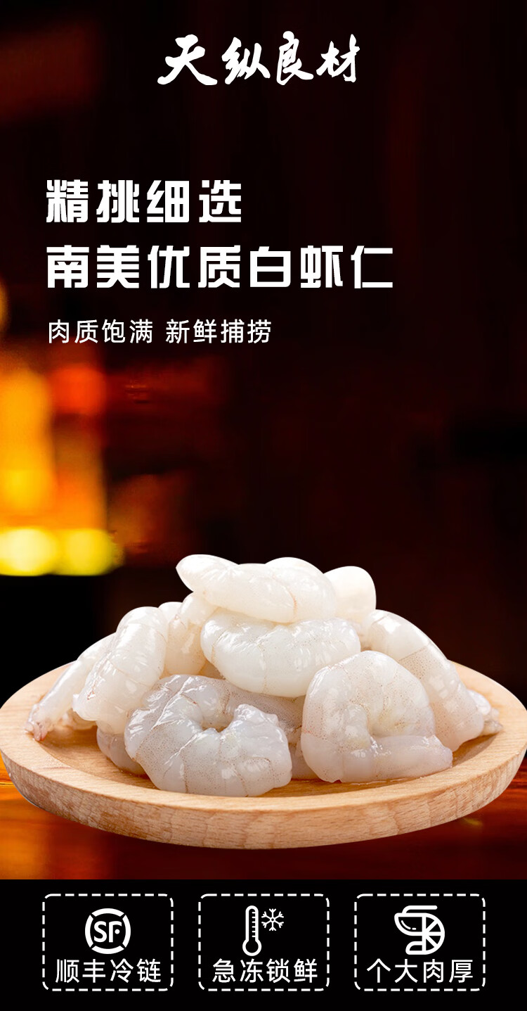 天纵良材南美白对虾仁手工去虾线特大虾仁低脂海鲜3040级鲜剥虾仁年货礼品 大号虾仁【61-70只】 2斤(净重)