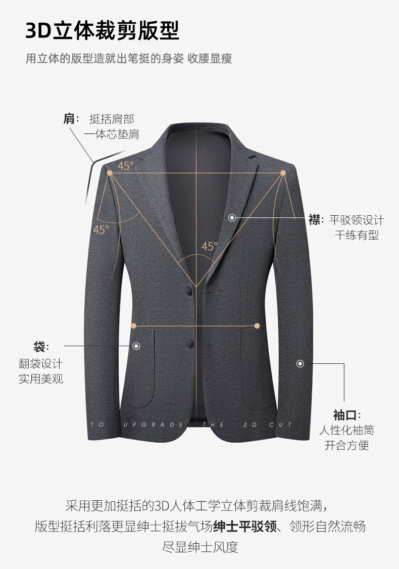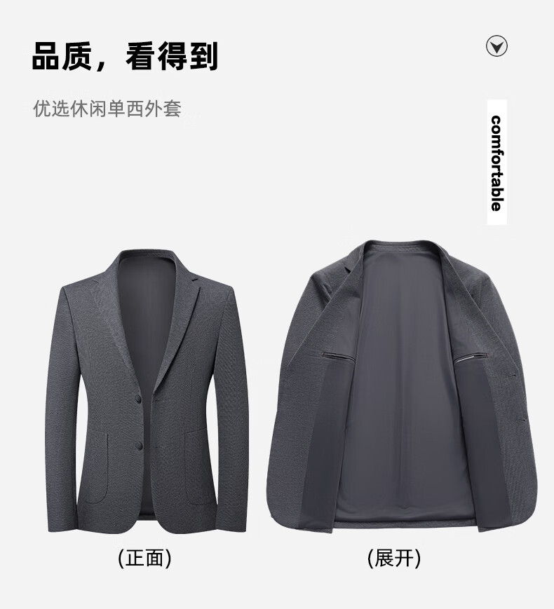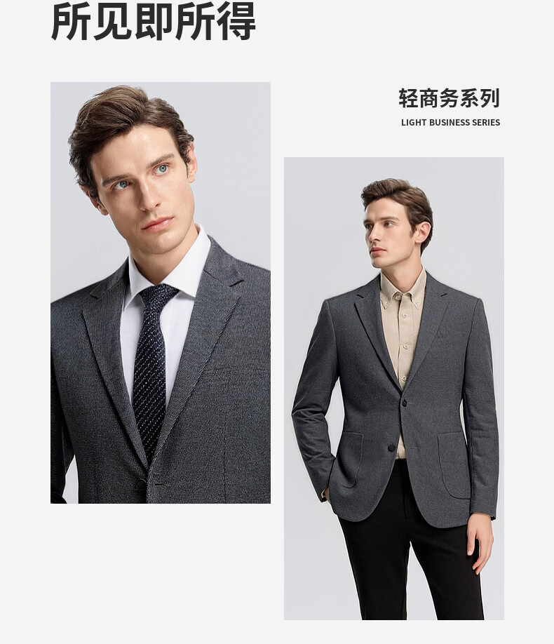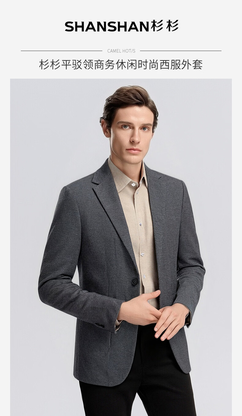 SHANSHAN杉杉男士西服外套2026年春季新款商务休闲时尚上衣长袖平驳领西装 灰色 54 /190