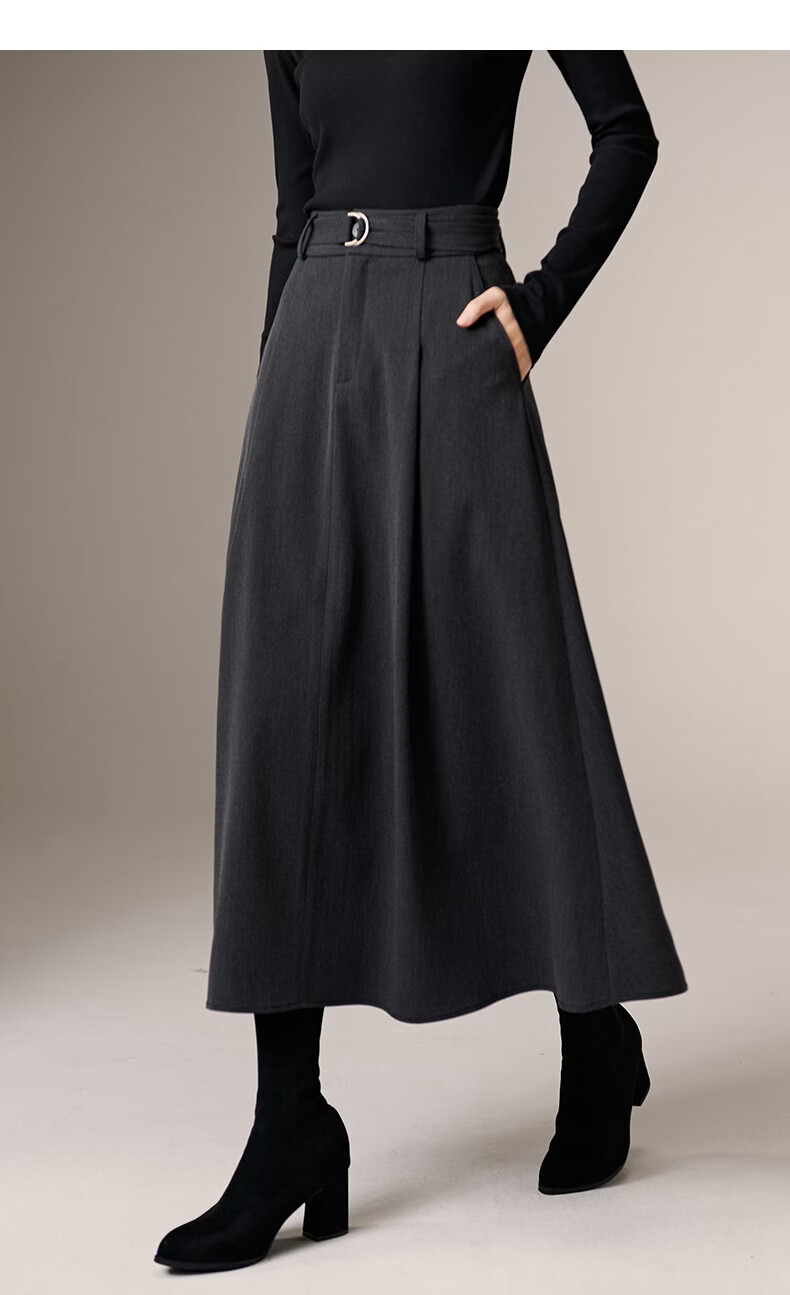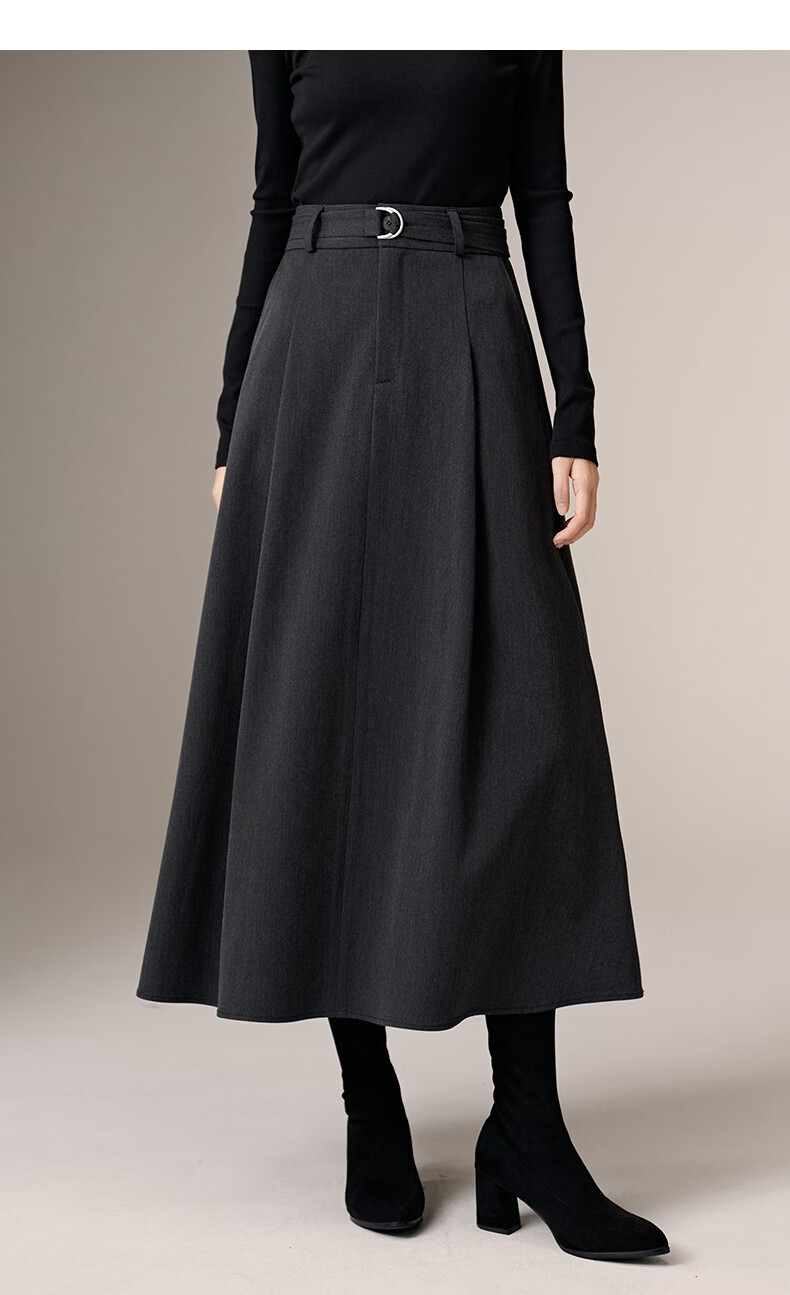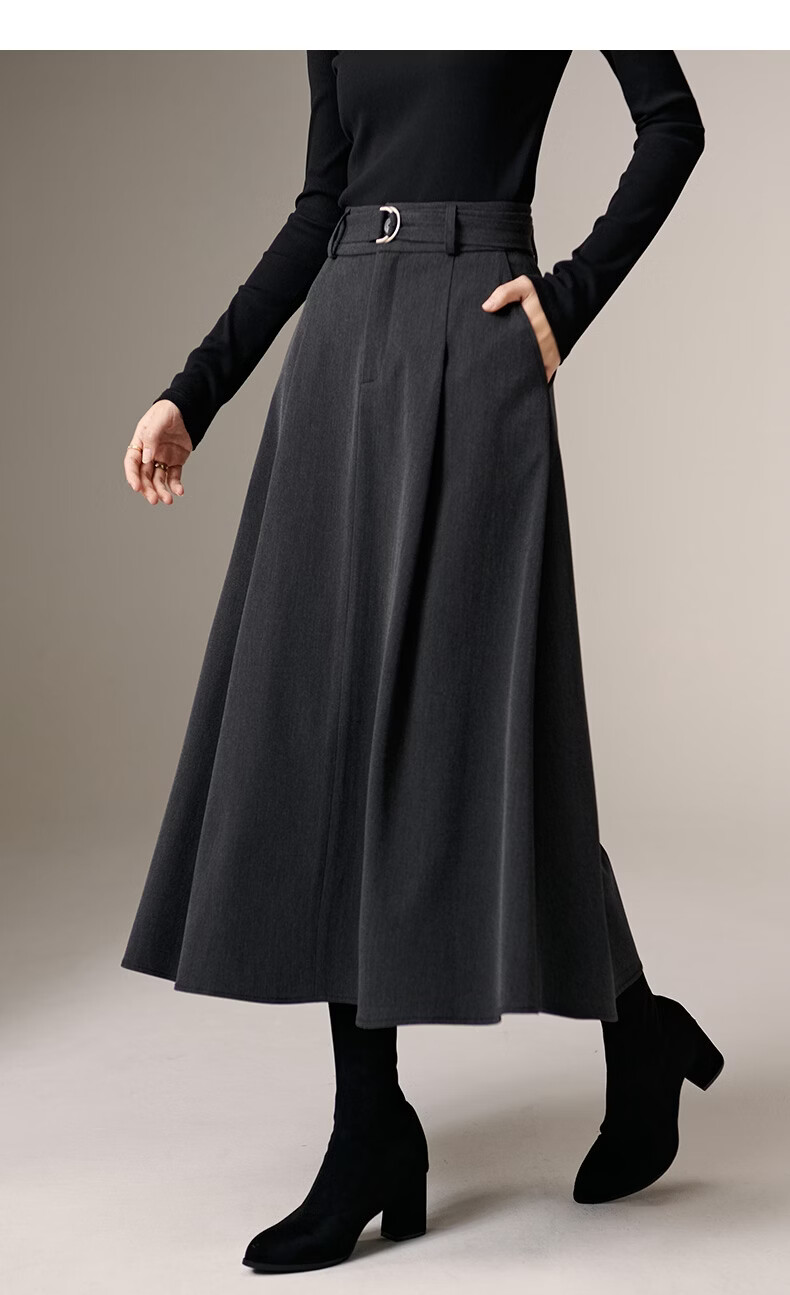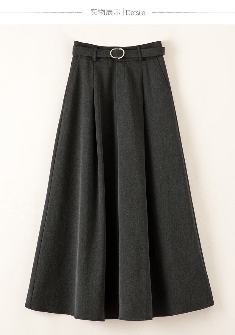 晚白【新品】2026春款气质高腰格雷灰裙子利落显瘦职场通勤A字半身裙 深灰色 XL