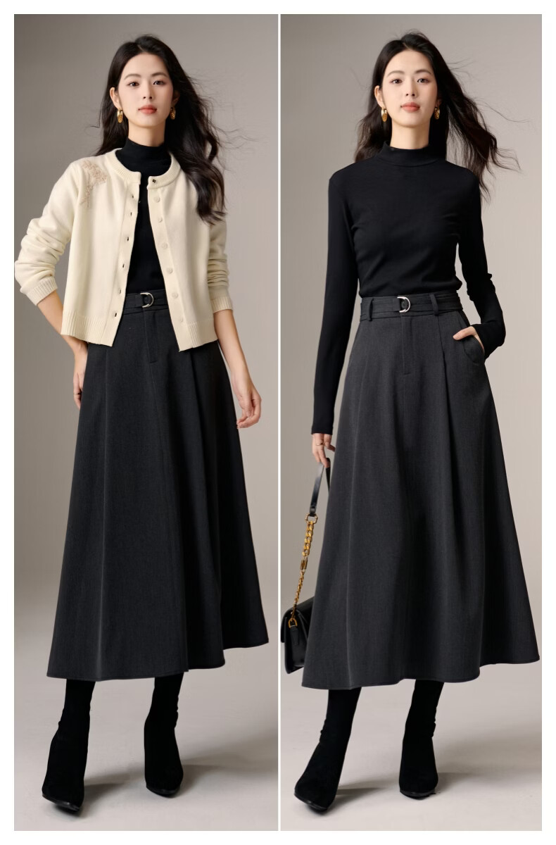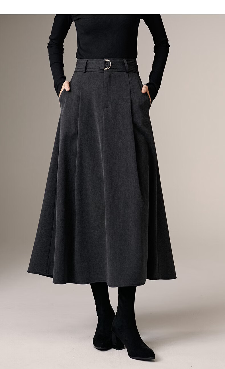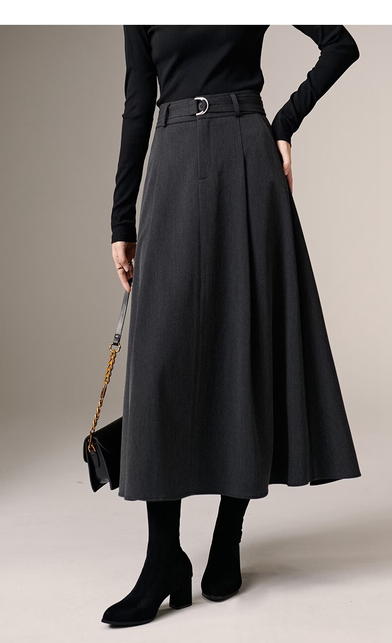 晚白【新品】2026春款气质高腰格雷灰裙子利落显瘦职场通勤A字半身裙 深灰色 XL