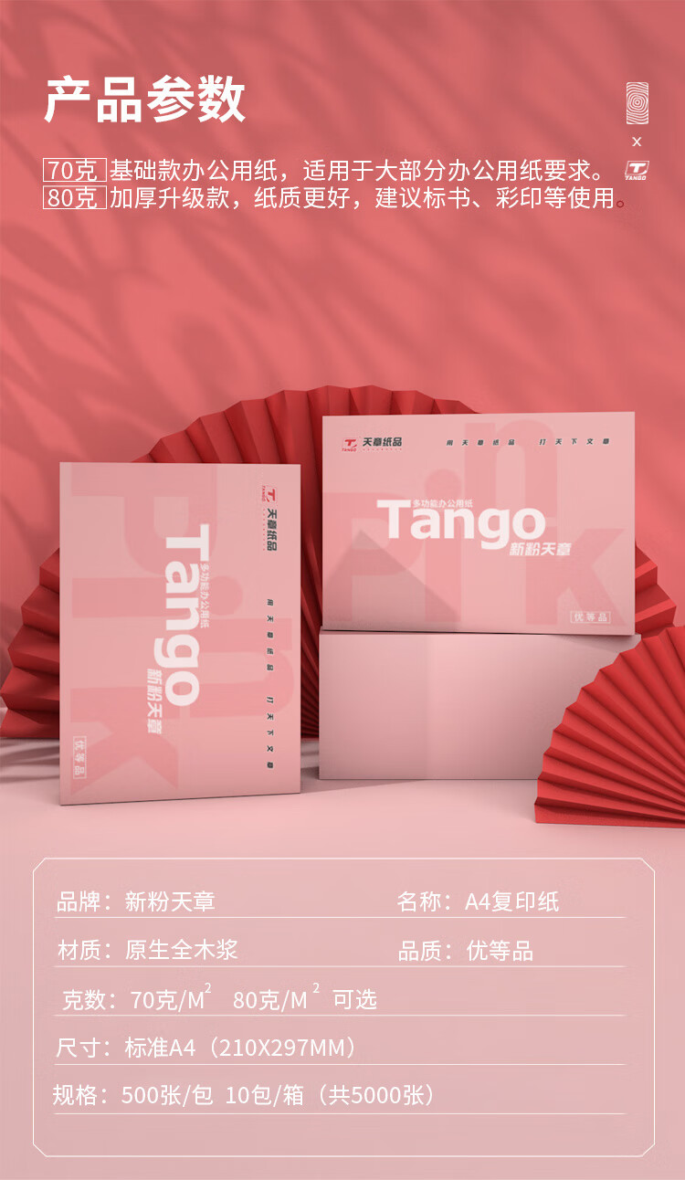 天章 (TANGO)新粉天章A4纸打印纸 70g500张*10包一箱【均衡品质】白纸草稿纸 高性价比复印纸 整箱5000张