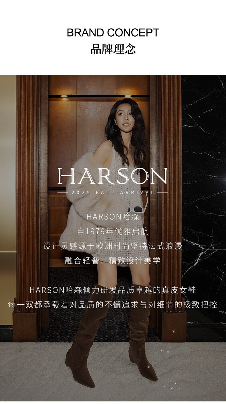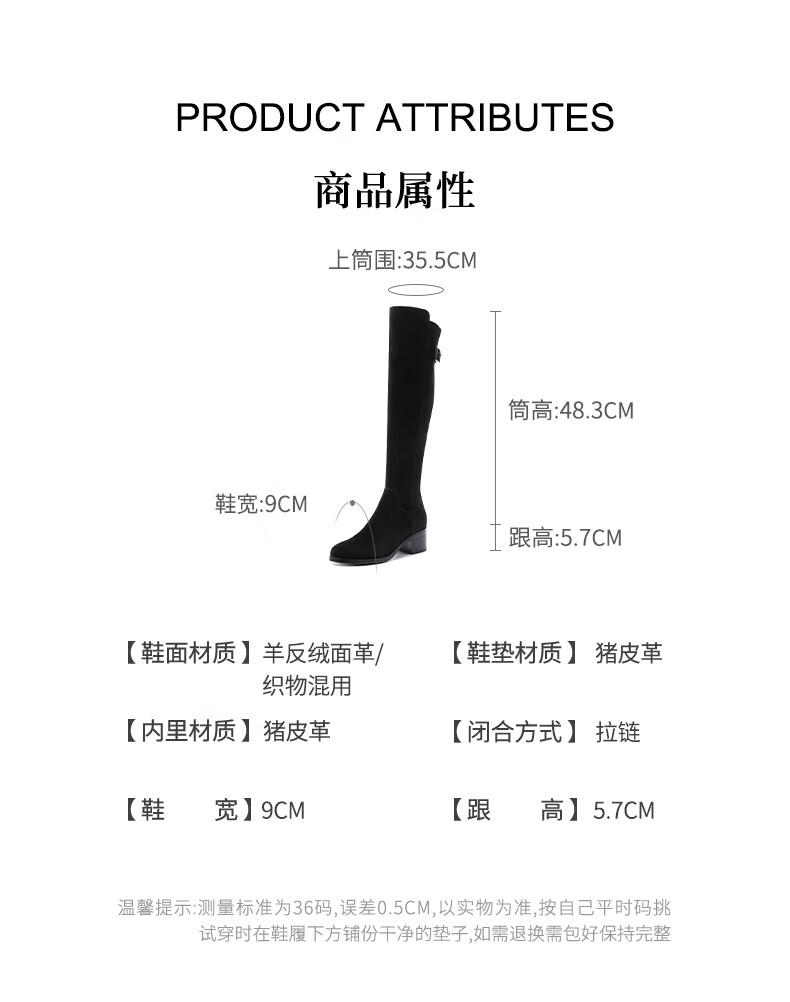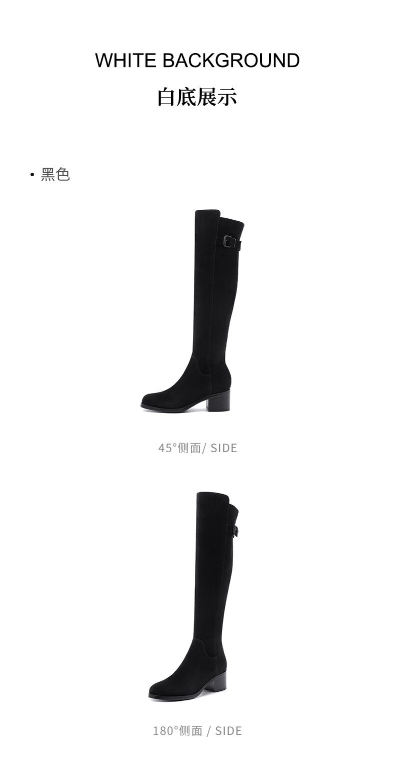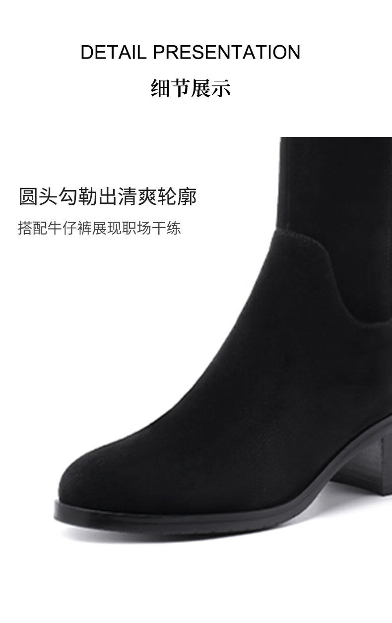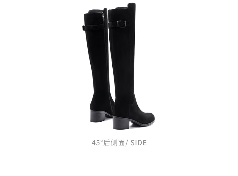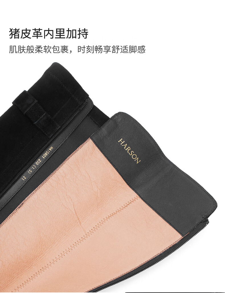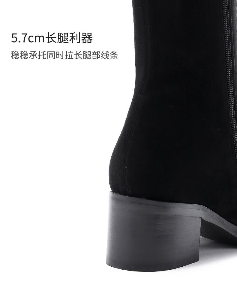 哈森(Harson)冬季长靴粗高跟百搭炸街黑色长筒瘦瘦靴女HA259060 黑色 羊反绒面革/织物 34