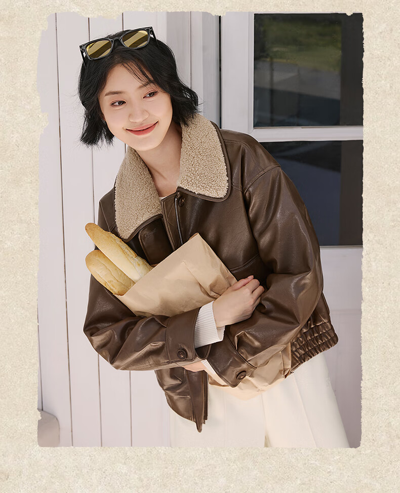 热风(Hotwind)热风2025年冬季新款女士都市仿皮外套 02棕色 S