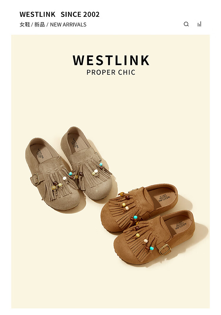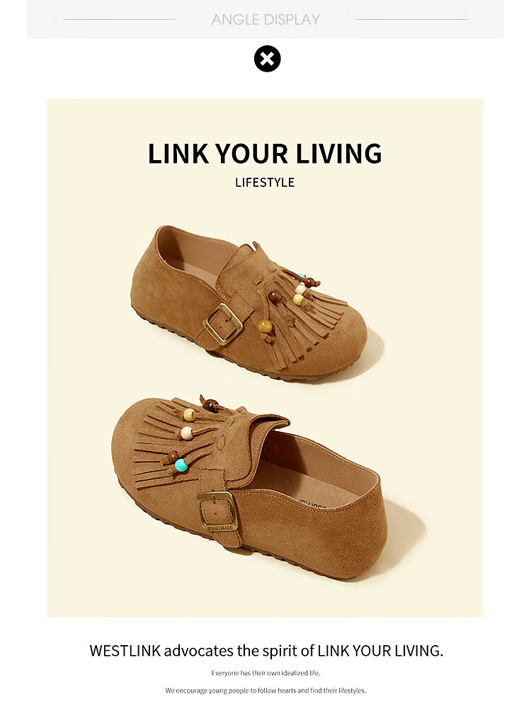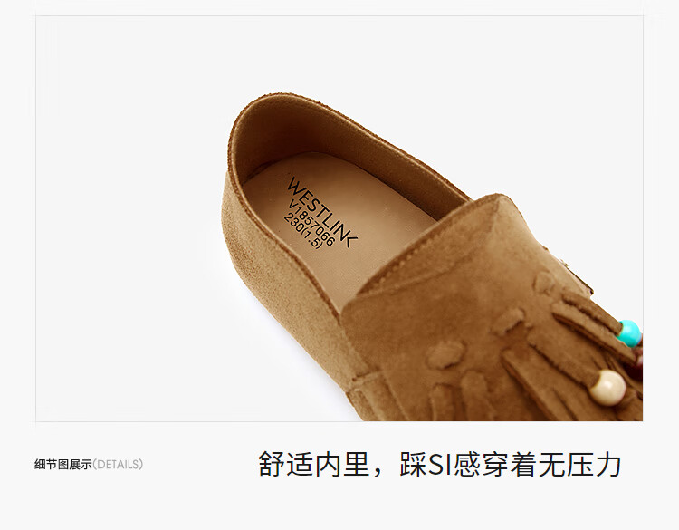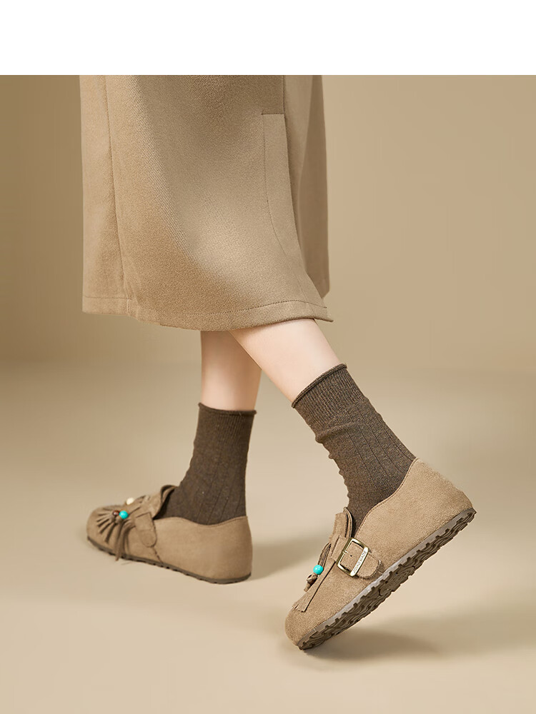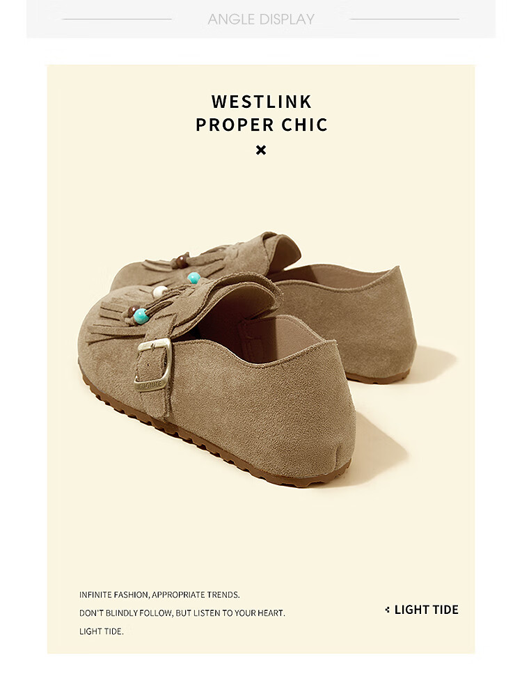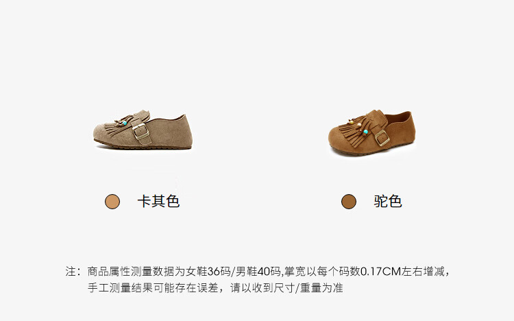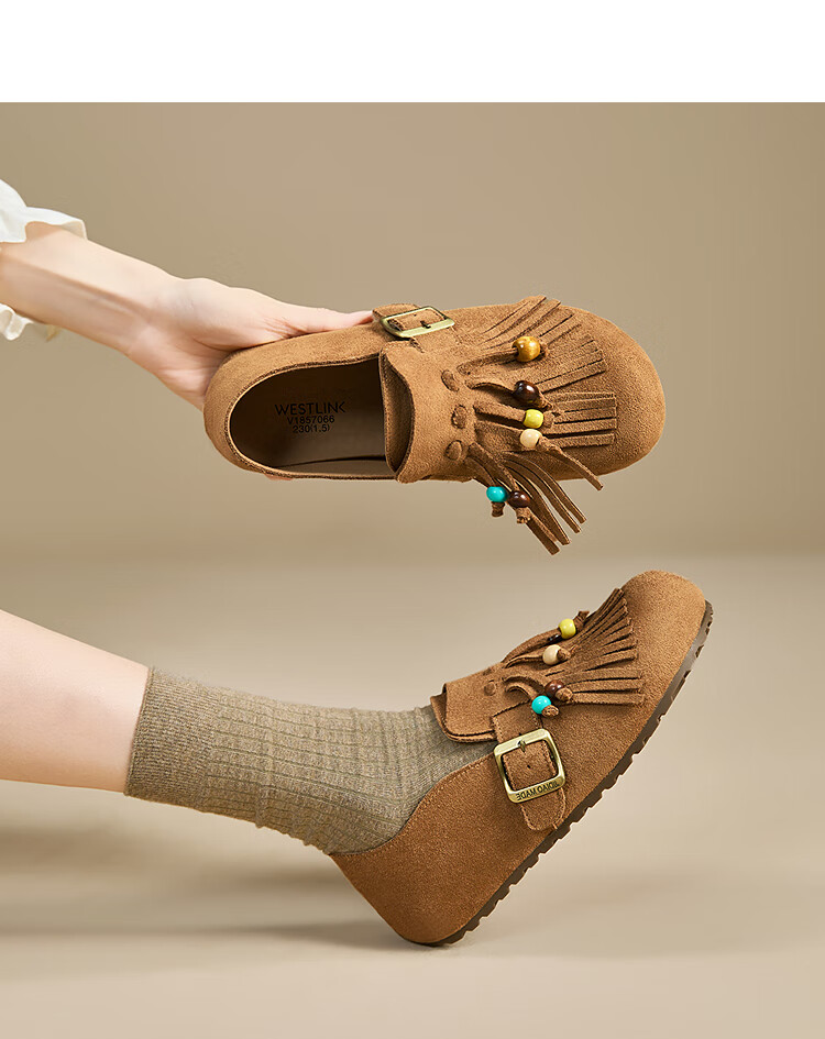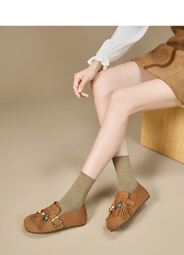 西遇流苏勃肯鞋女2025新款秋季全包一脚蹬懒人平底鞋圆头软底单鞋 卡其色 38 (240)