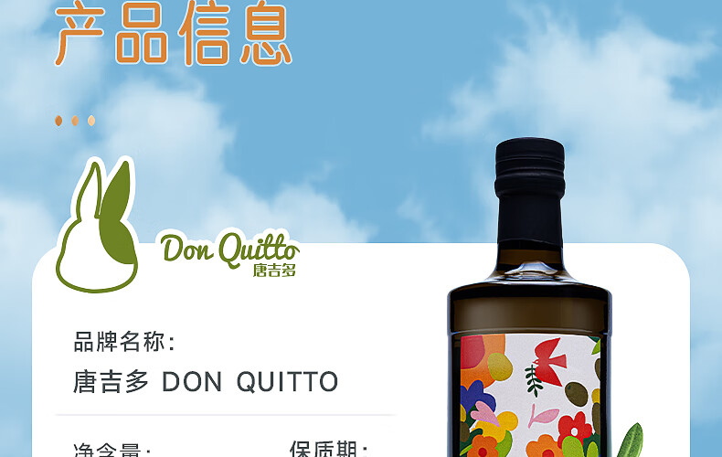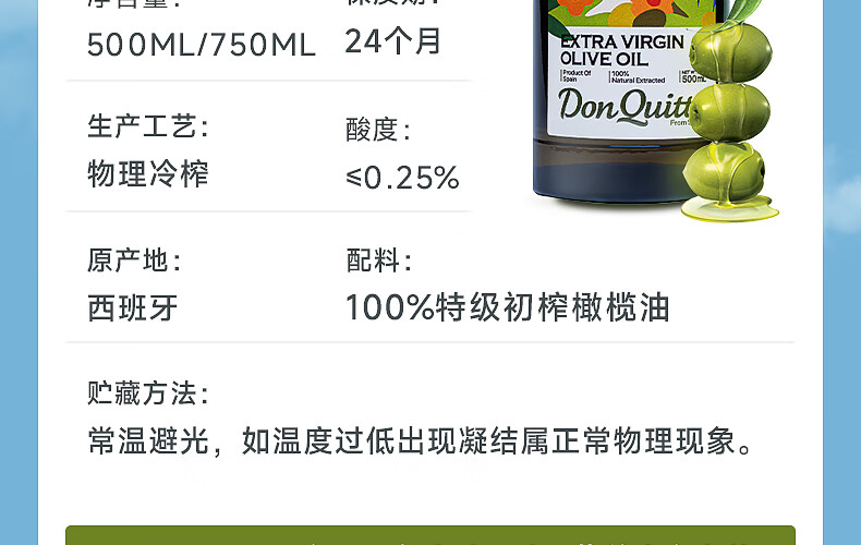 Don Quitto唐吉多特级初榨橄榄油高多酚低酸度西班牙原装进口 750mL效期26/9/2