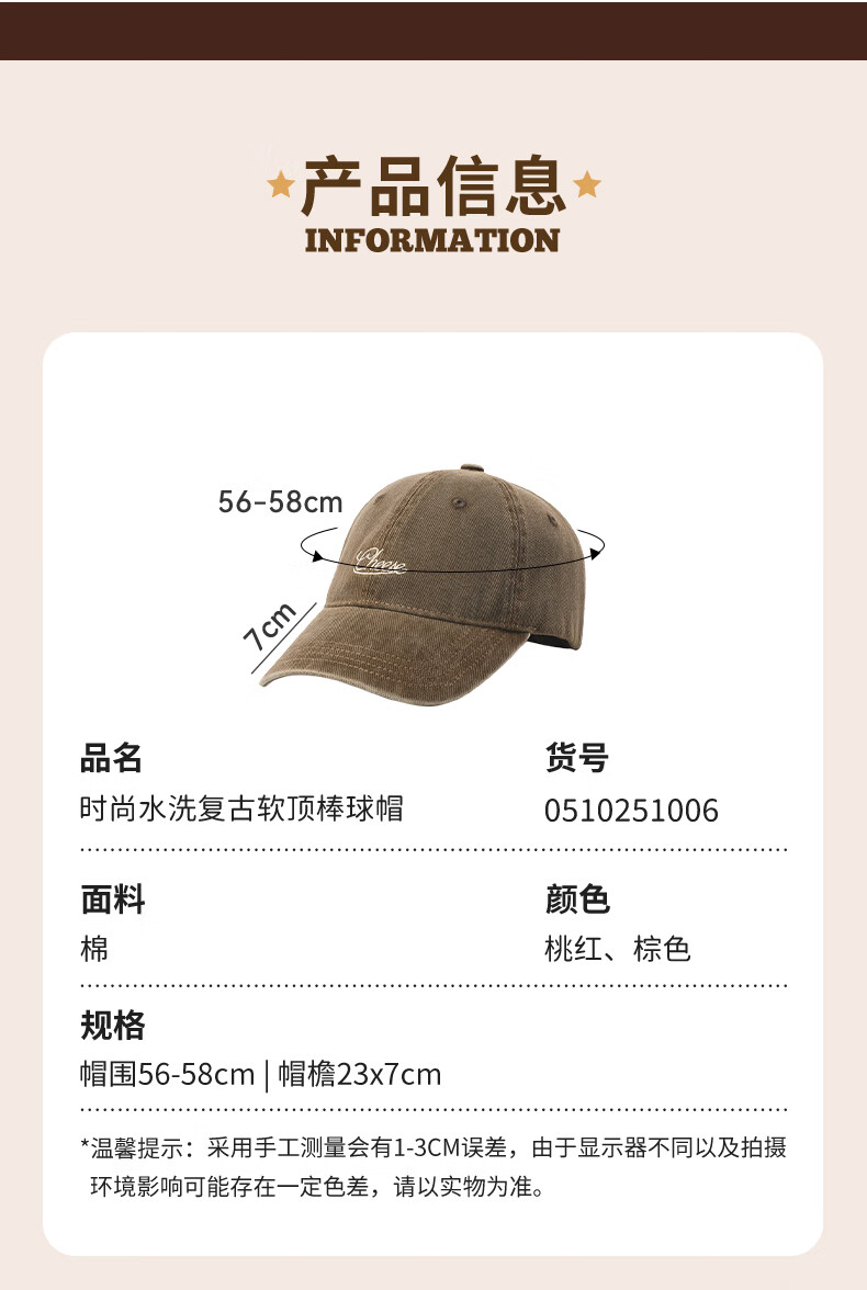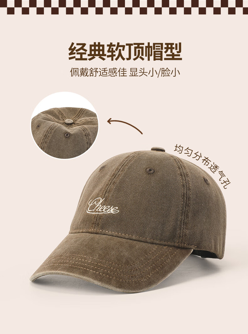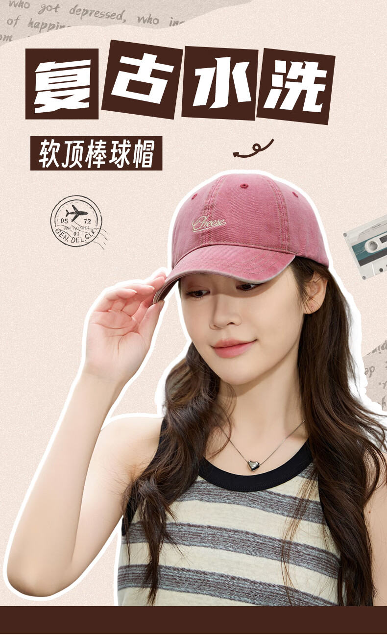 畹町帽子女棒球帽女水洗时尚复古做旧字母刺绣弯檐鸭舌帽软顶情侣帽 时尚水洗软顶棒球帽-高级灰 均码