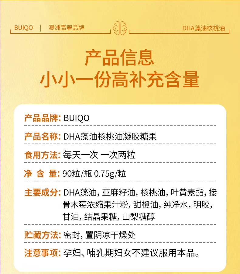 BUIQO澳洲品牌DHA核桃油凝胶dha学生青少年专注提高学习备考 3瓶装(高强度用脑,周期装)