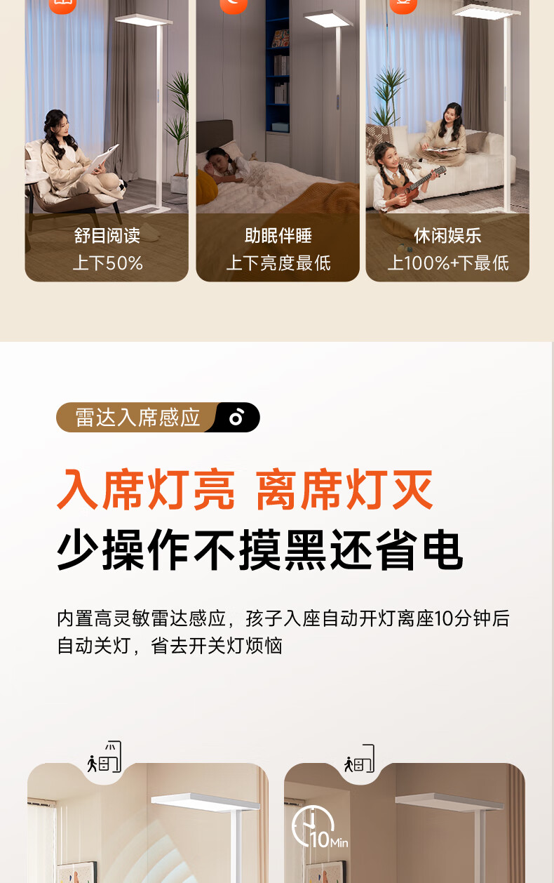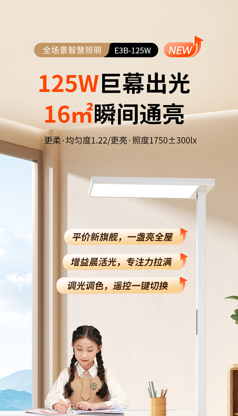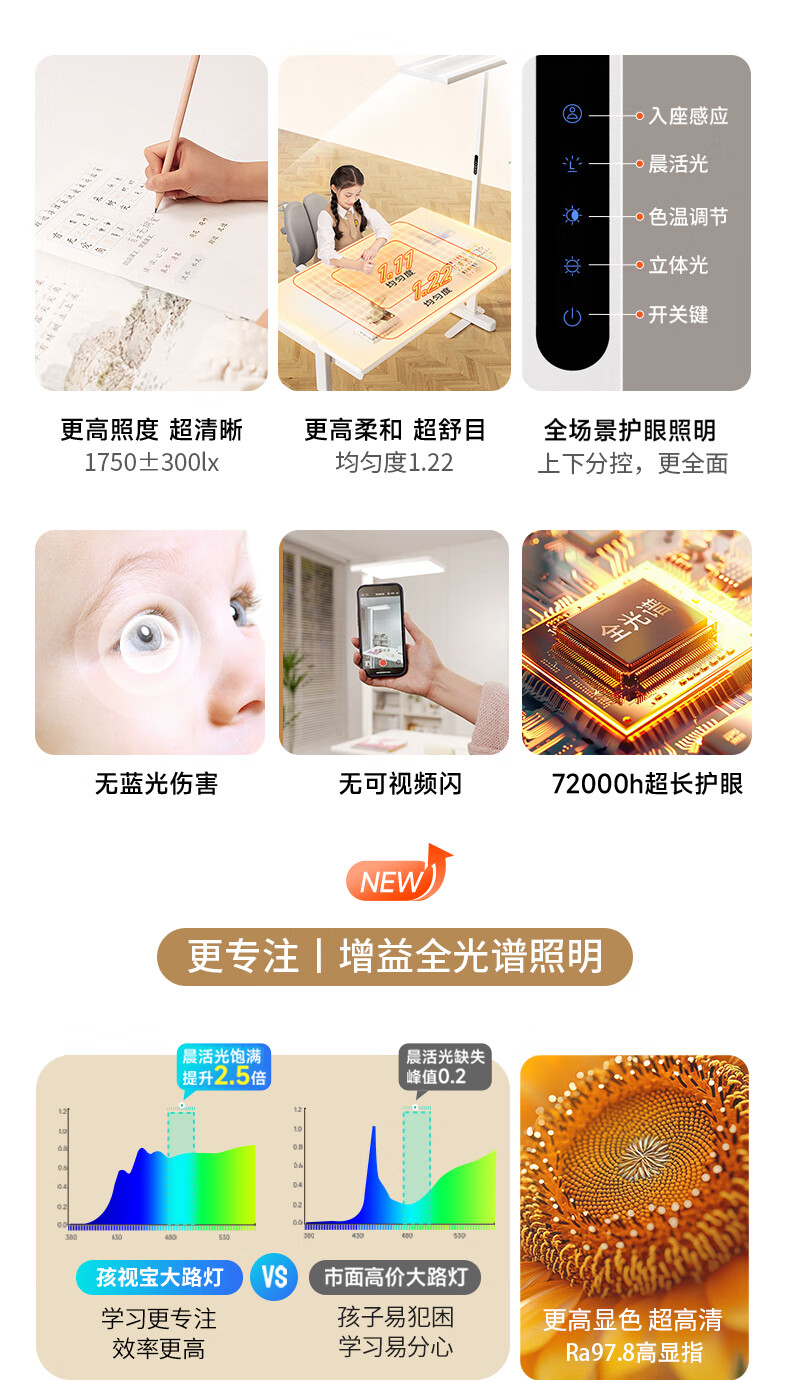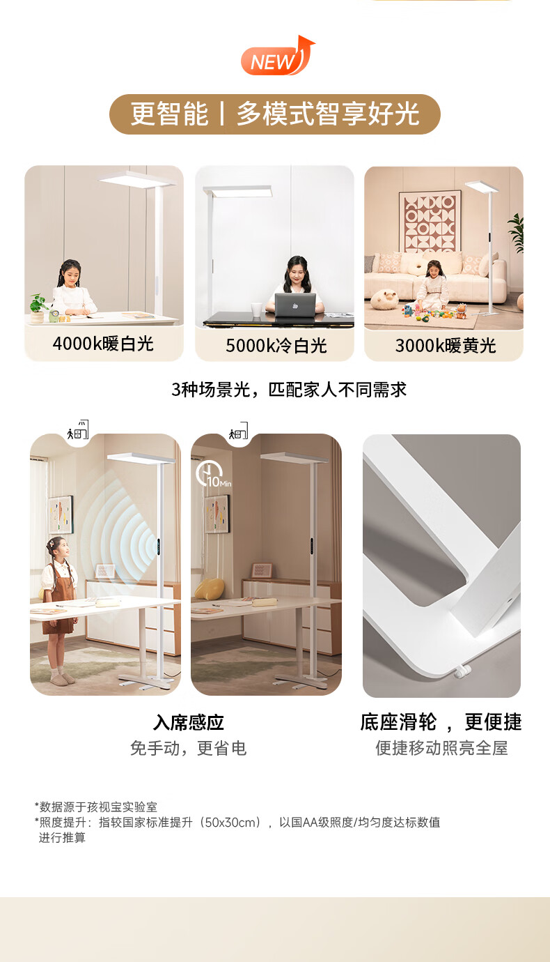 孩视宝立式护眼大路灯儿童学习全光谱智能落地台灯卧室书房学生阅读灯 学生阅读灯