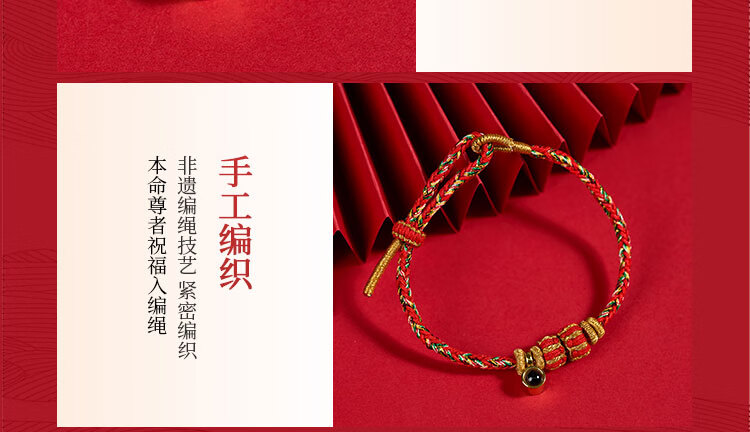 锦福五台山八大守护神手绳手工编织楞严咒投影石本命年红绳十二生肖 不动明王守护手绳-生肖鸡