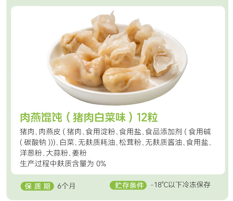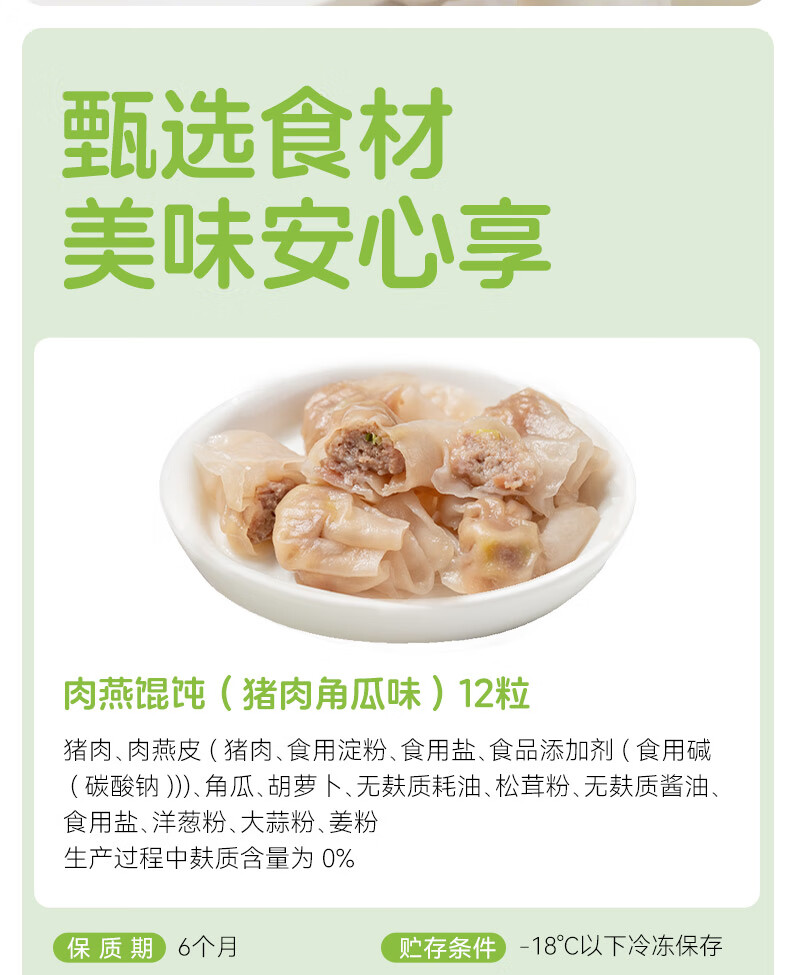 佑儿圆肉燕馄饨108g速冻制品儿童营养早餐12粒装 独立无麸质生产线 猪肉白菜味