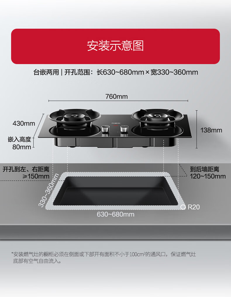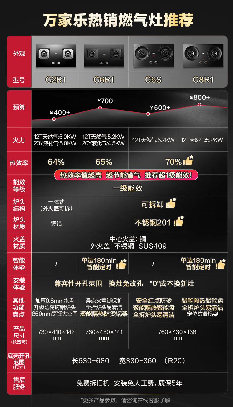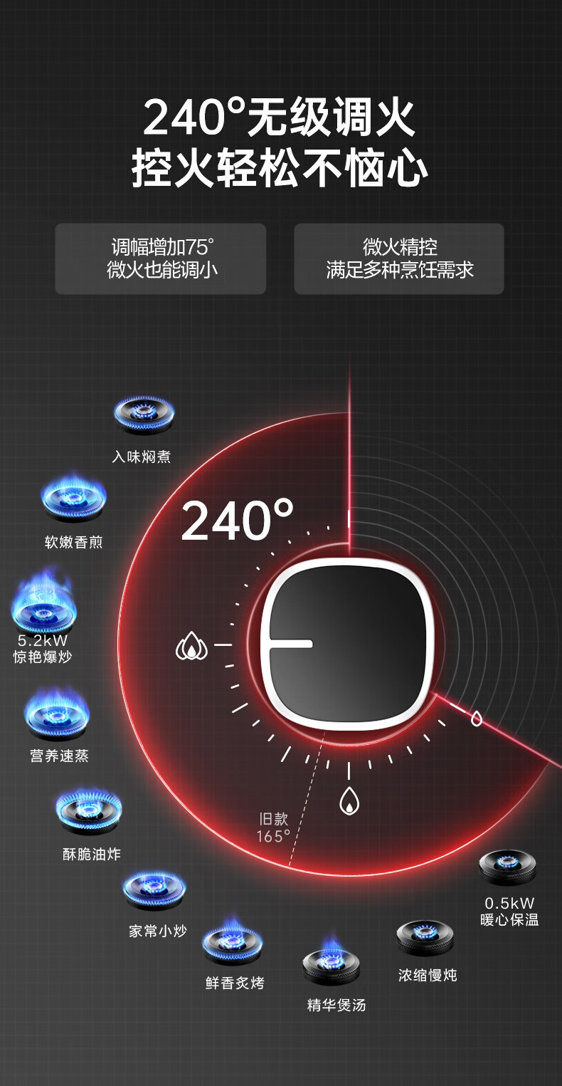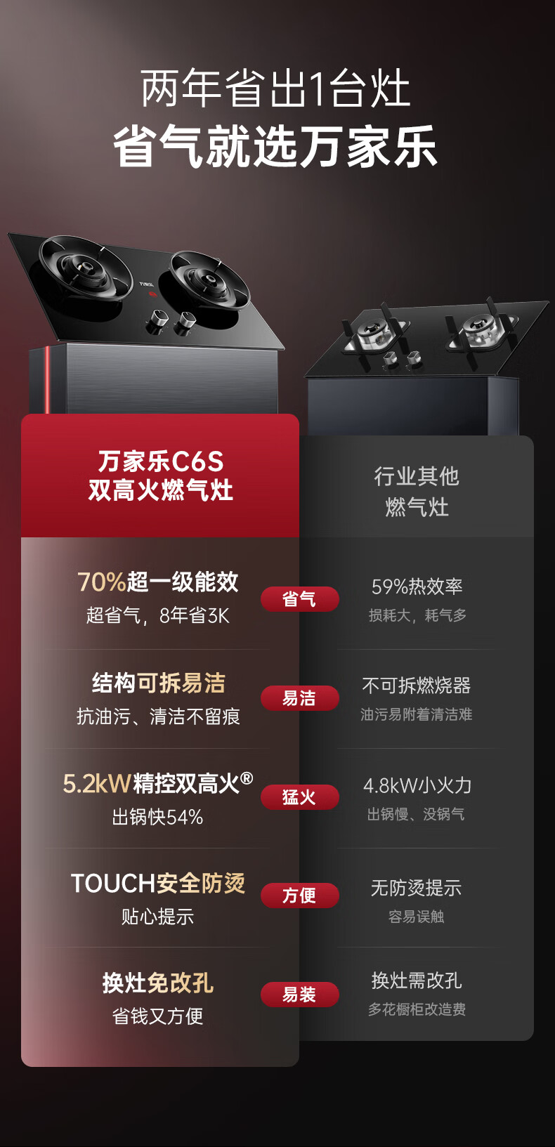 万家乐燃气灶【小飓风C6S】5.2kw大火力灶70%高热效率台嵌两用换新免扩孔高温防烫灶 可适配开孔天然气灶
