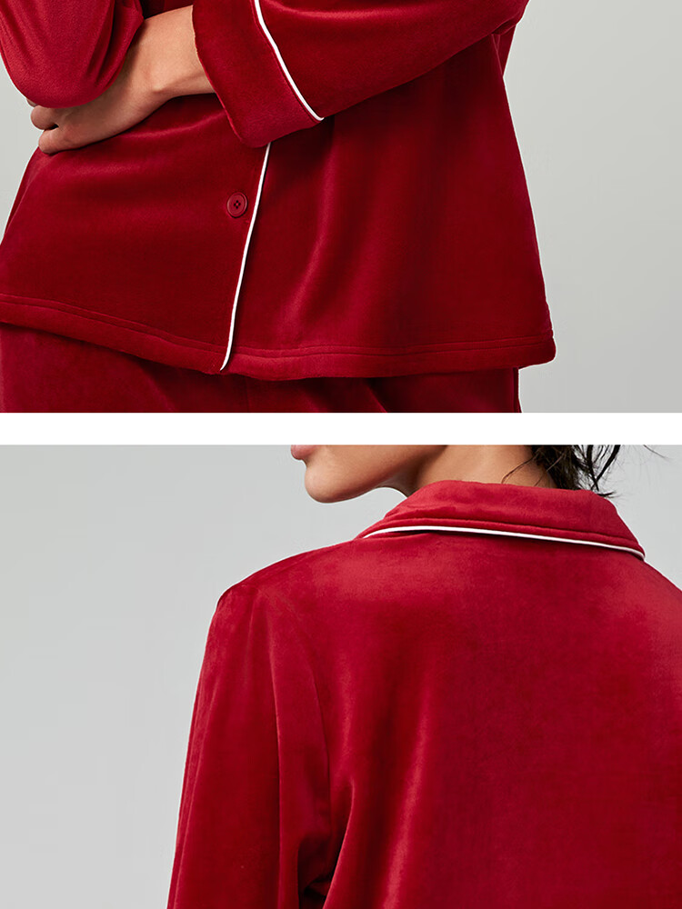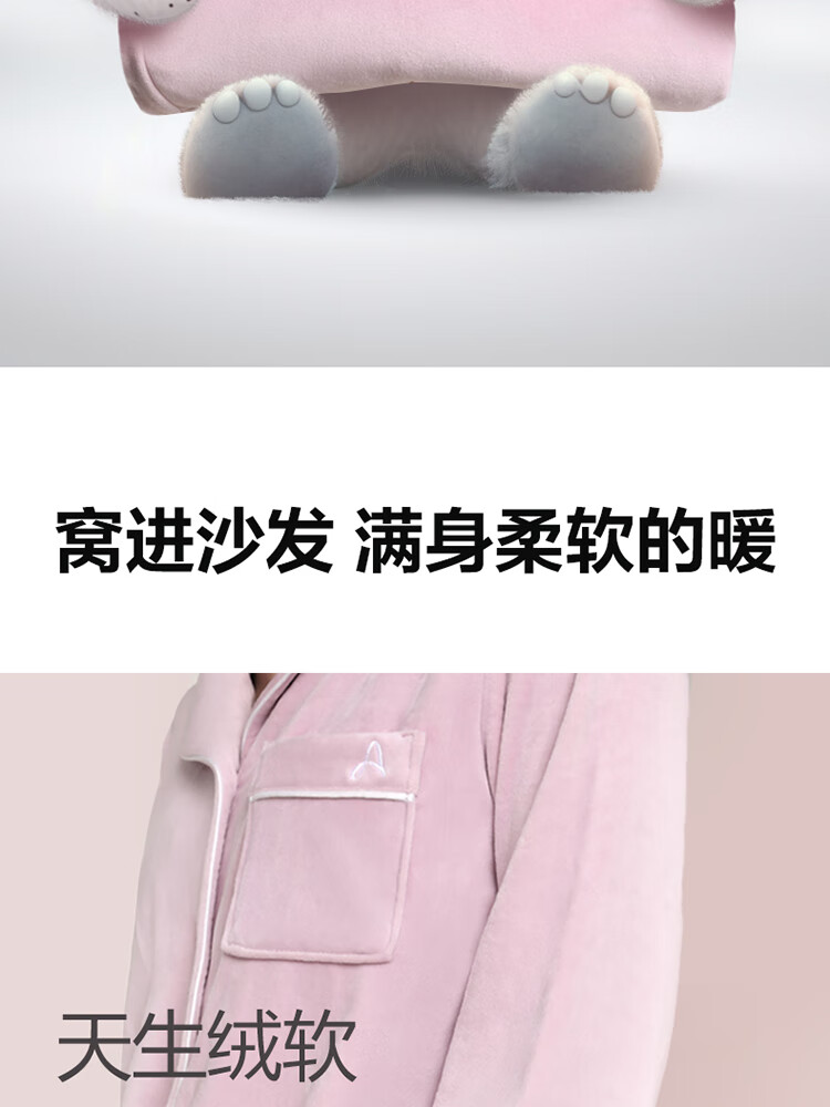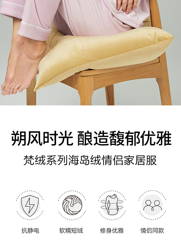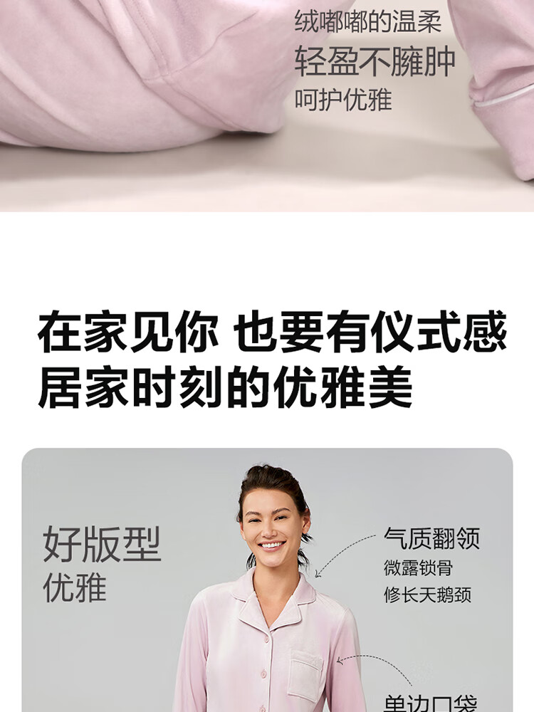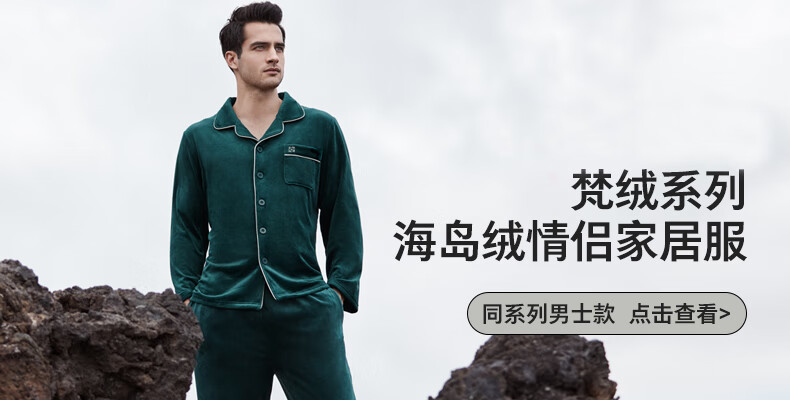 爱慕内衣秋冬睡衣女海岛绒抗静电长袖家居服套装AM469201蓝色165