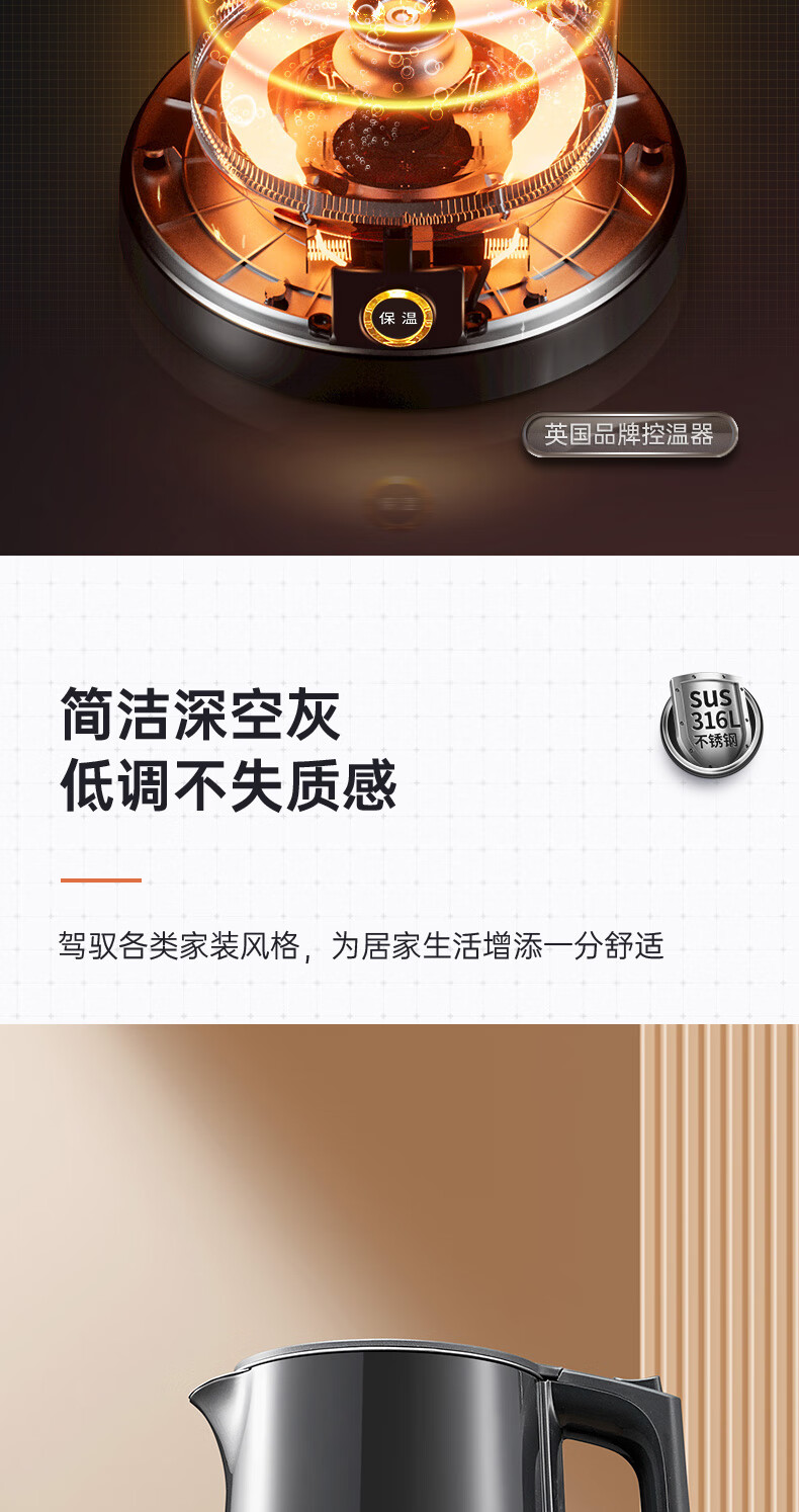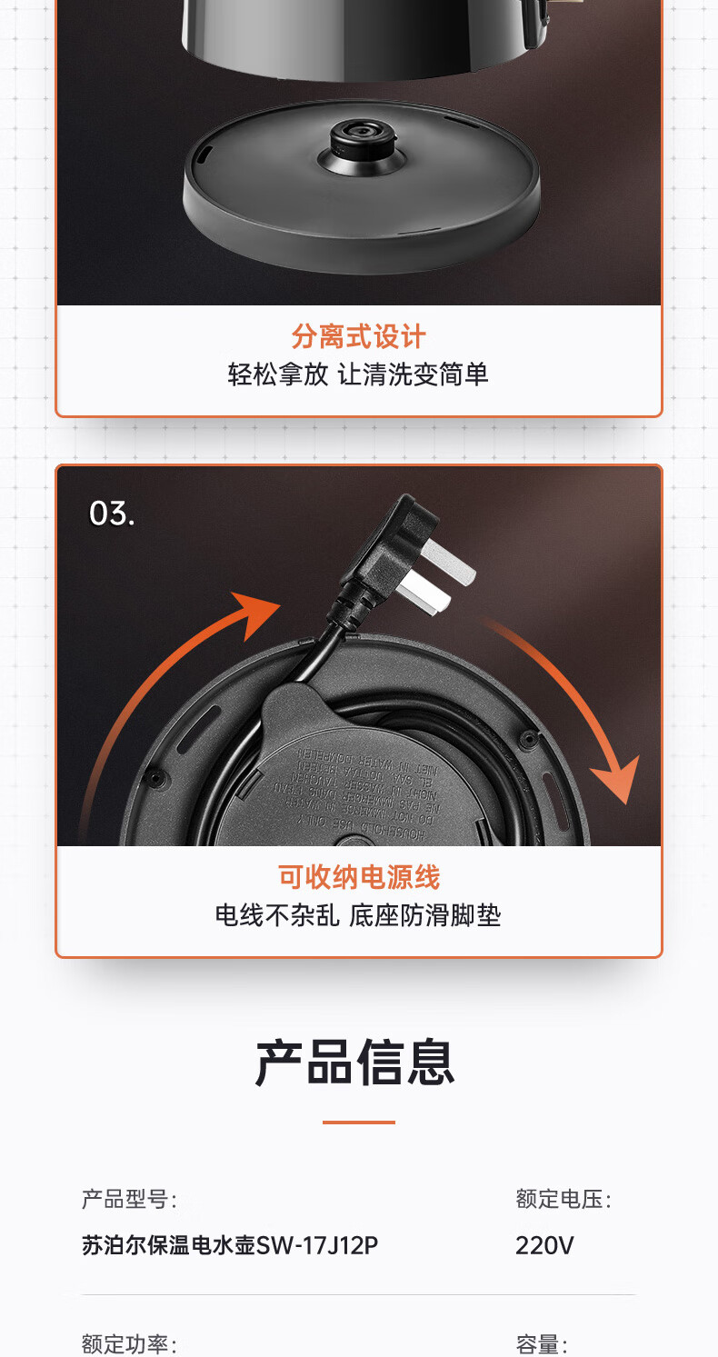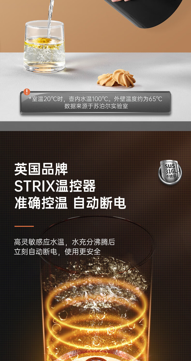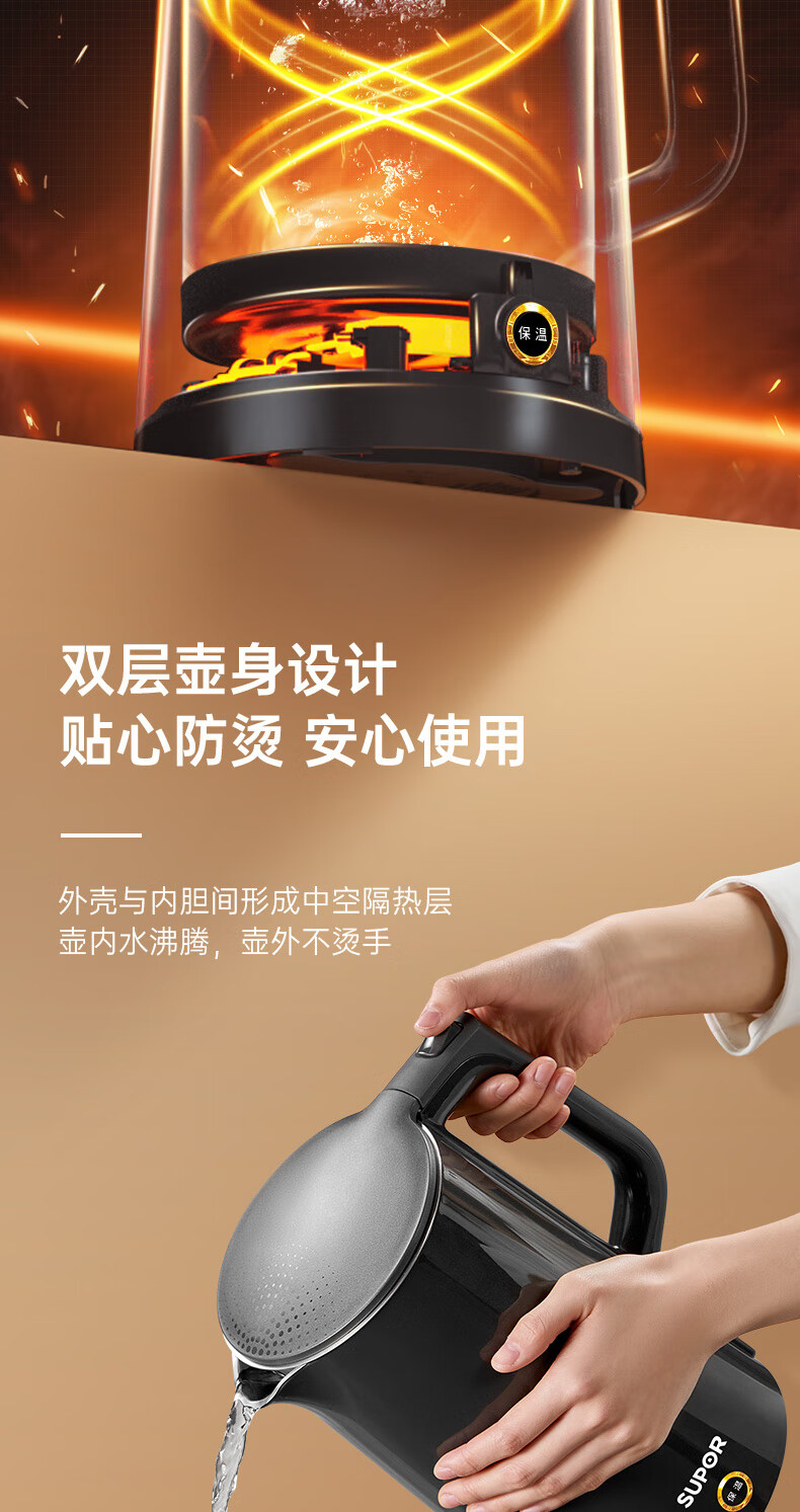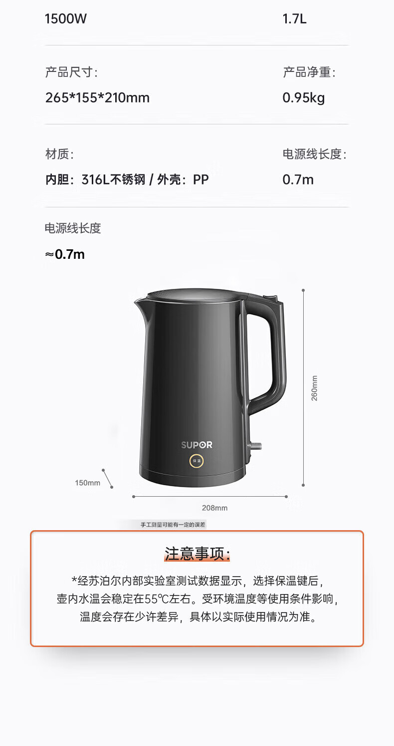 苏泊尔(SUPOR)电水壶热水壶 1.7L大容量全钢无缝电热水壶 316L不锈钢烧水壶 一键保温恒温 SW-17J12P