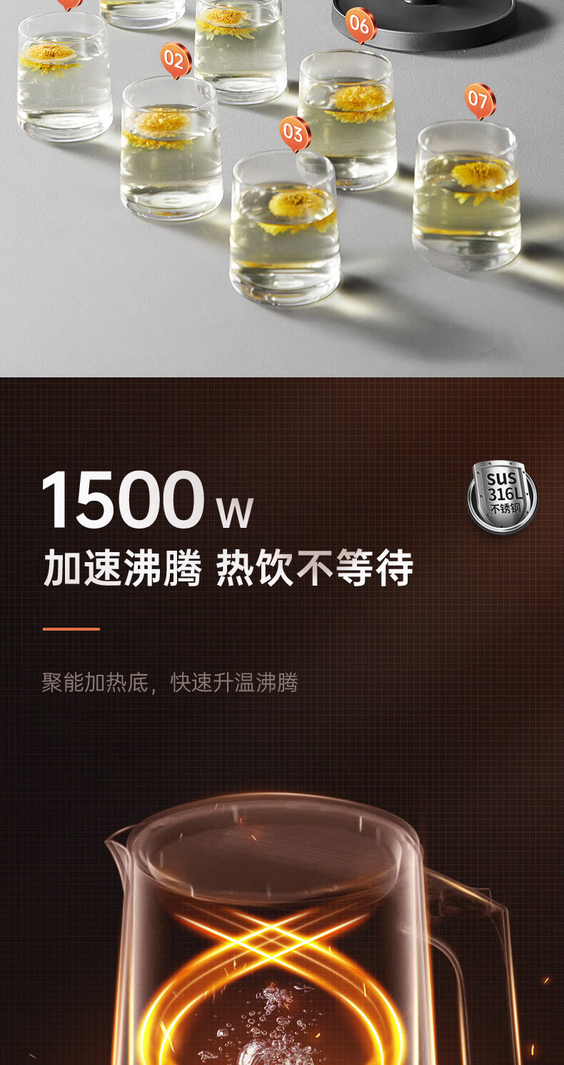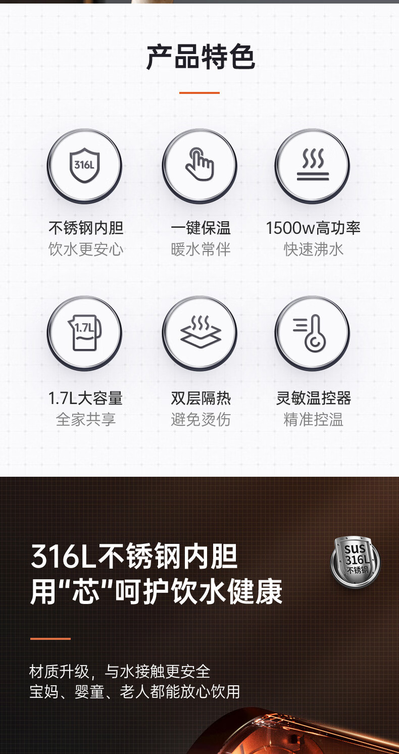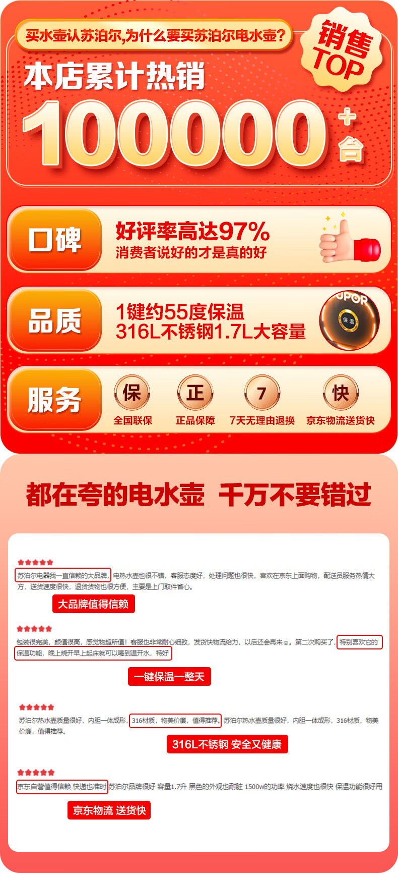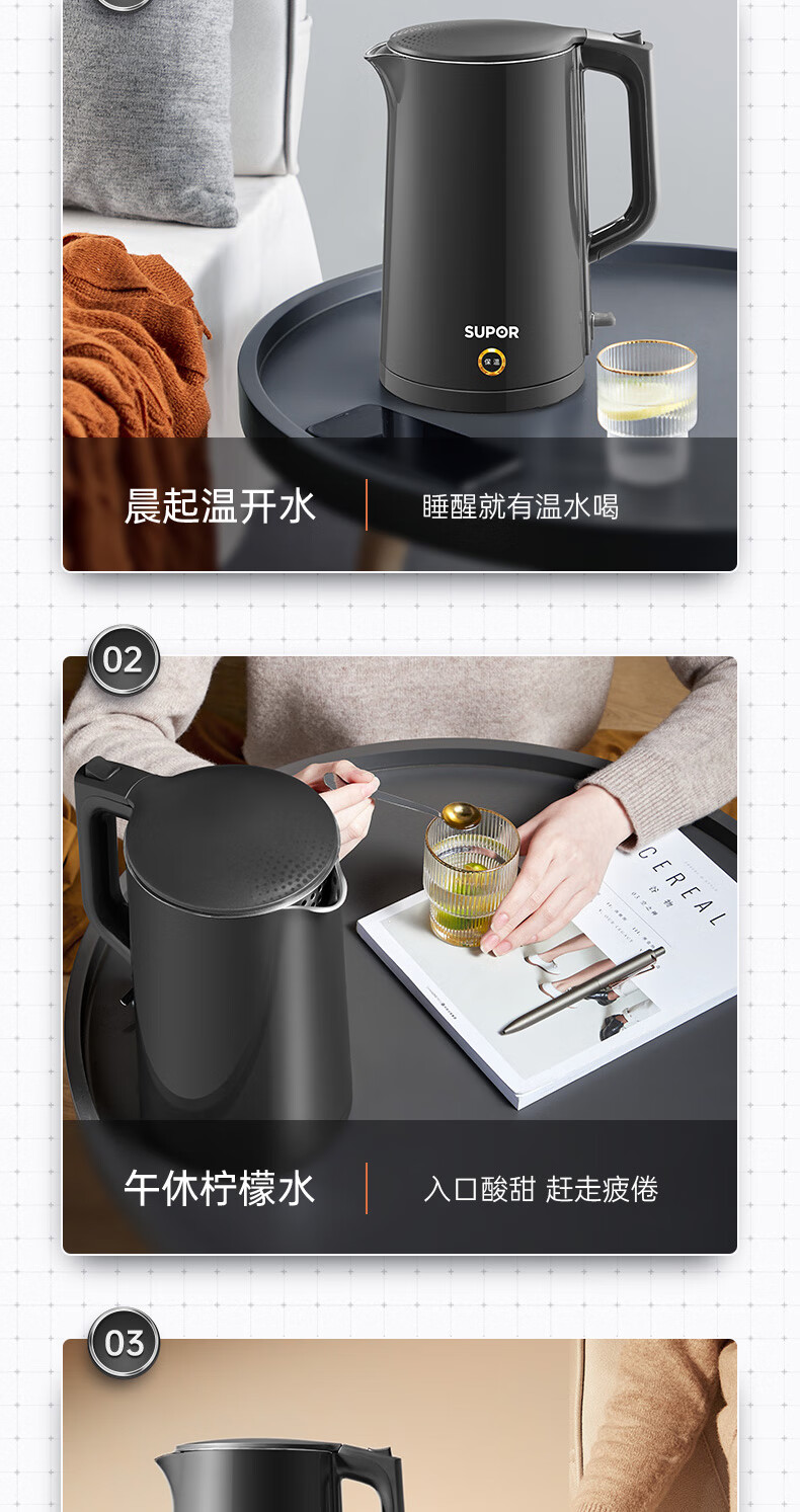 苏泊尔(SUPOR)电水壶热水壶 1.7L大容量全钢无缝电热水壶 316L不锈钢烧水壶 一键保温恒温 SW-17J12P