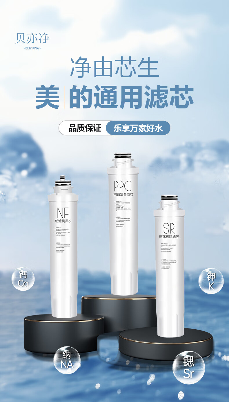 贝亦净适用美的净水器滤芯全套立式净水器滤芯NF纳滤 JD1359S/ JD1259S-NF【全套四支-4支装】 SR软化树脂滤芯【多型号通用】