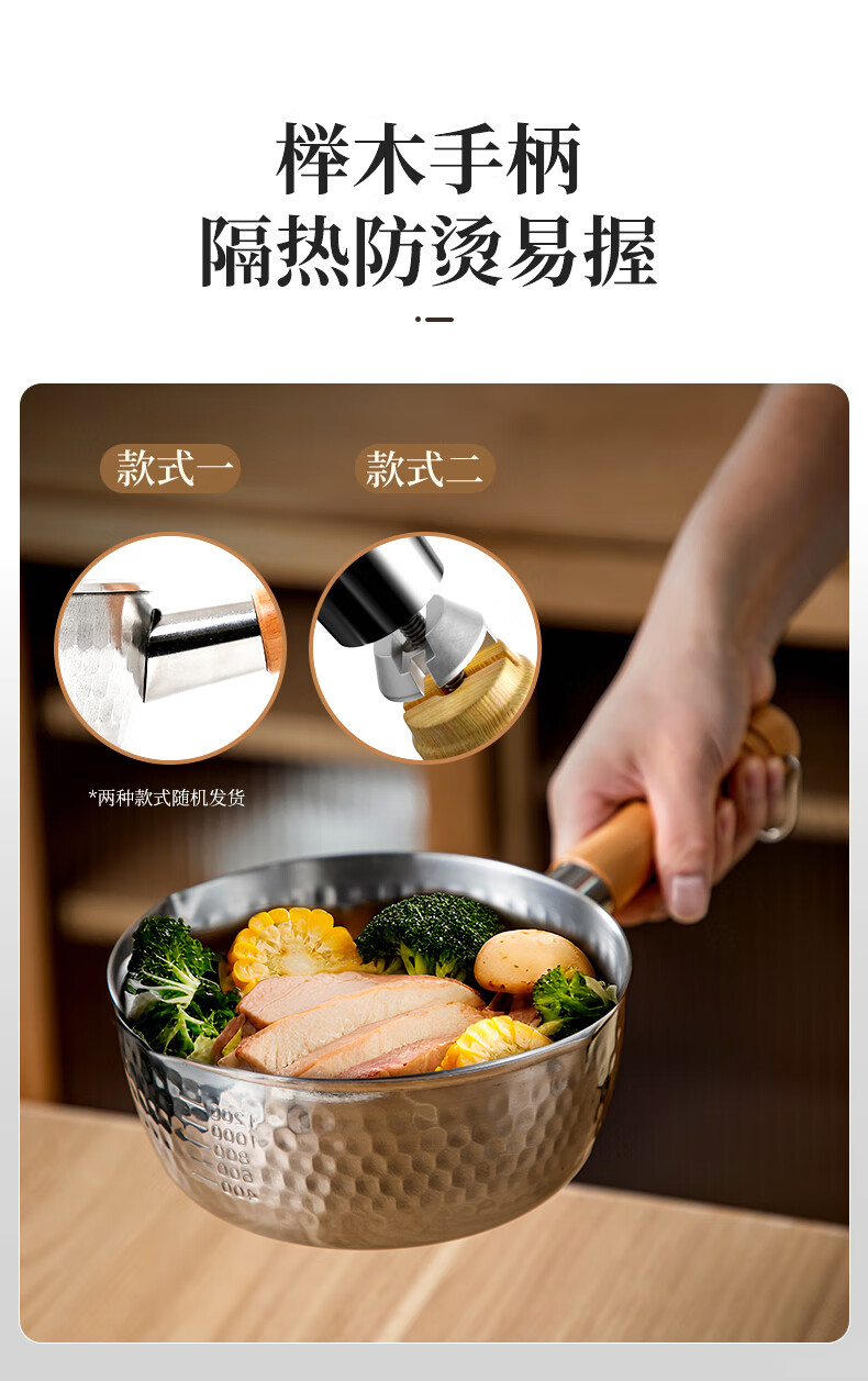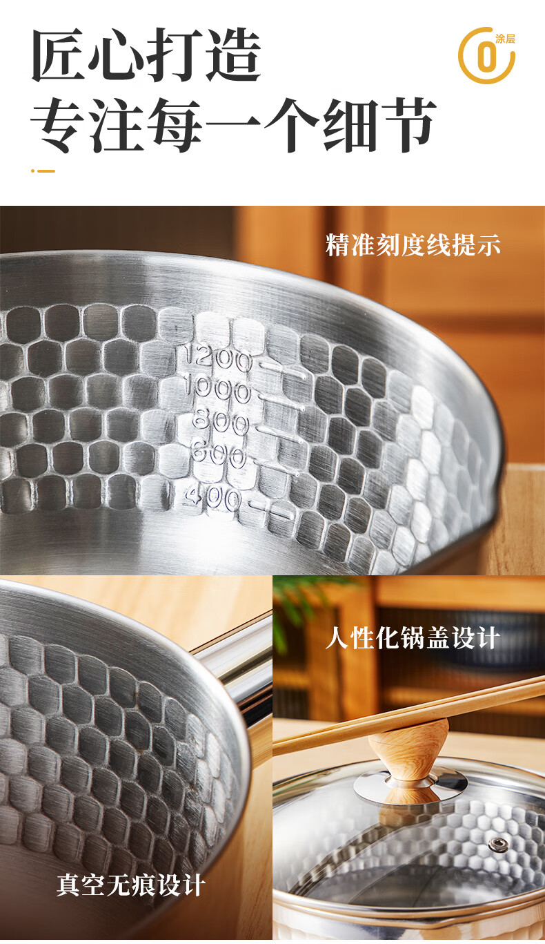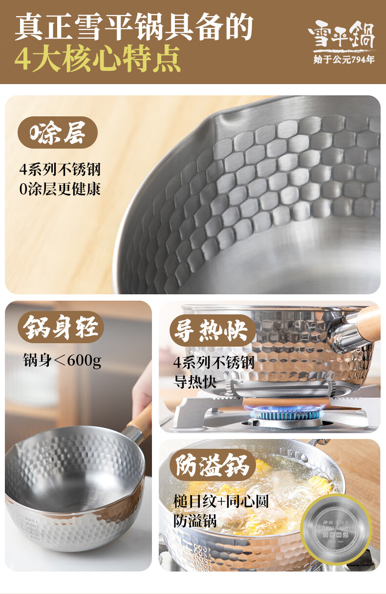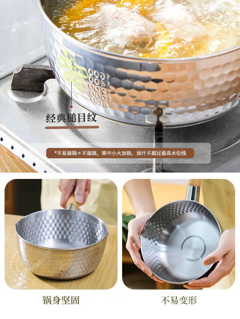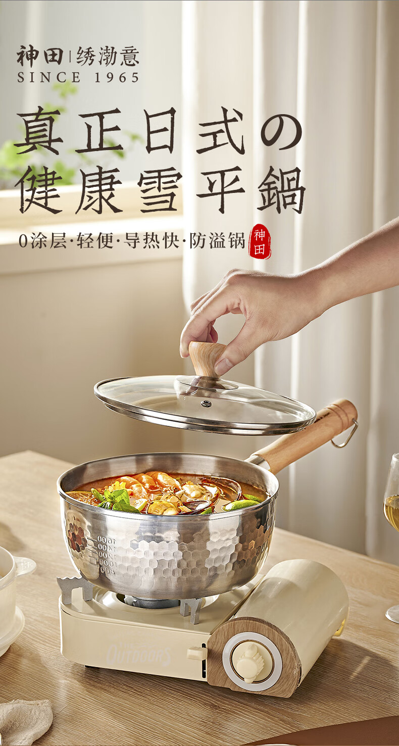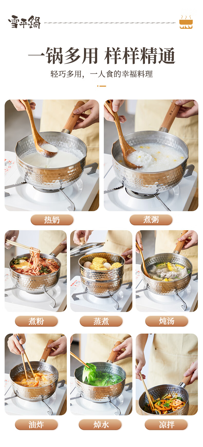 神田雪平锅进口日式不锈钢汤锅小奶锅泡面锅辅食锅无涂层 带盖20cm