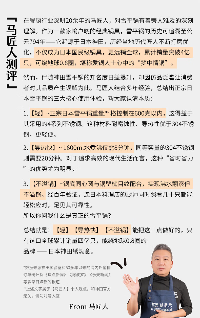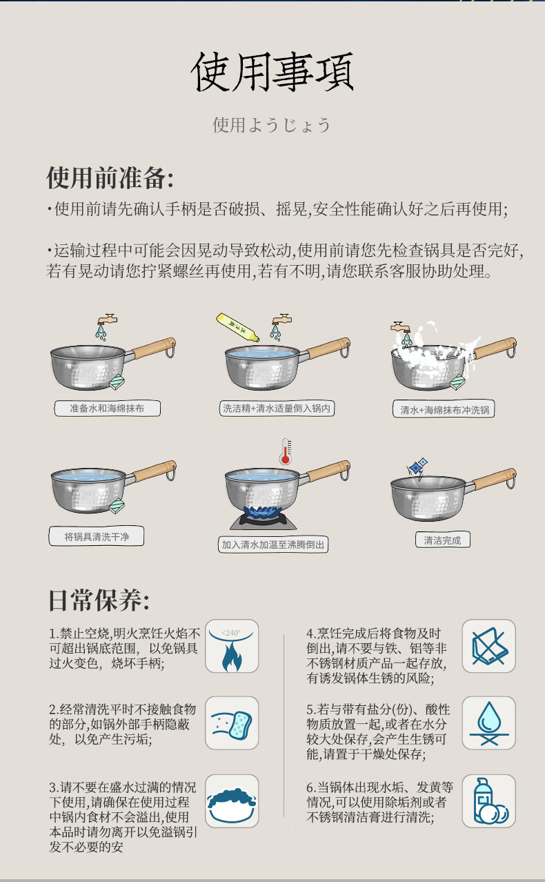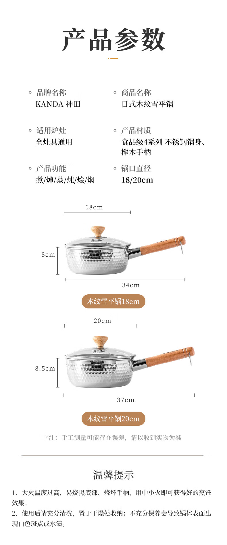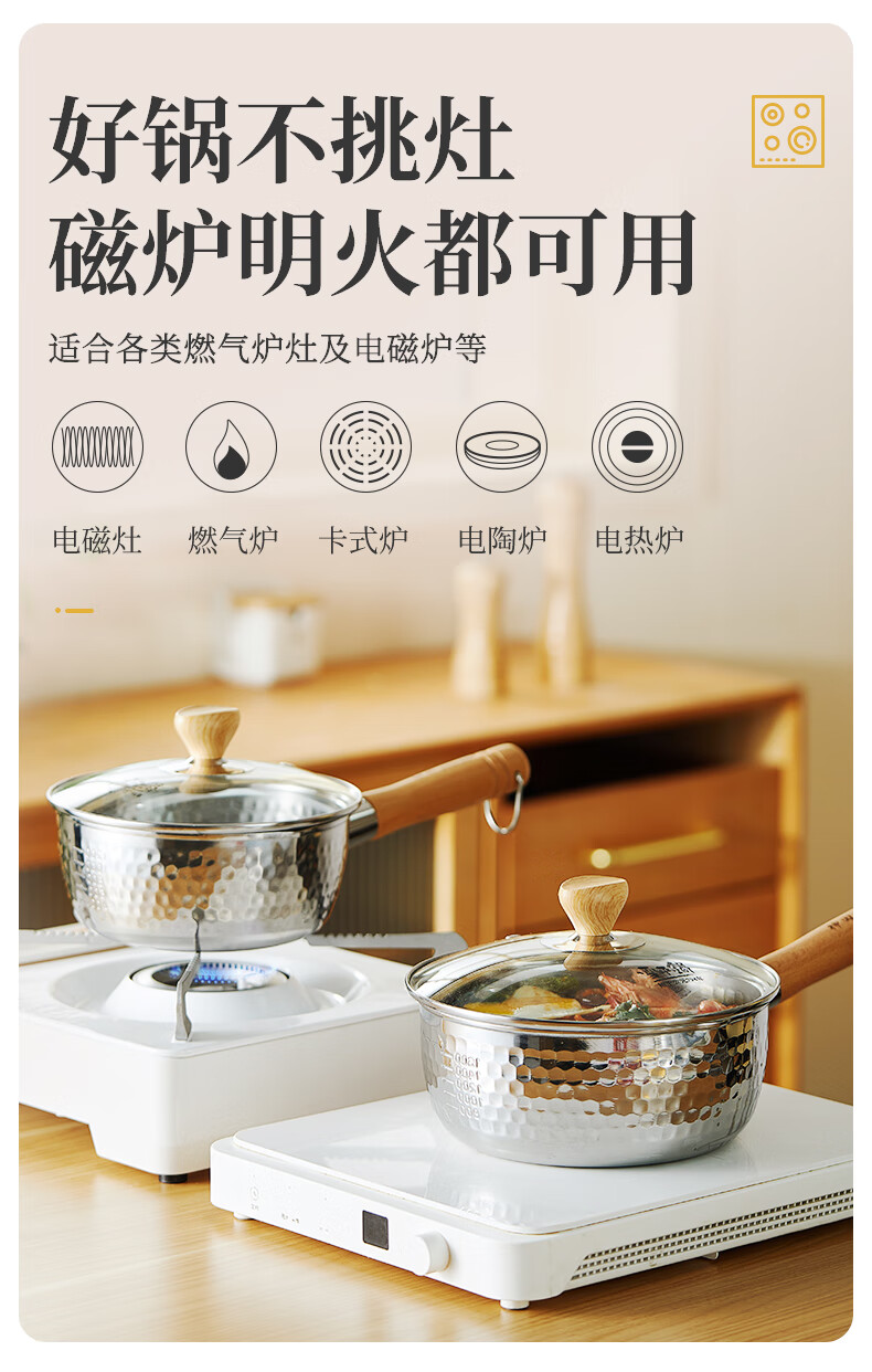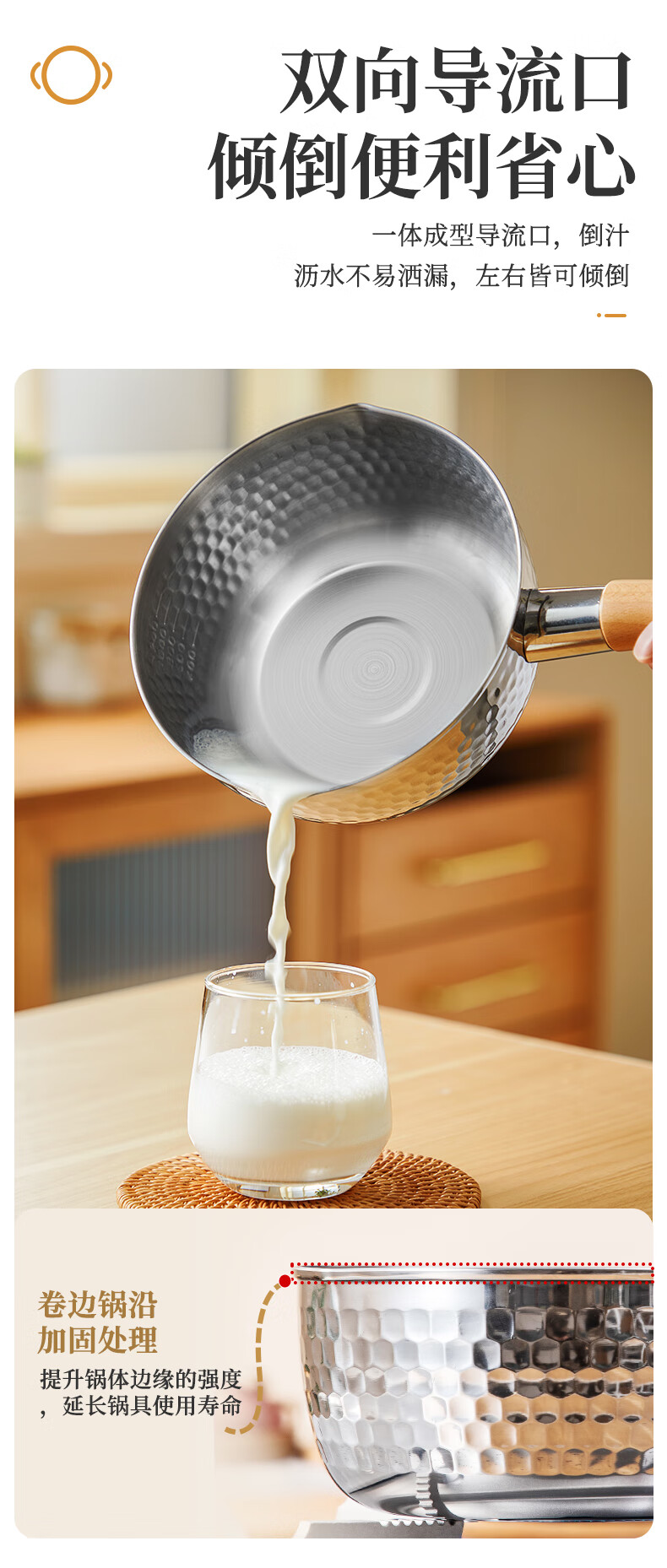 神田雪平锅进口日式不锈钢汤锅小奶锅泡面锅辅食锅无涂层 带盖20cm