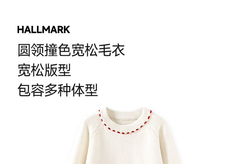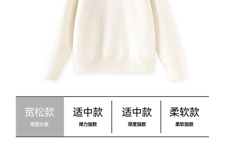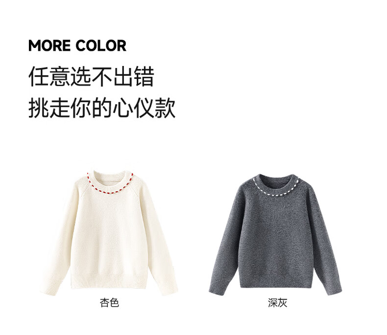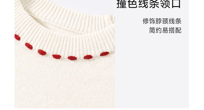 班尼路(Baleno)S&K系列毛衣女针织衫女装秋冬季圆领撞色设计宽松长袖保暖上衣服 杏#纯色 S