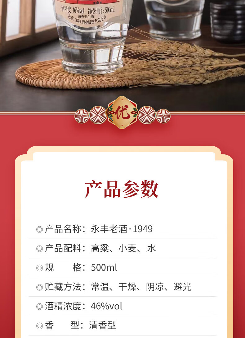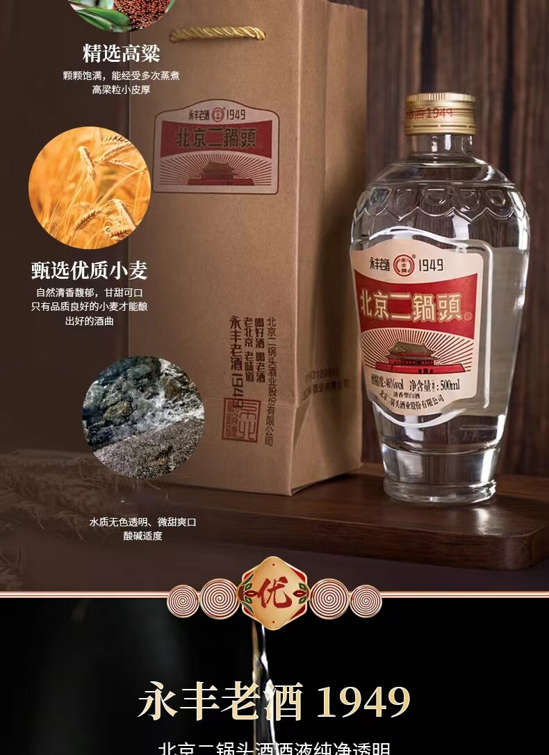 永丰老酒1949 北京二锅头46度白酒整箱 清香型 中秋节送礼 46%vol 500mL 6瓶