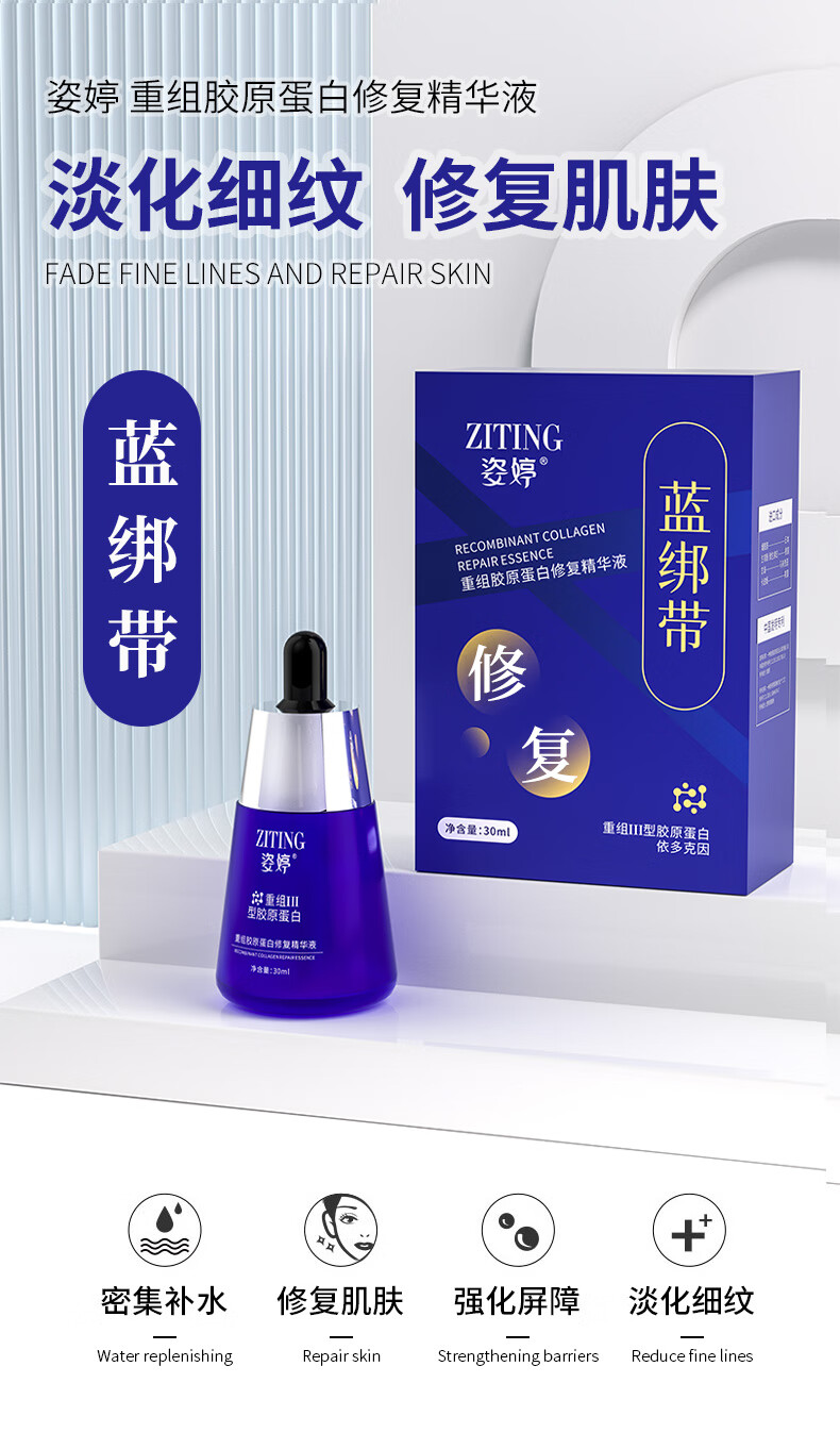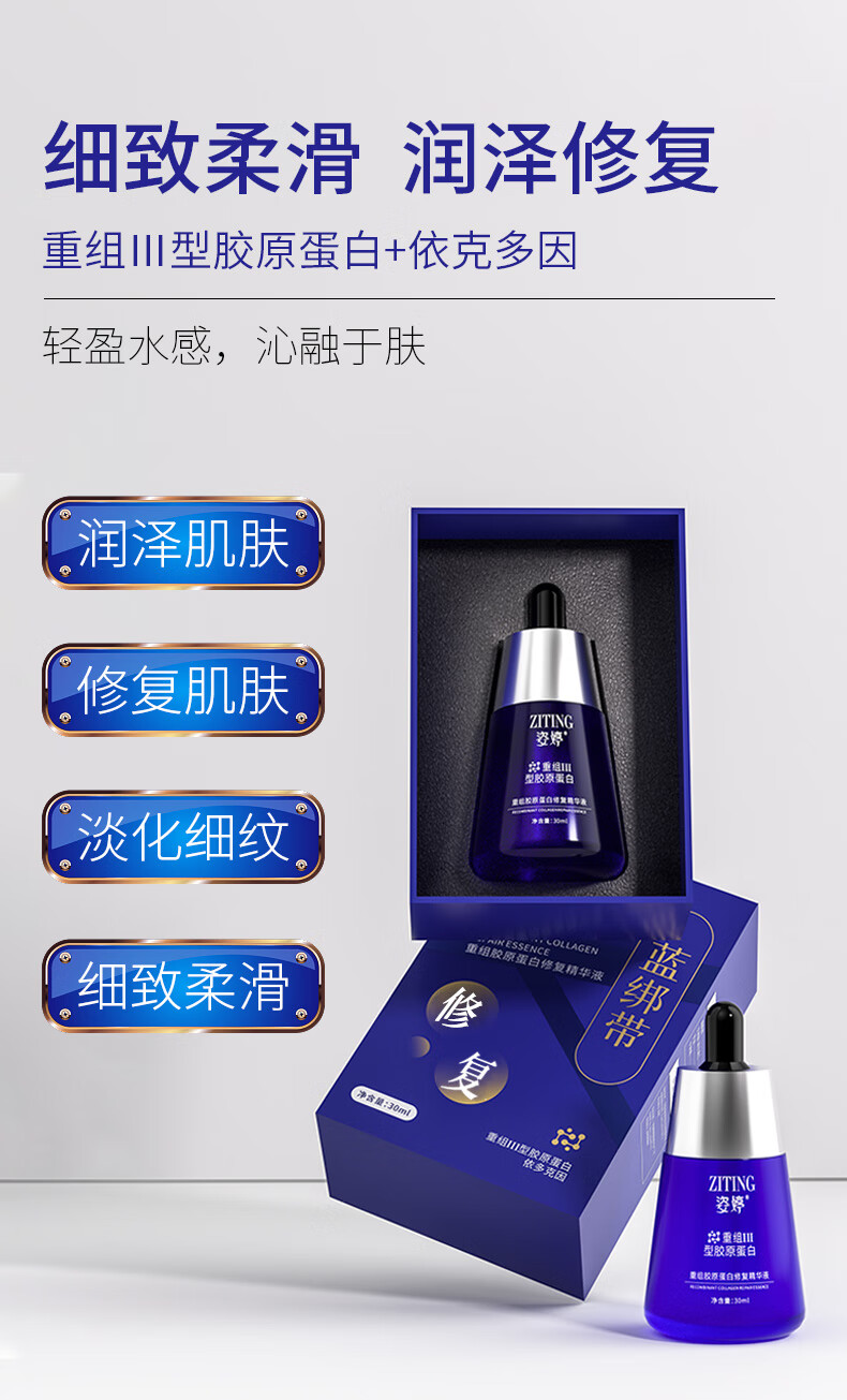 花月情姿婷重组Ⅲ型胶原蛋白修复精华液护复面部皮肤屏障紧致保湿精华 1瓶装