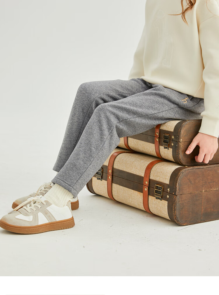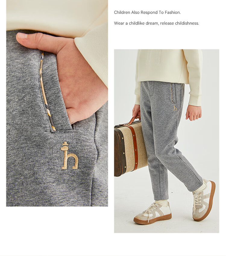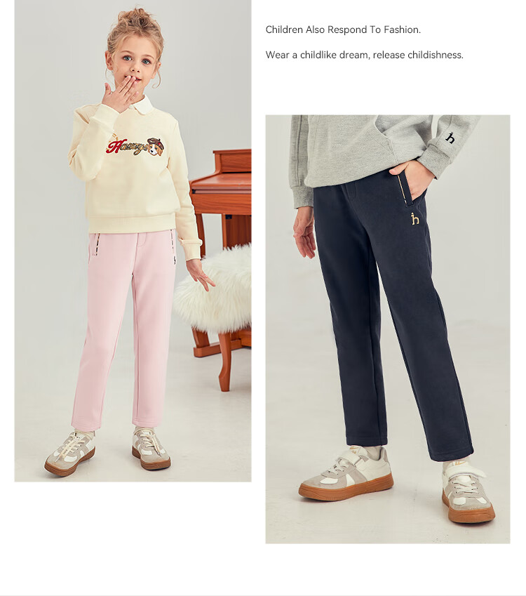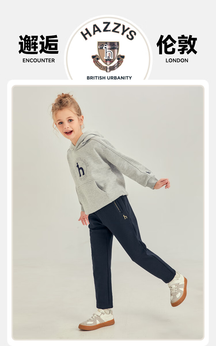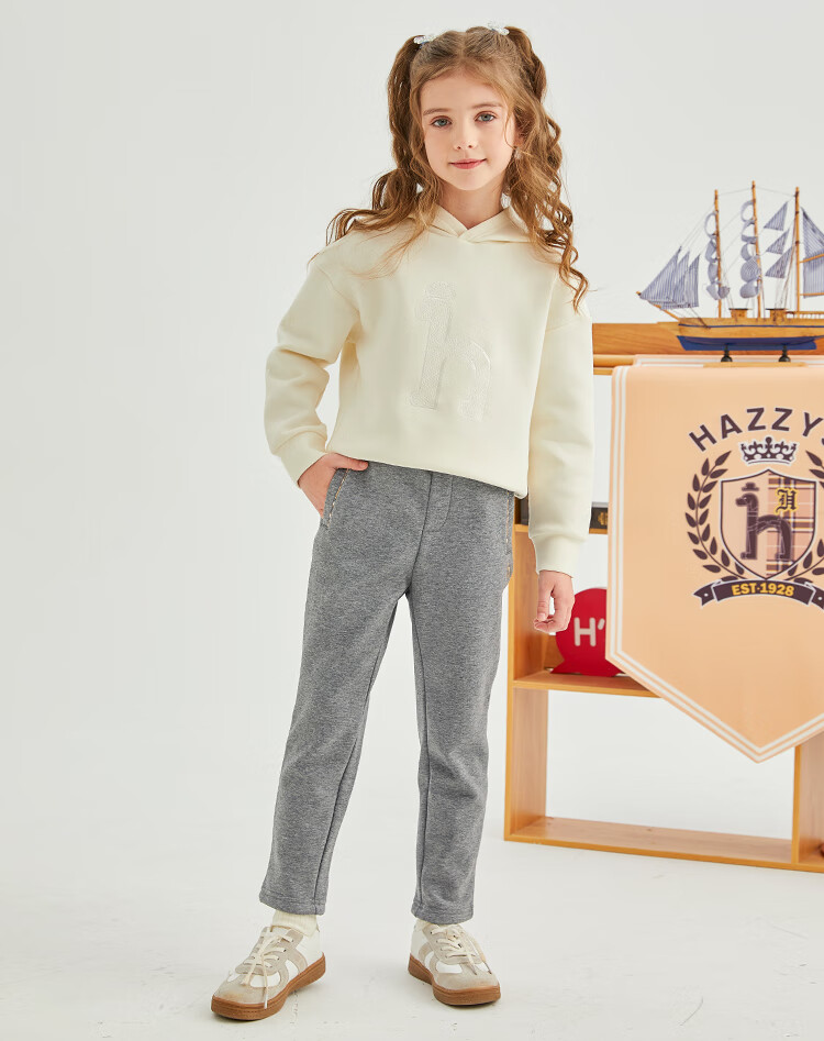 哈吉斯(HAZZYS)品牌童装女童长裤冬新品弹力舒适休闲百搭加厚一体绒长裤 暖卡其 130