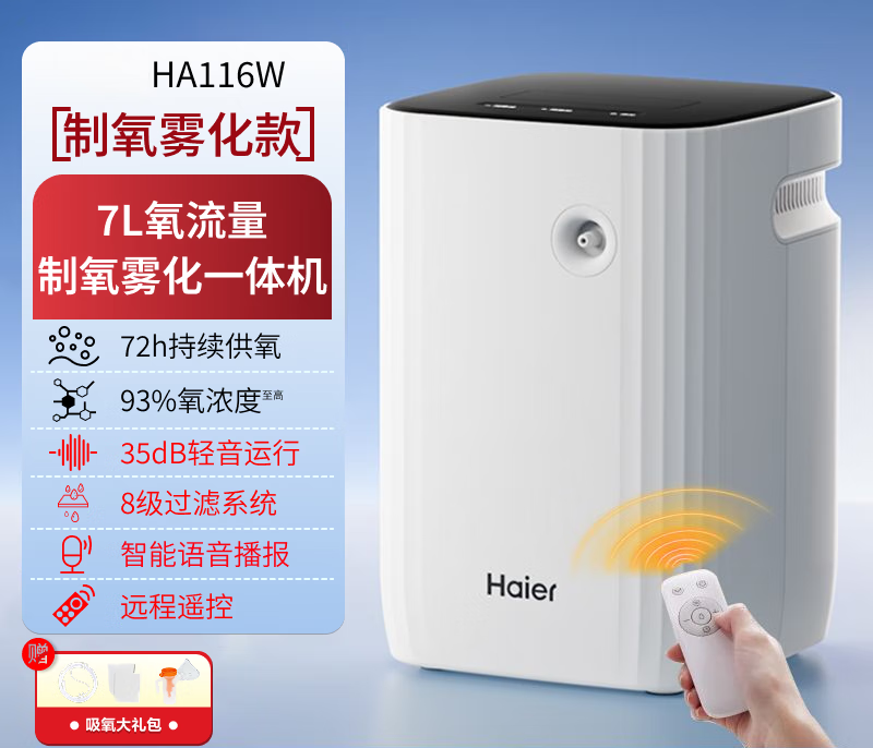 制氧机家用老人孕妇氧气机智能加湿雾化一体便携制氧 【制氧款】旗舰-HA116