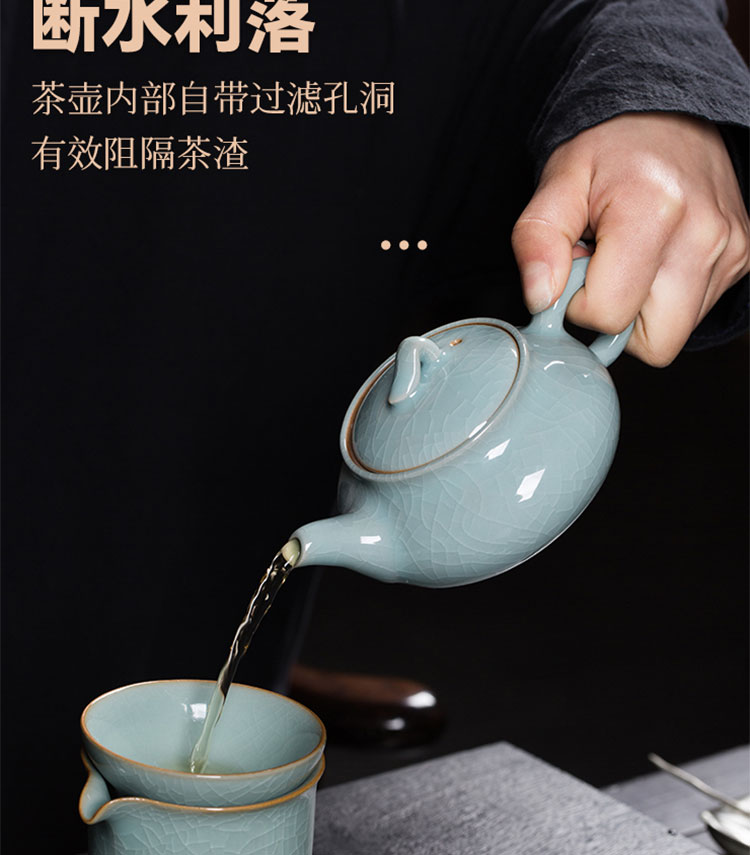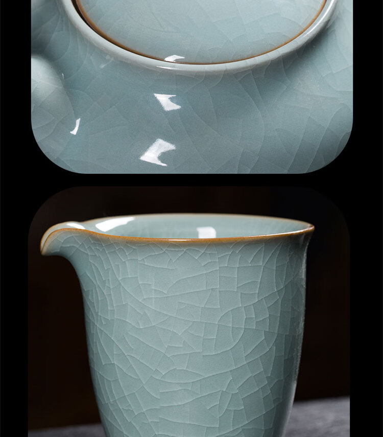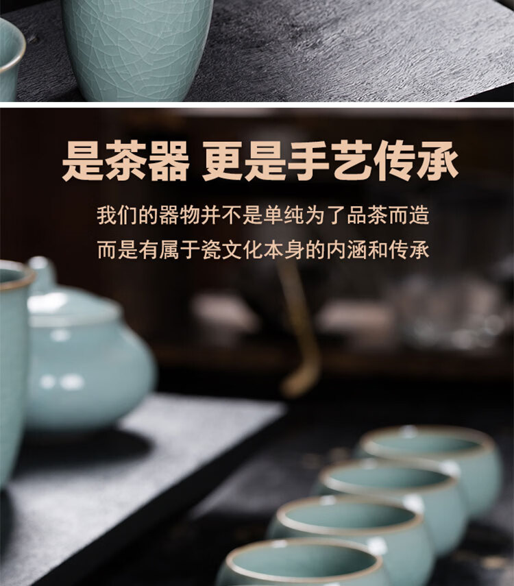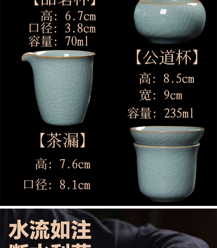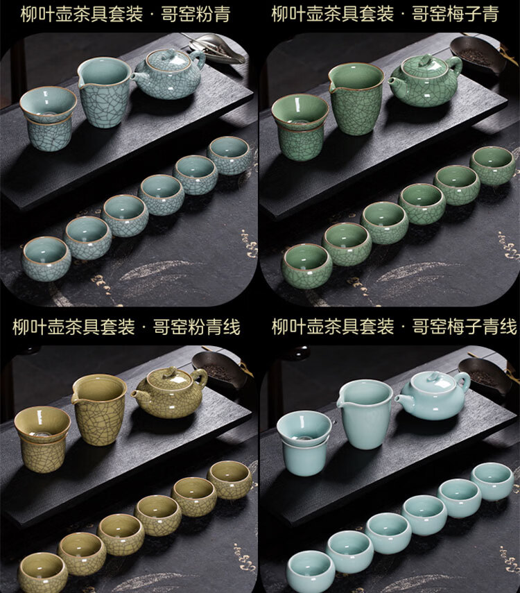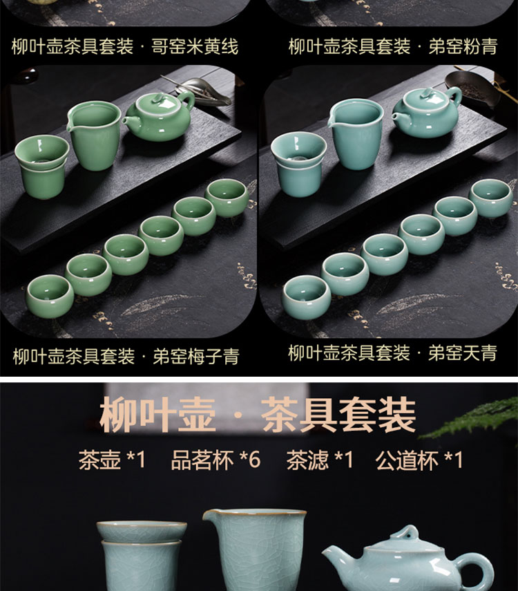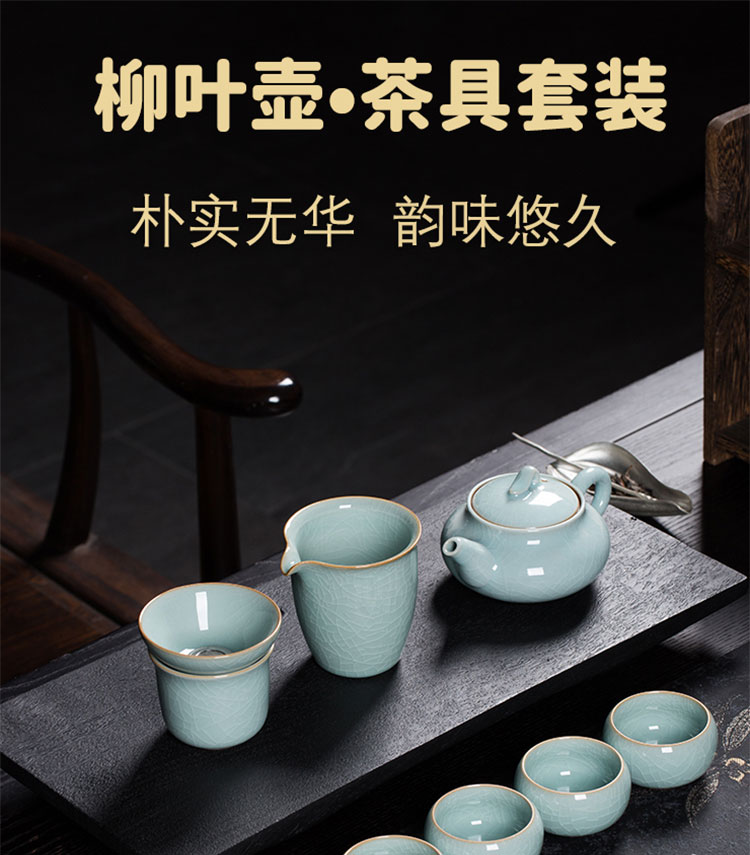 巧陶(QIAOTAO)青瓷高端龙泉年轻人茶具套装陶瓷家用功夫茶具办公室泡茶茶壶茶杯 柳叶壶哥窑米黄线10头茶具 6人饮