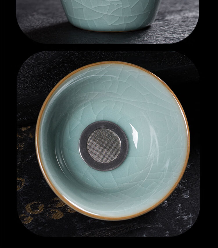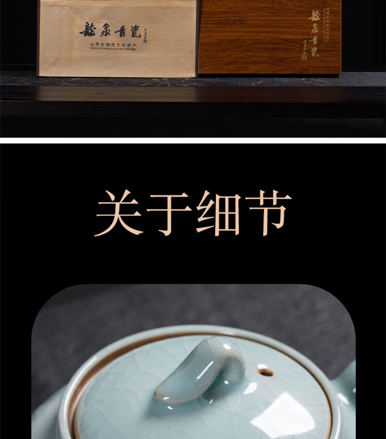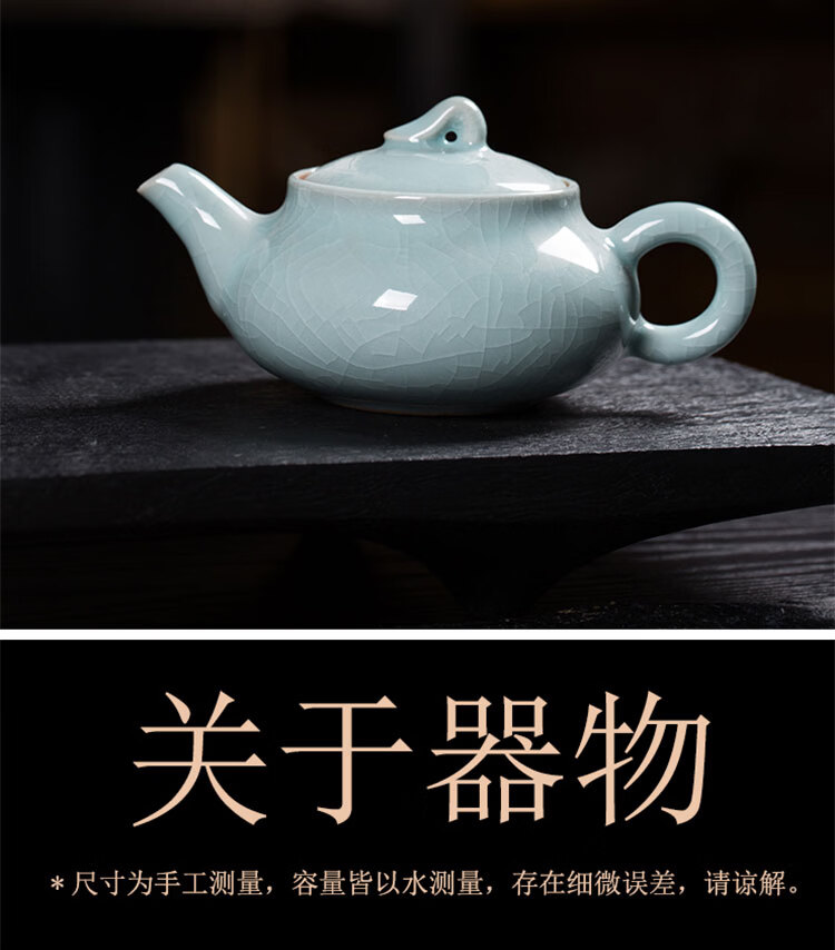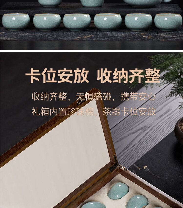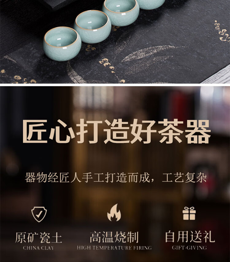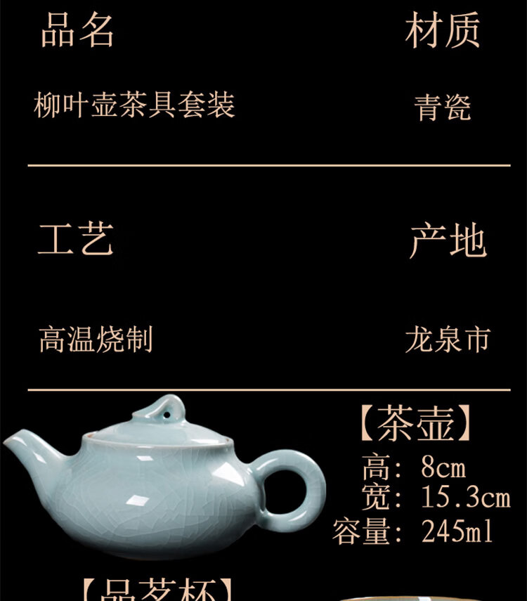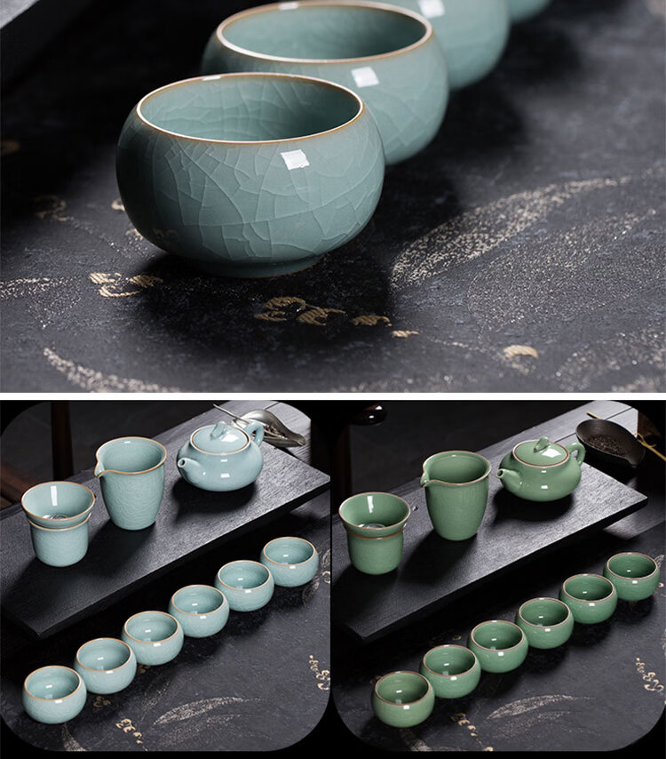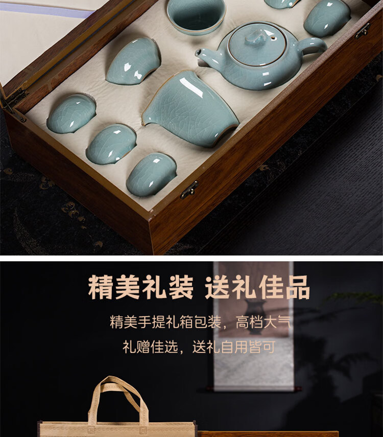 巧陶(QIAOTAO)青瓷高端龙泉年轻人茶具套装陶瓷家用功夫茶具办公室泡茶茶壶茶杯 柳叶壶哥窑米黄线10头茶具 6人饮