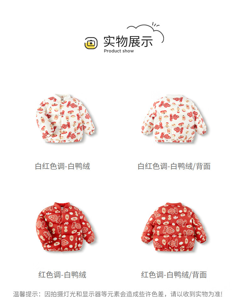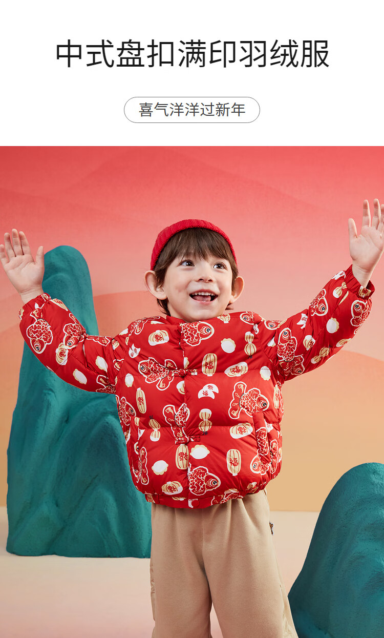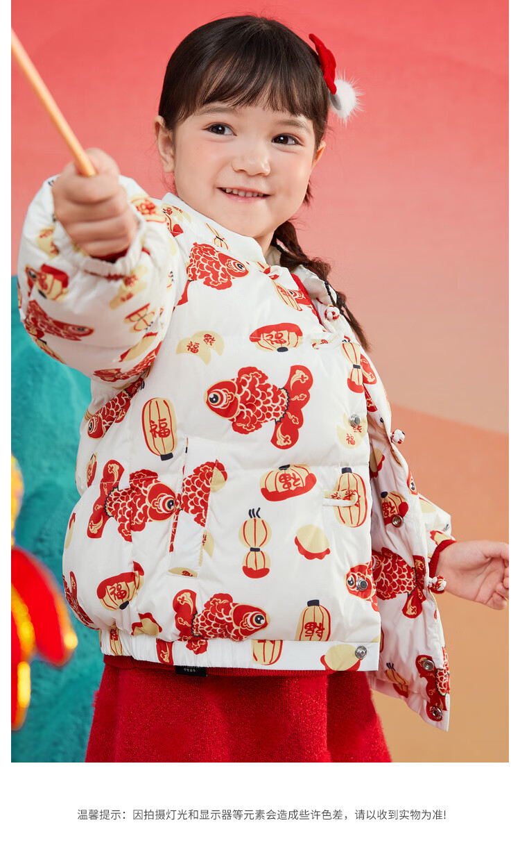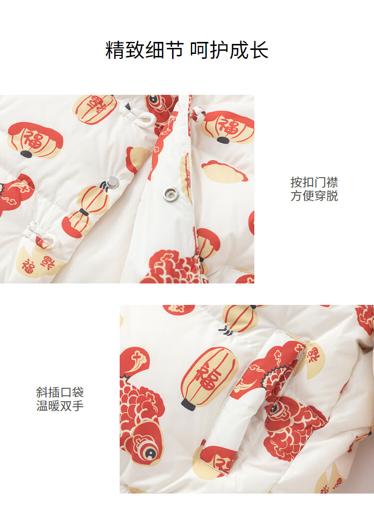 巴拉巴拉【官方正品】童装儿童羽绒服2024冬装新款男童女童外套新中式拜年 白红色调00316-白鸭绒 90 cm