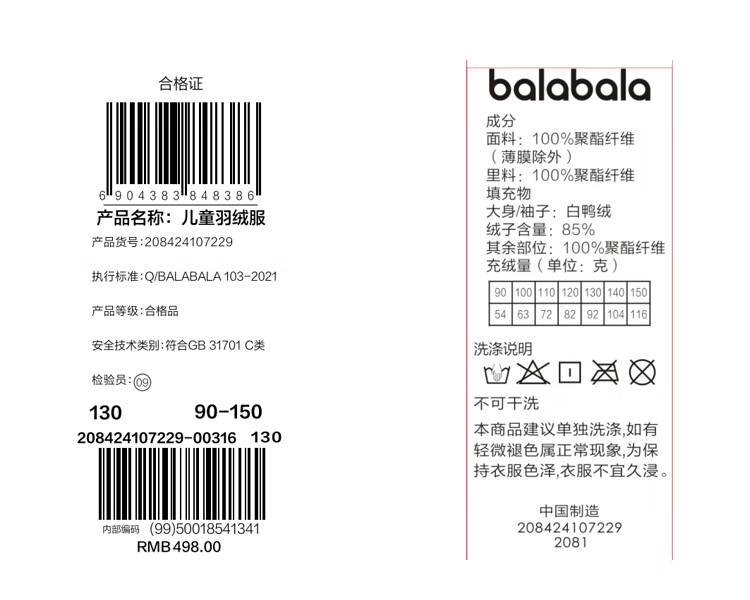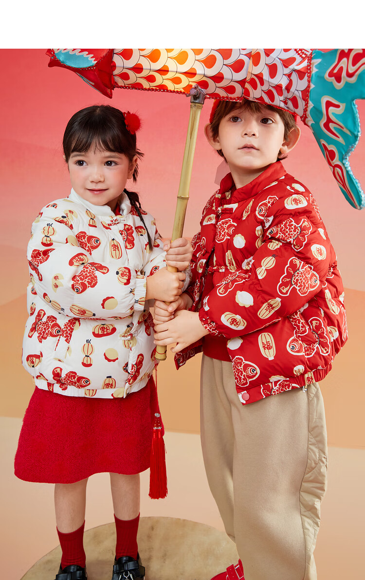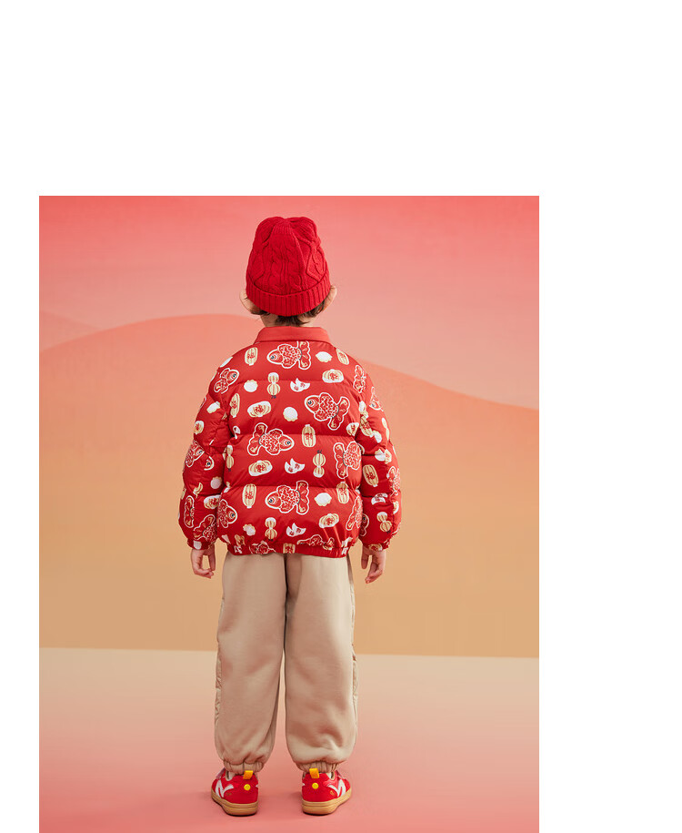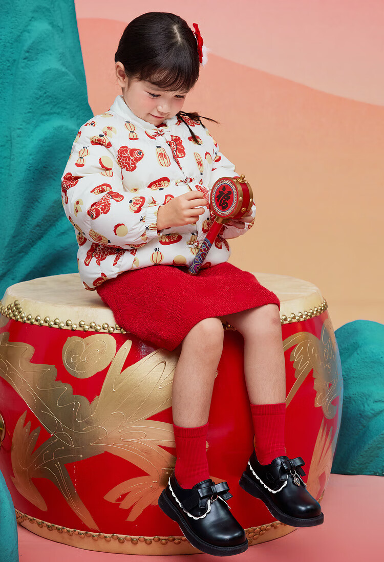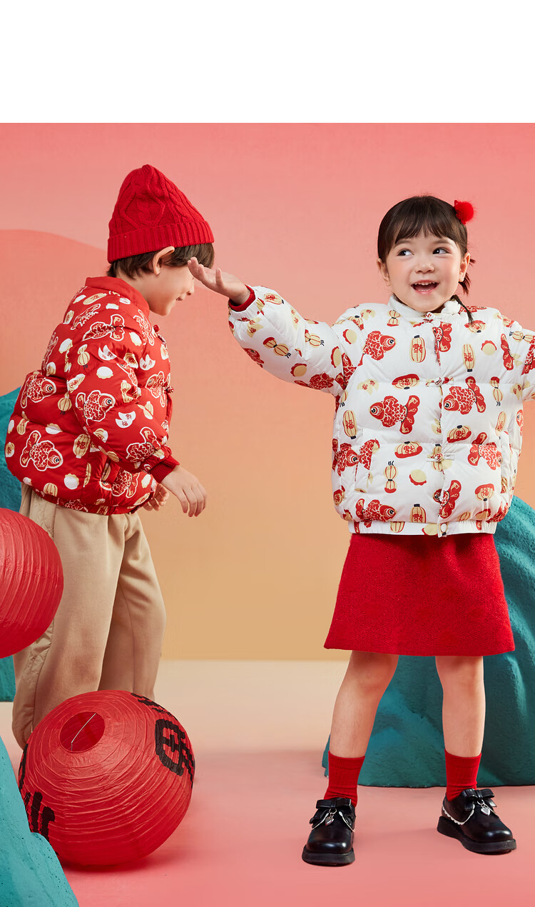 巴拉巴拉【官方正品】童装儿童羽绒服2024冬装新款男童女童外套新中式拜年 白红色调00316-白鸭绒 90 cm