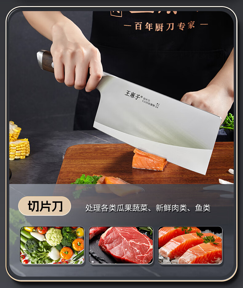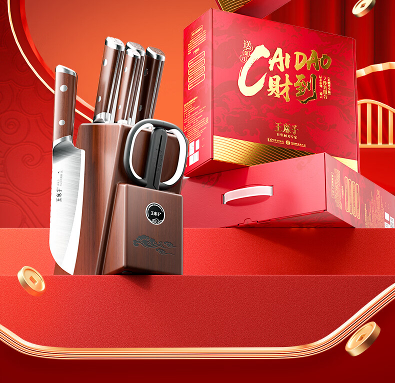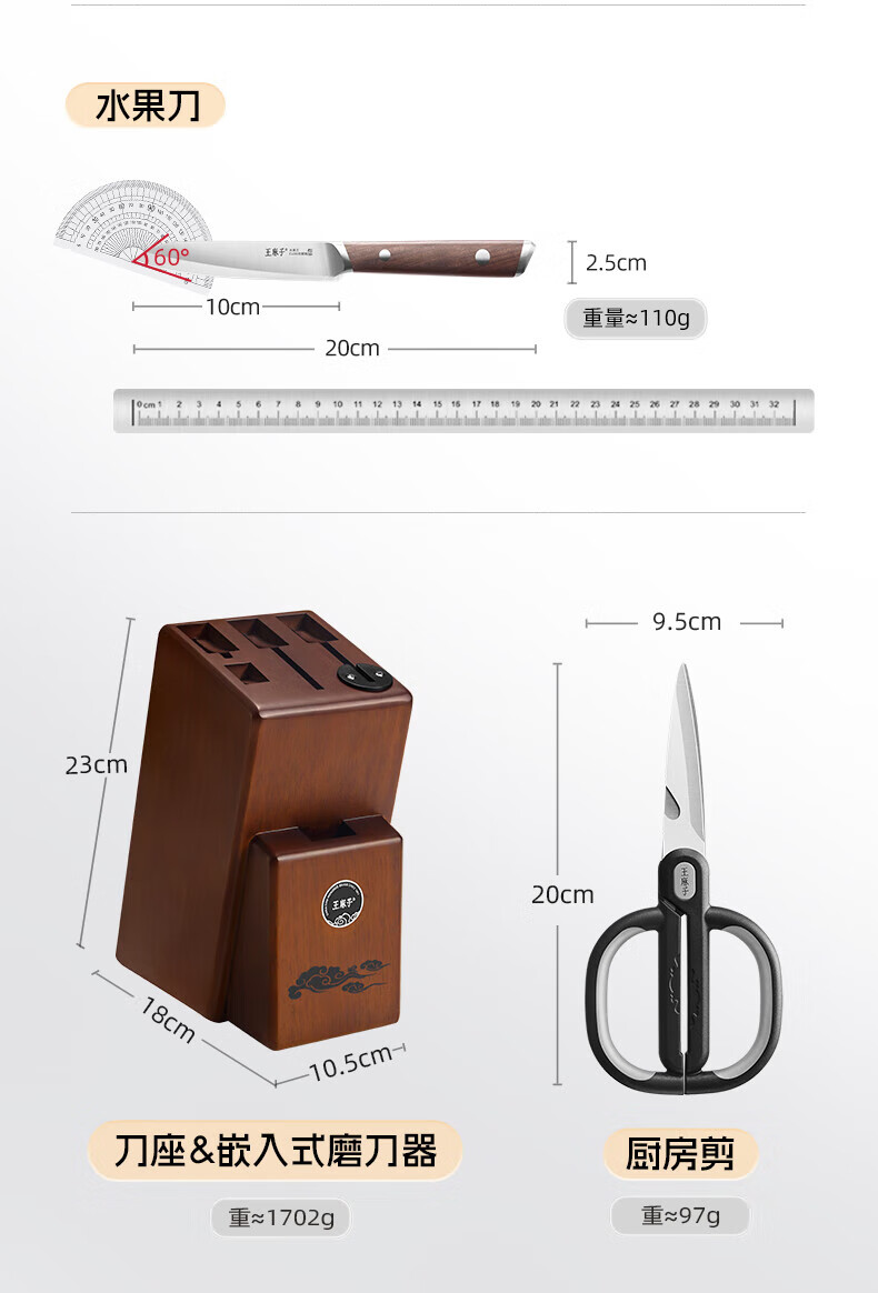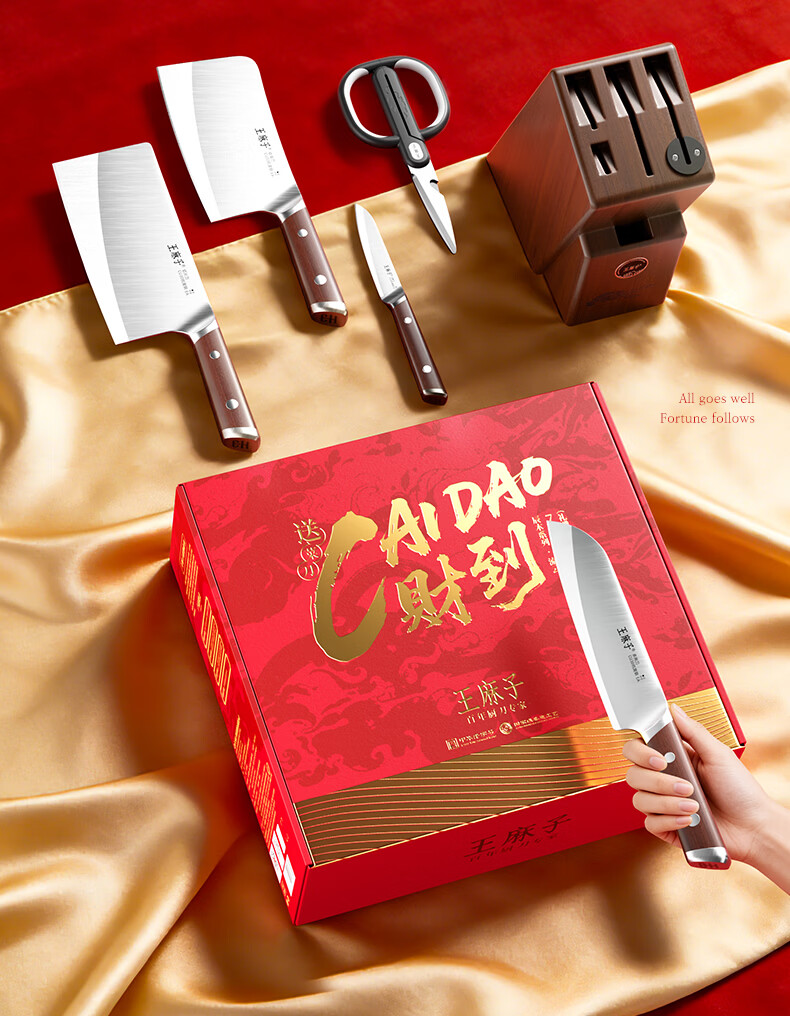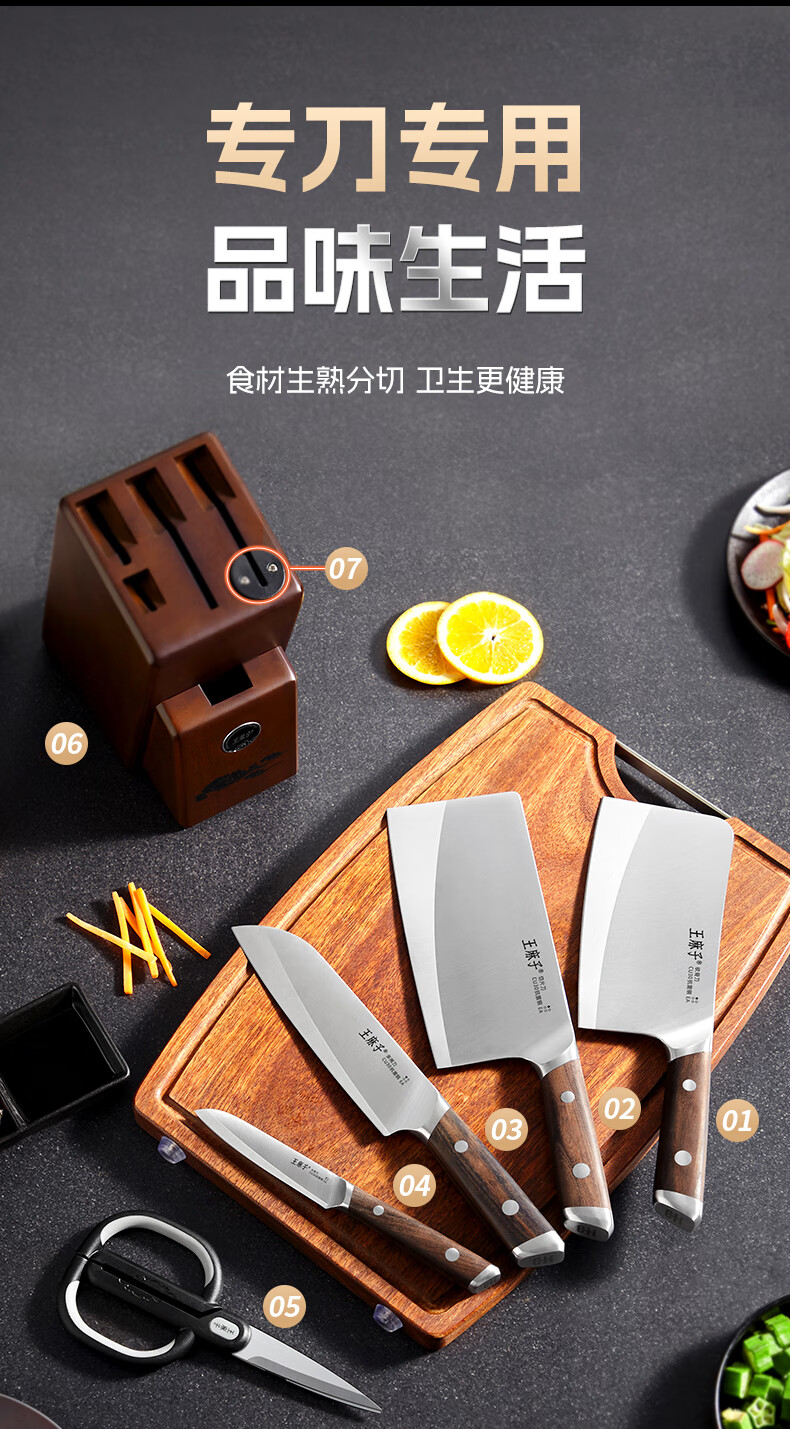 王麻子刀具全套 胖东来同款流云菜刀家用菜板厨房刀具套装水果刀切菜刀 【5铬钢】新年尊享版+菜板 8件套